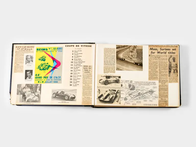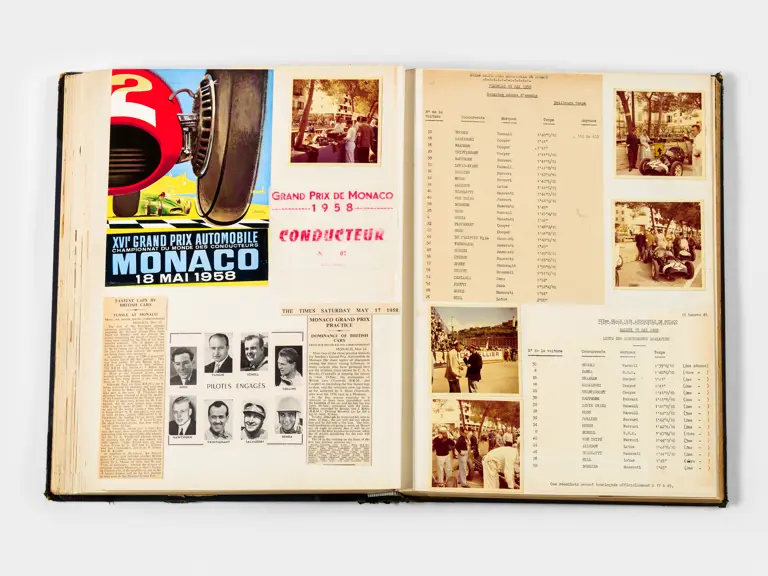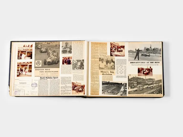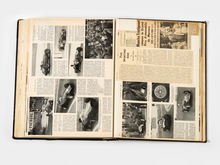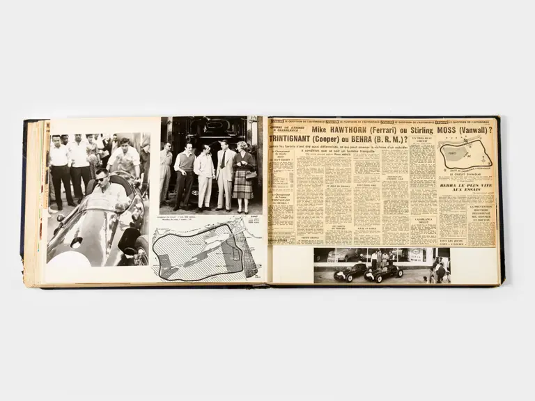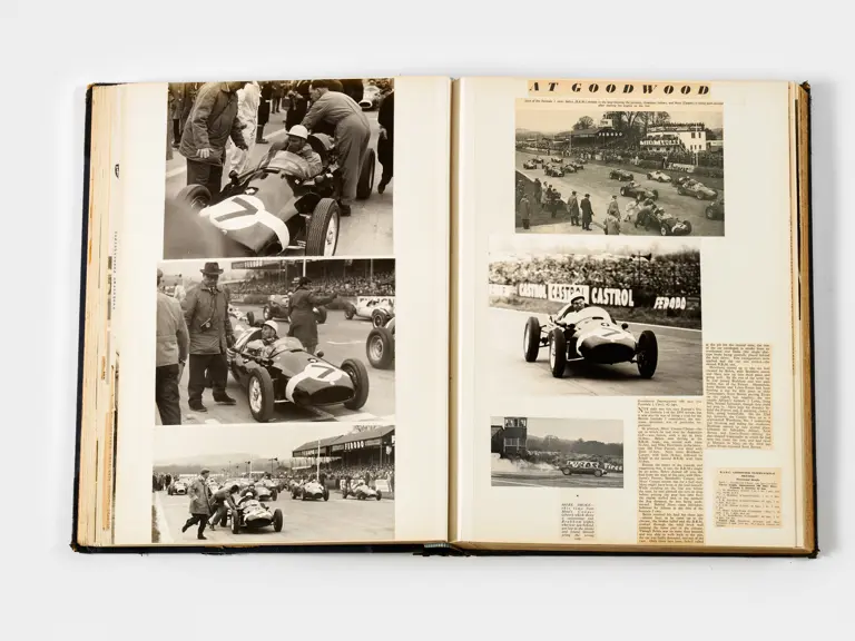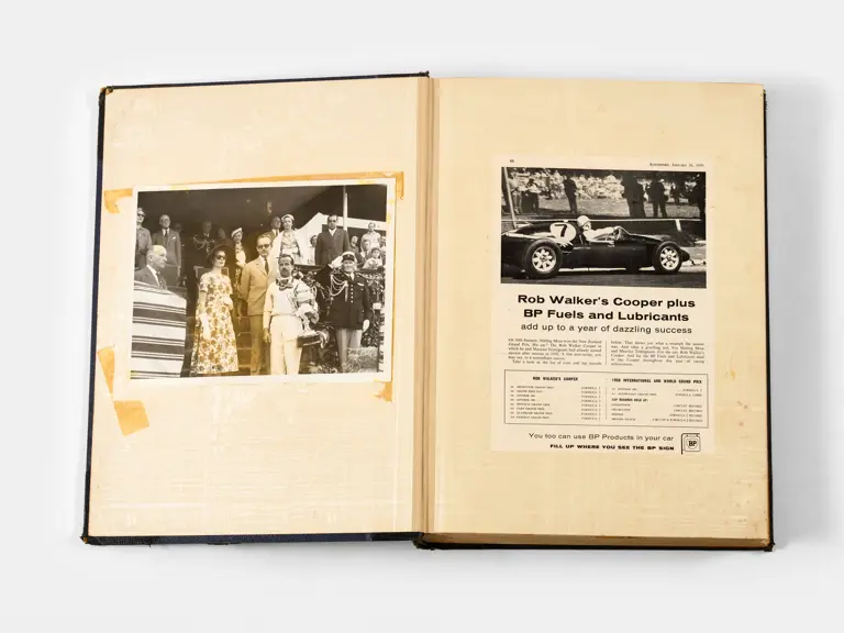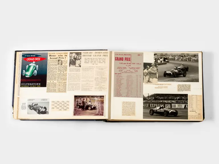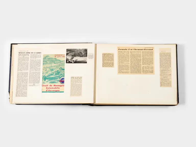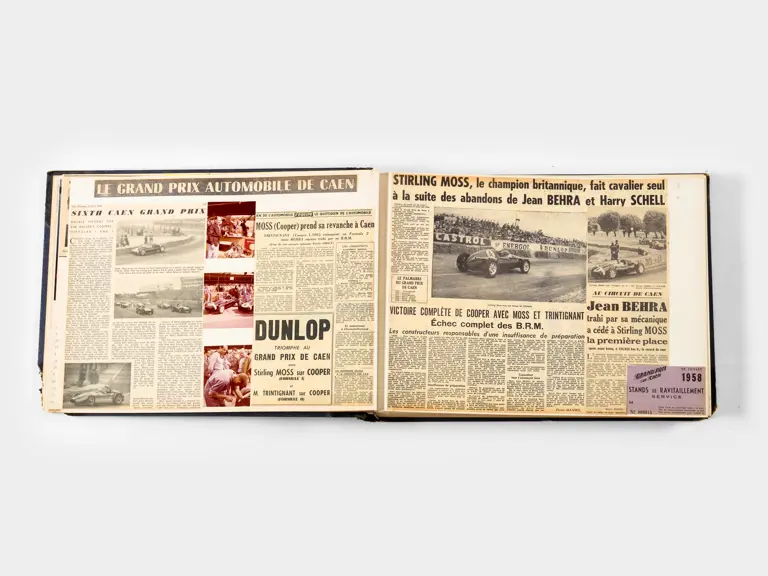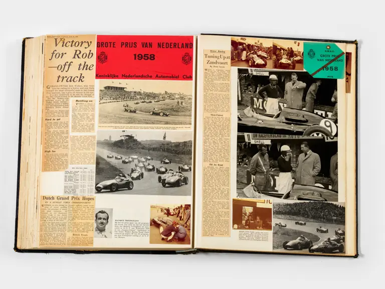 Rob Walker compiled hundreds of photographs, newspaper clippings, race programmes, ticket stubs and various other items during each racing season. Over the winter break, Rob and his wife Betty would spend hours making these beautiful scrapbooks to commemorate the races and events of the year. A simply wonderful compilation of period collectables and information.