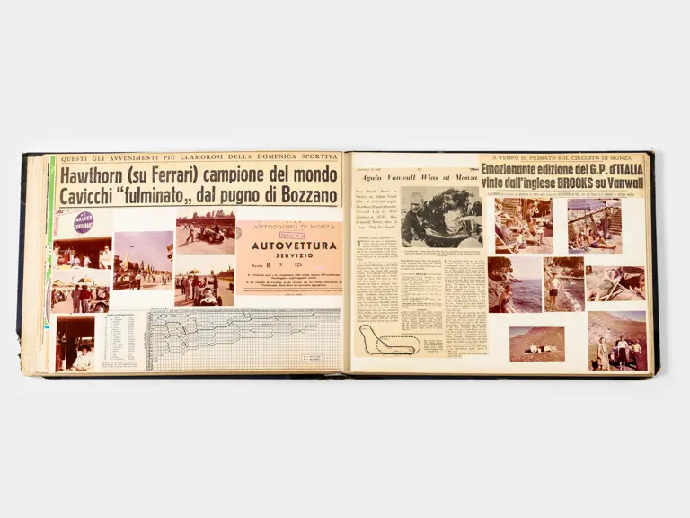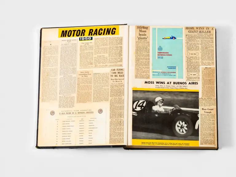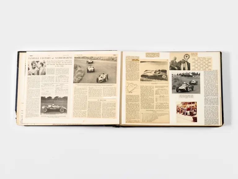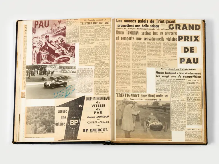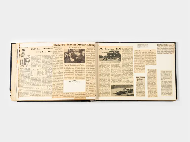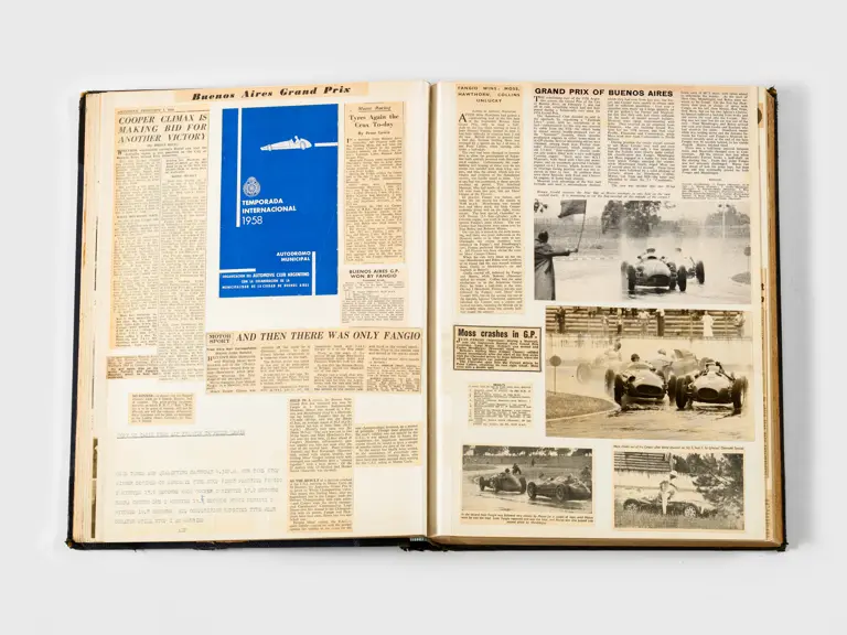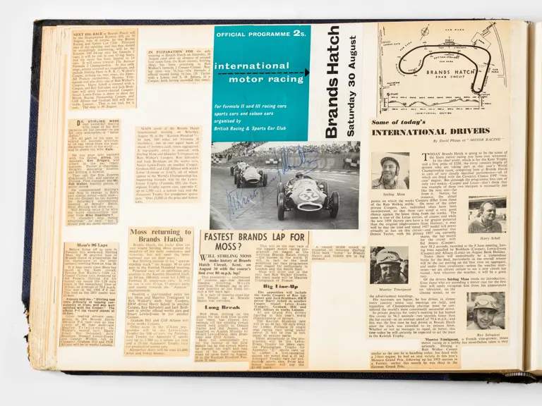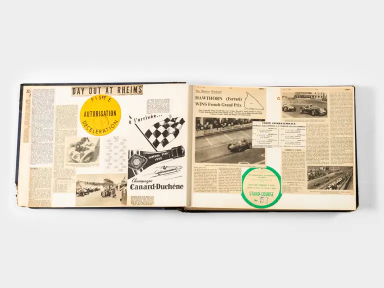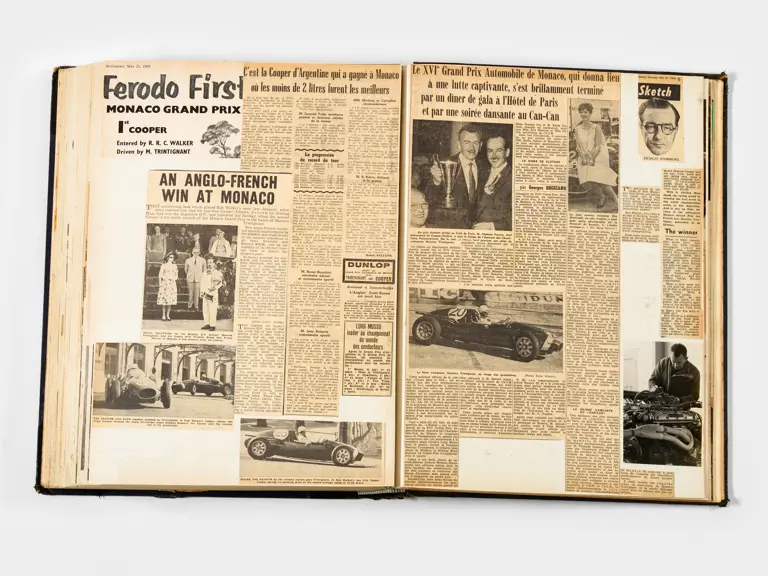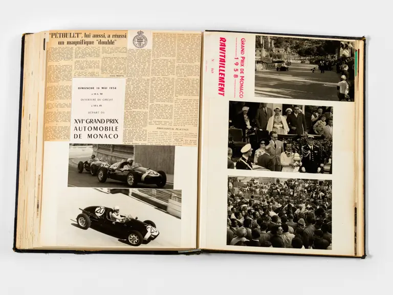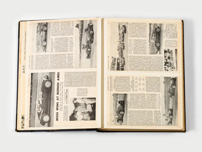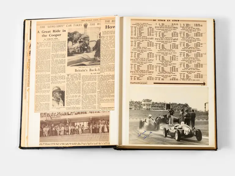 Rob Walker compiled hundreds of photographs, newspaper clippings, race programmes, ticket stubs and various other items during each racing season. Over the winter break, Rob and his wife Betty would spend hours making these beautiful scrapbooks to commemorate the races and events of the year. A simply wonderful compilation of period collectables and information.