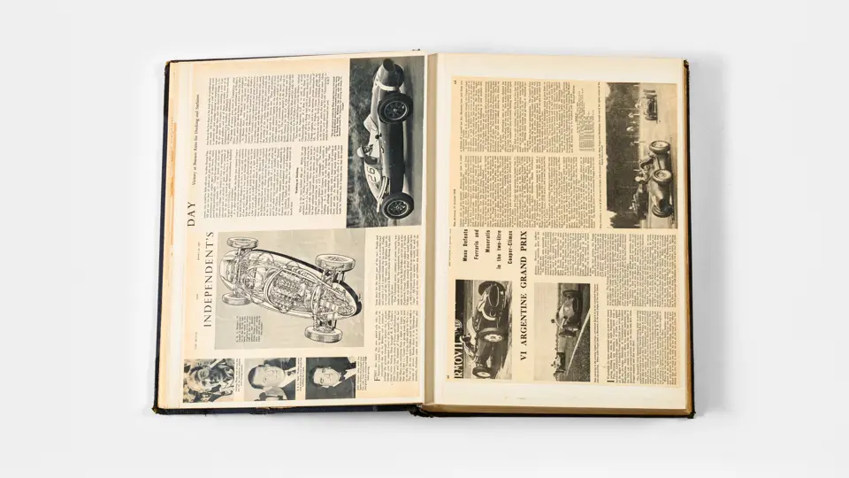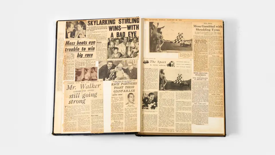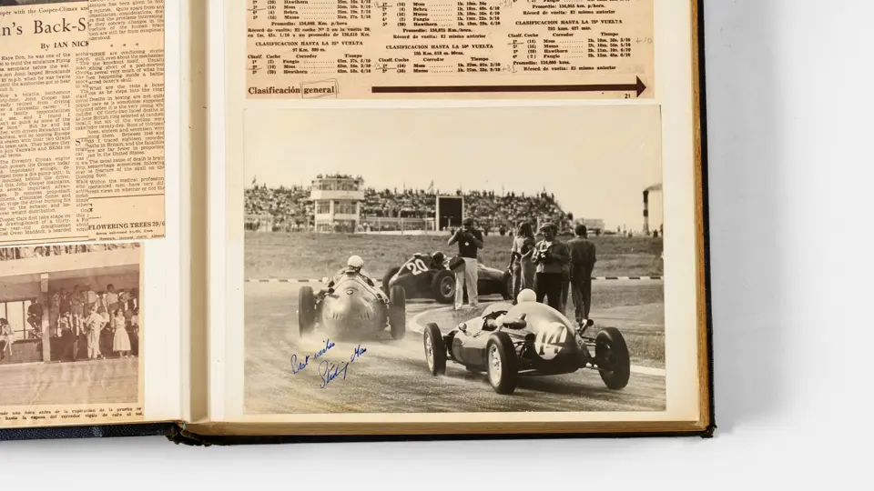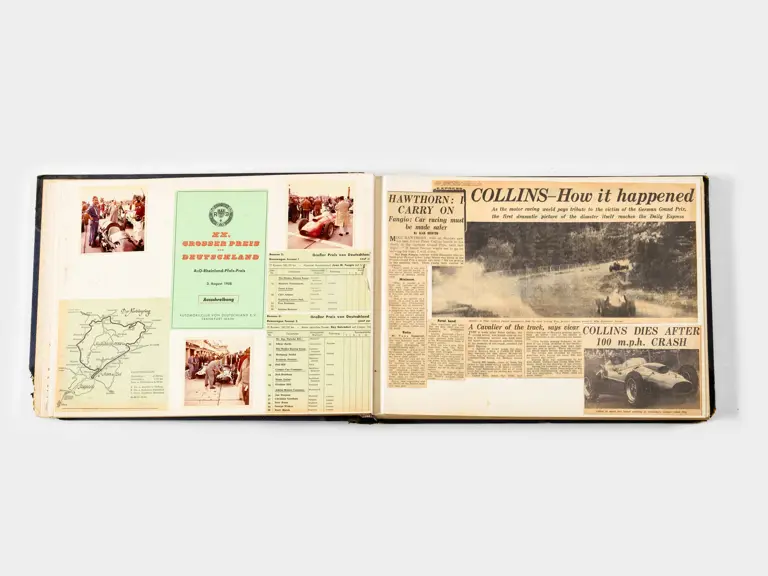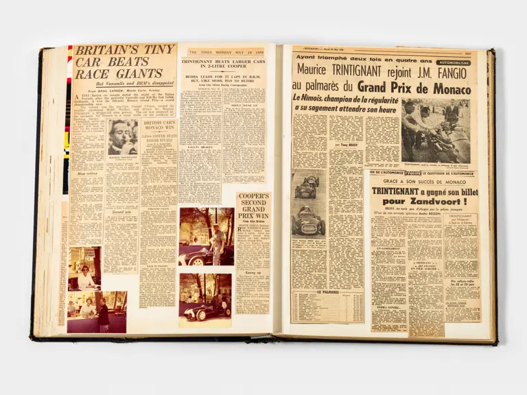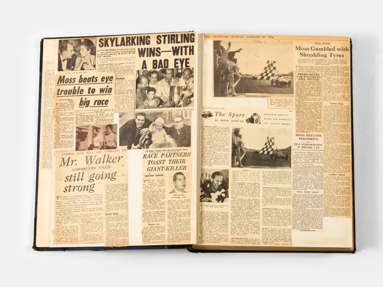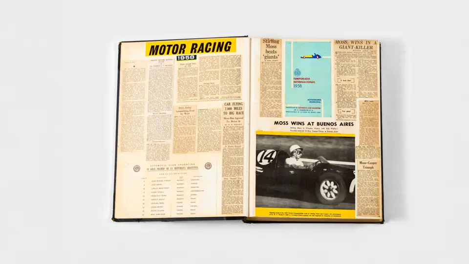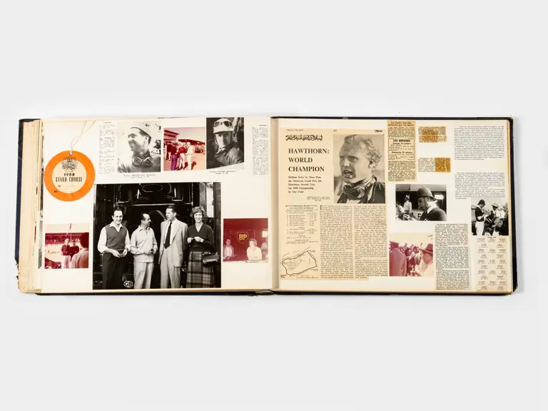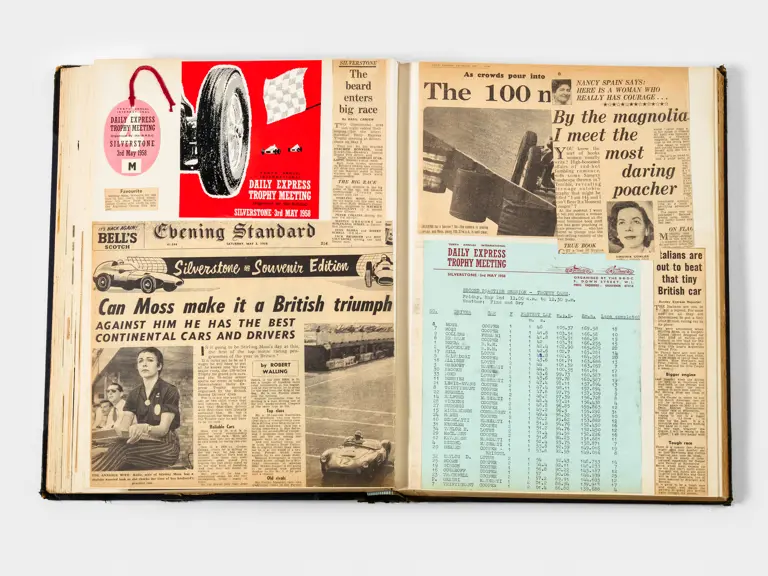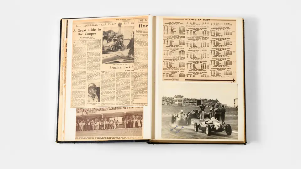 Rob Walker compiled hundreds of photographs, newspaper clippings, race programmes, ticket stubs and various other items during each racing season. Over the winter break, Rob and his wife Betty would spend hours making these beautiful scrapbooks to commemorate the races and events of the year. A simply wonderful compilation of period collectables and information.