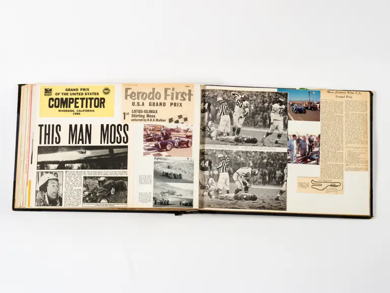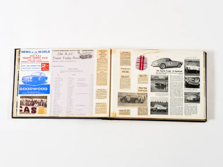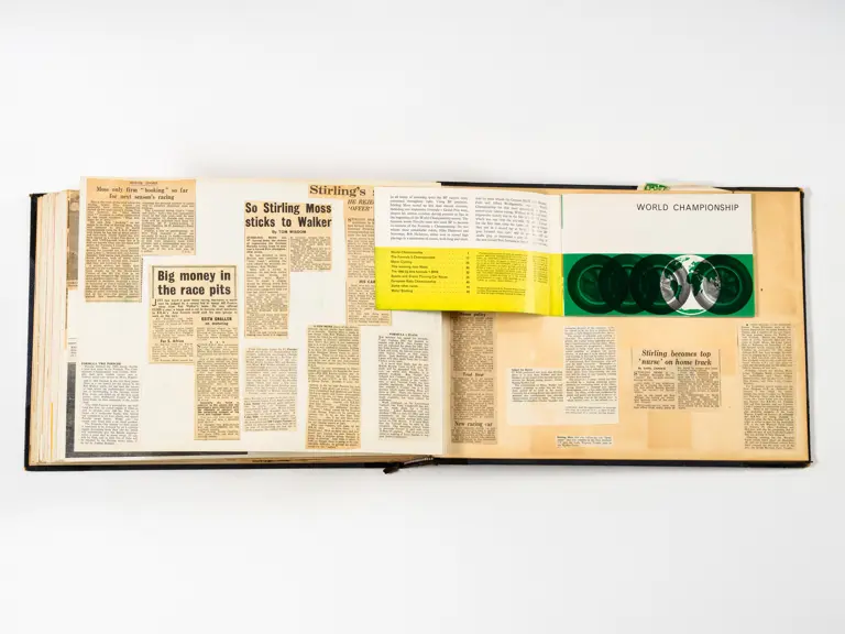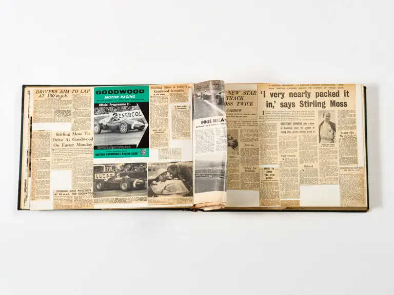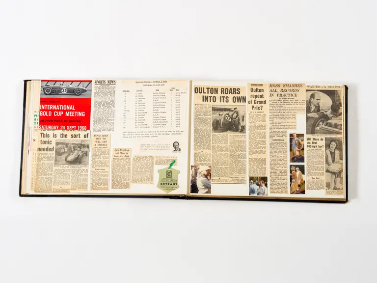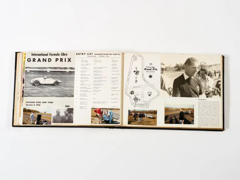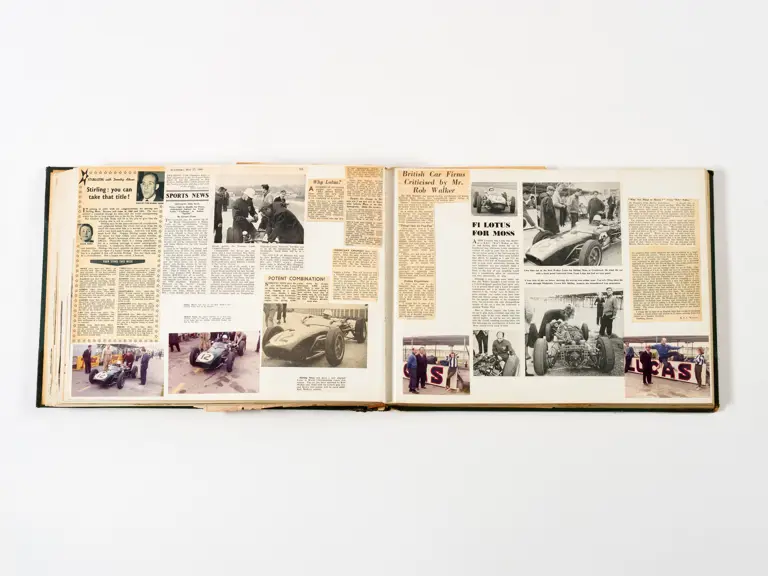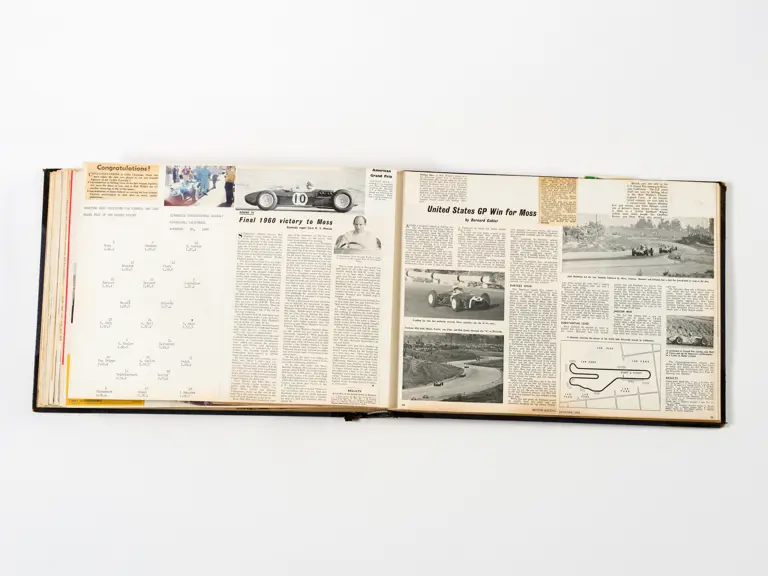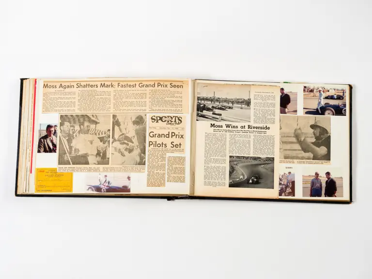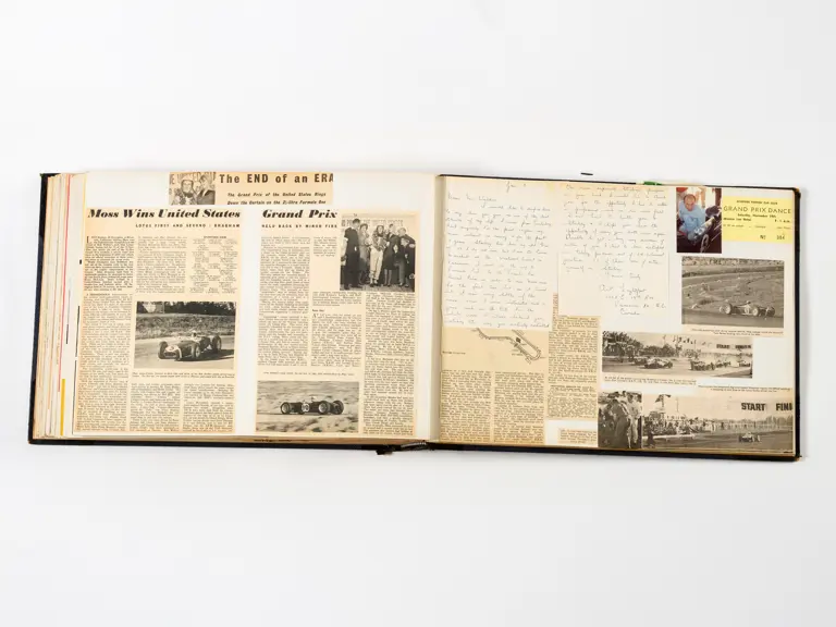 Rob Walker compiled hundreds of photographs, newspaper clippings, race programmes, ticket stubs and various other items during each racing season. Over the winter break, Rob and his wife Betty would spend hours making these beautiful scrapbooks to commemorate the races and events of the year. A simply wonderful compilation of period collectables and information.