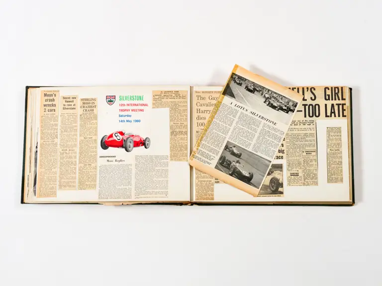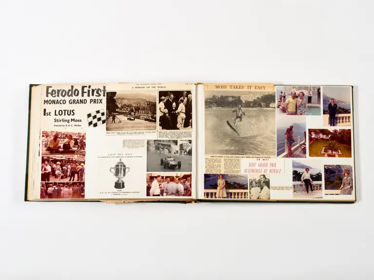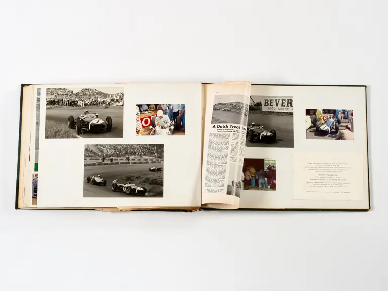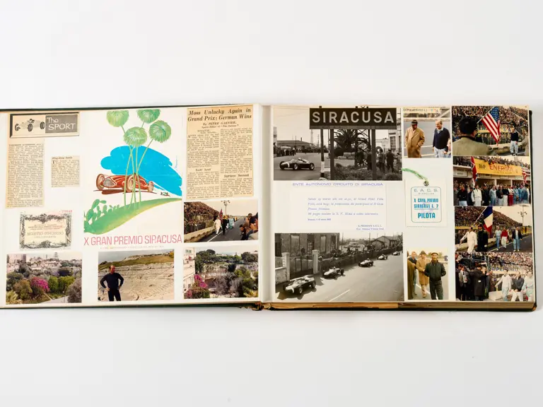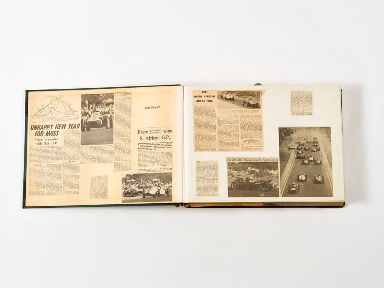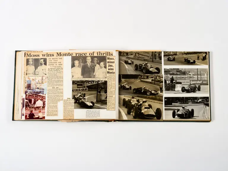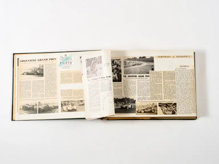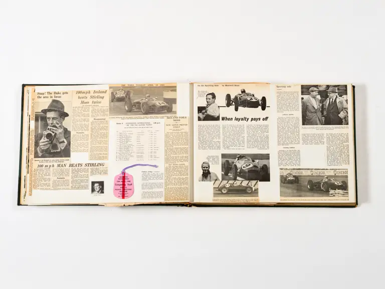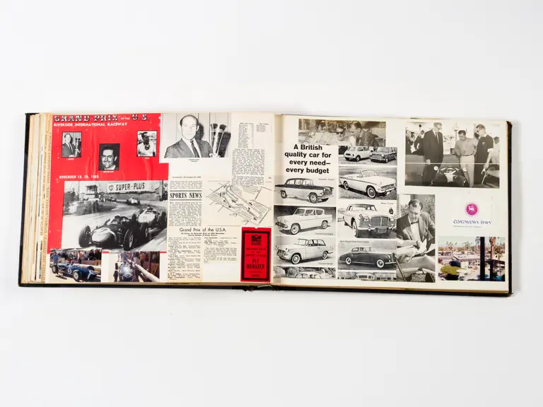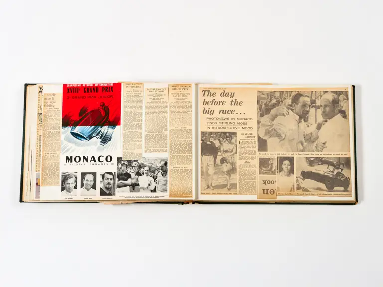 Rob Walker compiled hundreds of photographs, newspaper clippings, race programmes, ticket stubs and various other items during each racing season. Over the winter break, Rob and his wife Betty would spend hours making these beautiful scrapbooks to commemorate the races and events of the year. A simply wonderful compilation of period collectables and information.