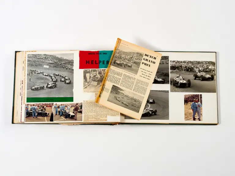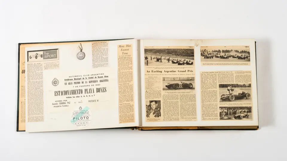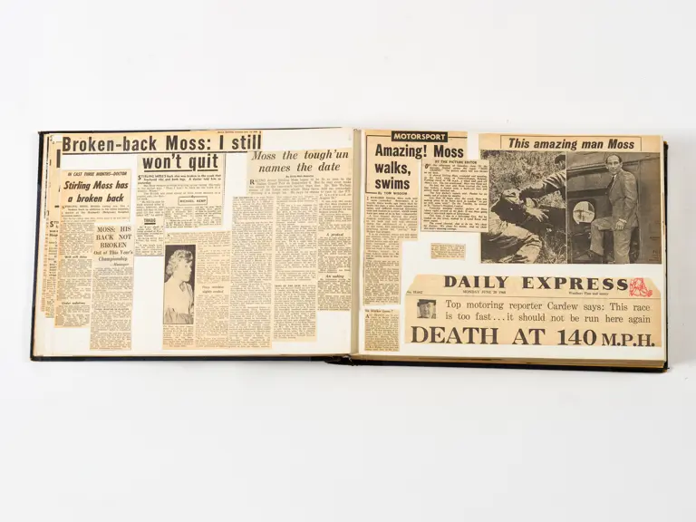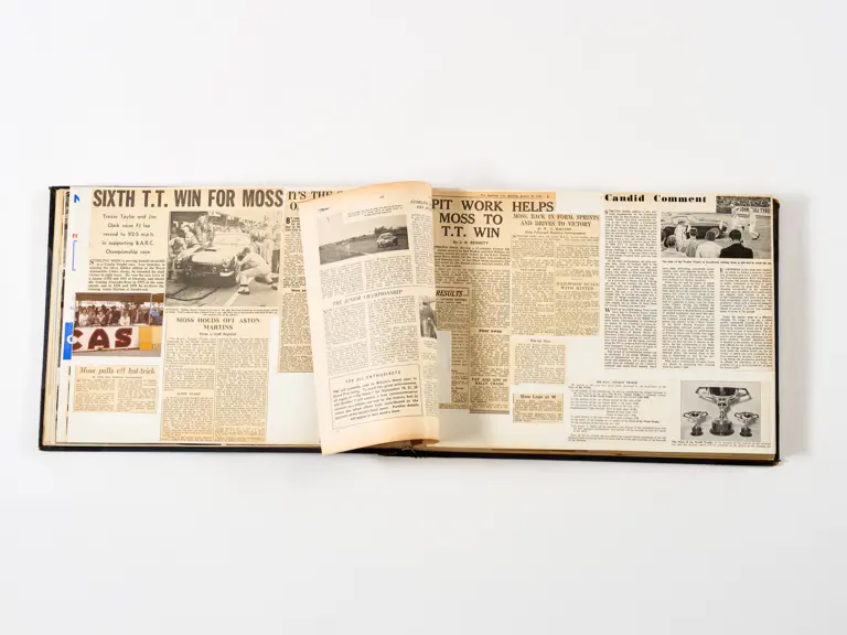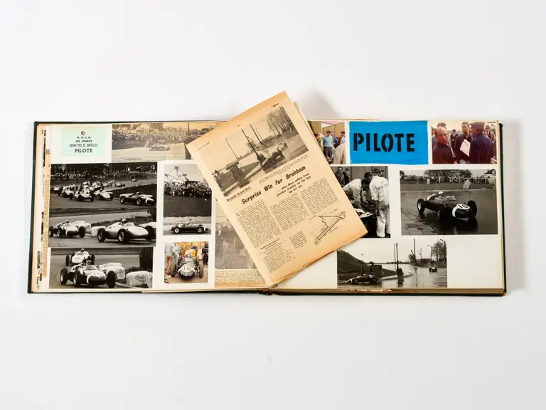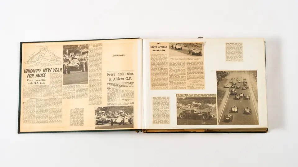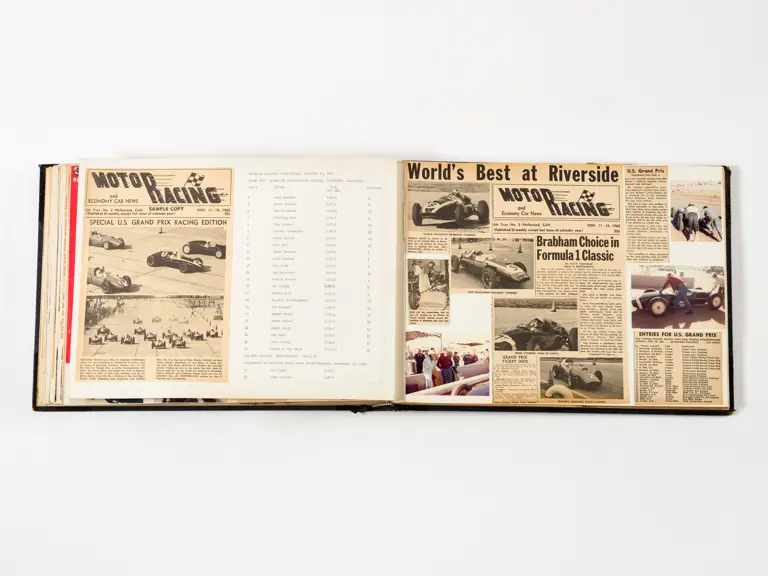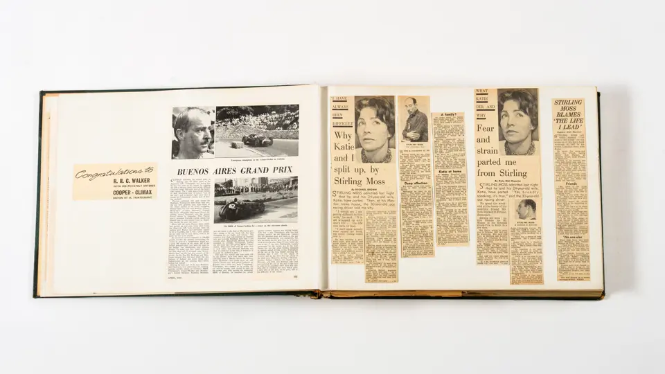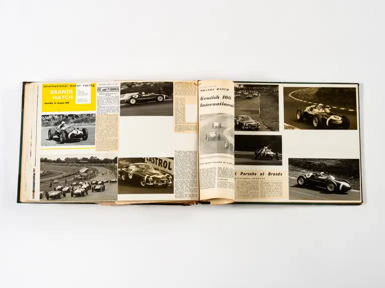 Rob Walker compiled hundreds of photographs, newspaper clippings, race programmes, ticket stubs and various other items during each racing season. Over the winter break, Rob and his wife Betty would spend hours making these beautiful scrapbooks to commemorate the races and events of the year. A simply wonderful compilation of period collectables and information.
