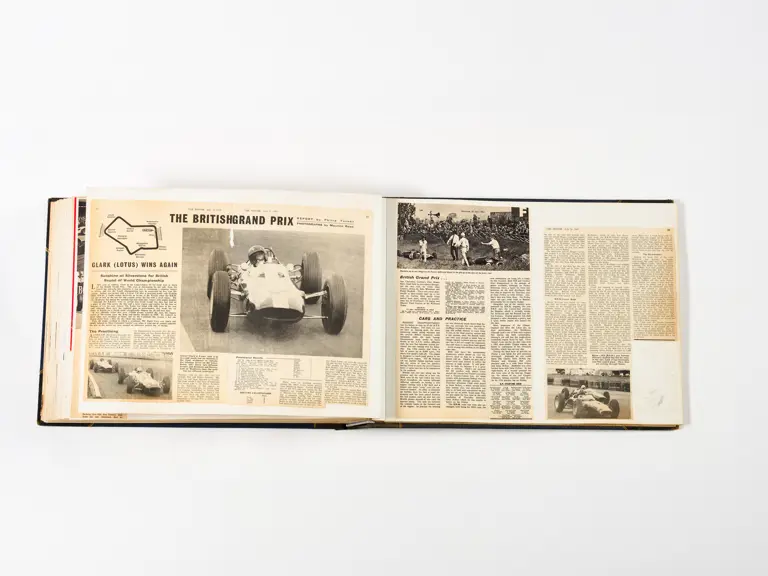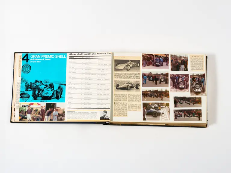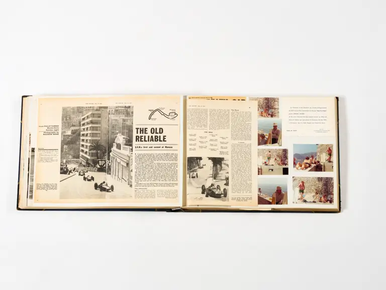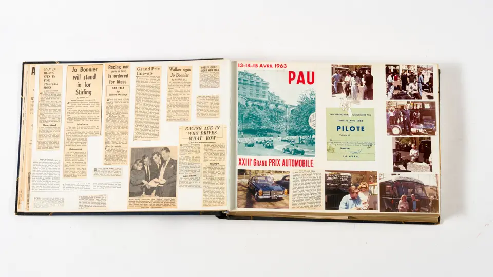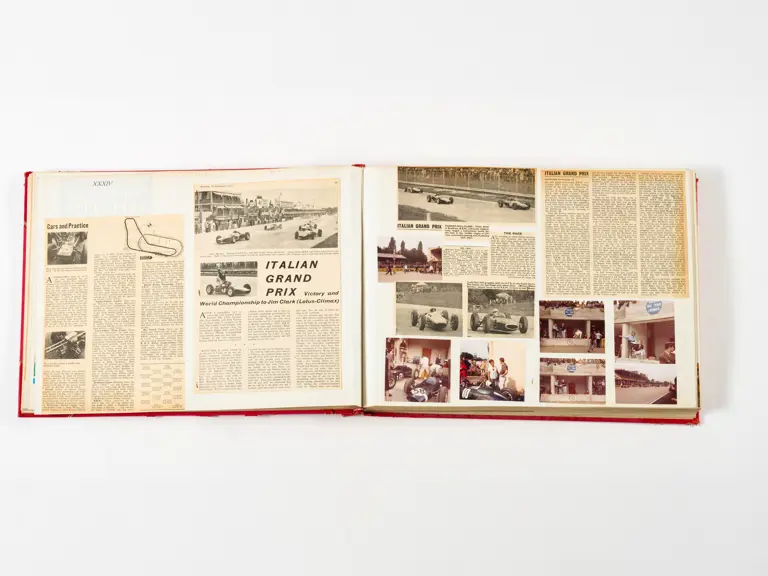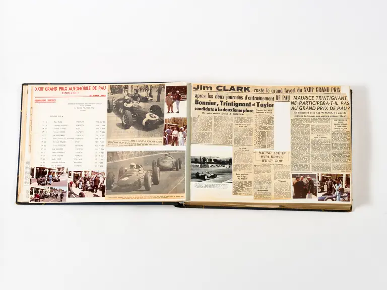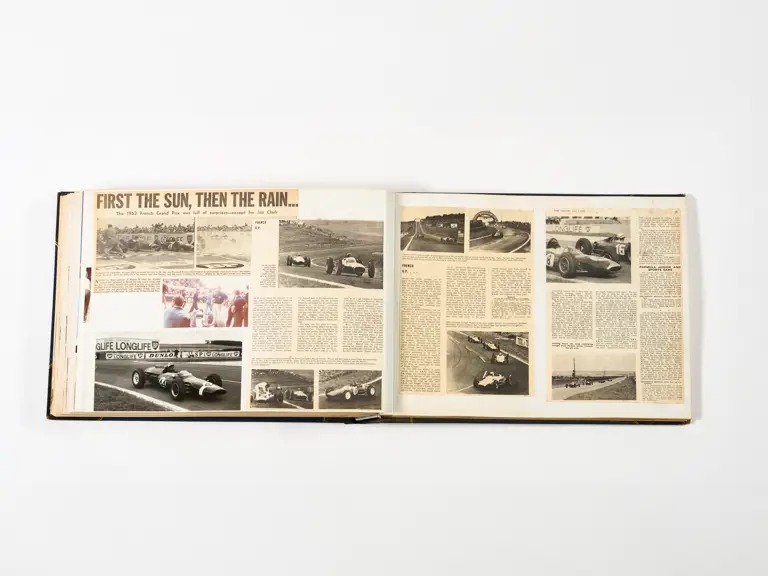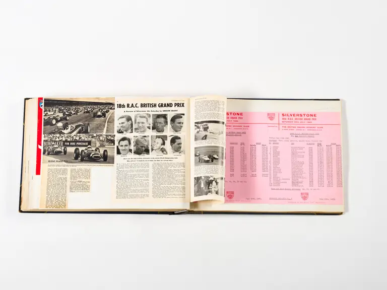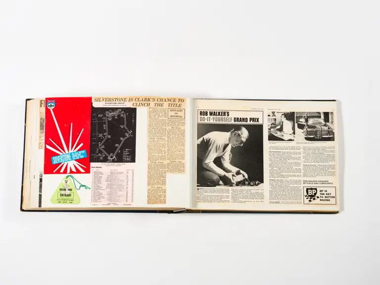 Rob Walker compiled hundreds of photographs, newspaper clippings, race programmes, ticket stubs and various other items during each racing season. Over the winter break, Rob and his wife Betty would spend hours making these beautiful scrapbooks to commemorate the races and events of the year. A simply wonderful compilation of period collectables and information.