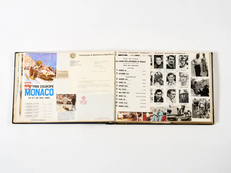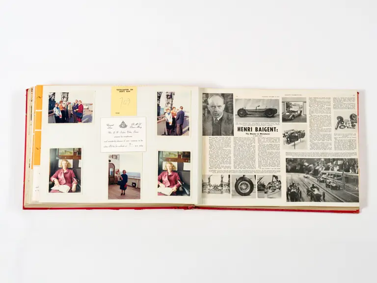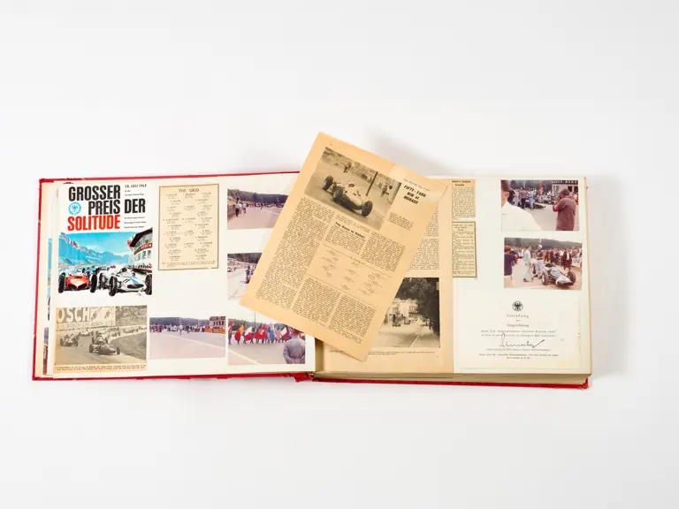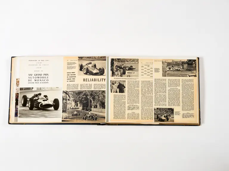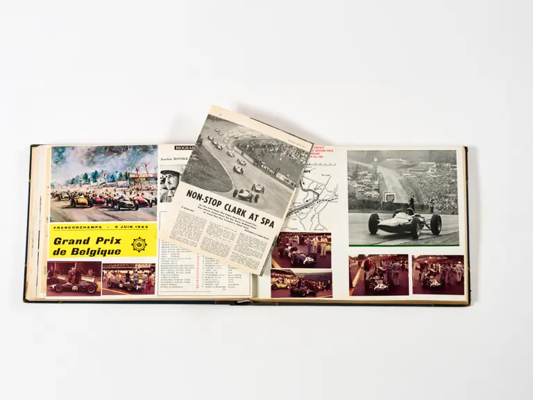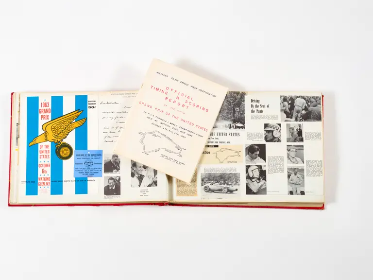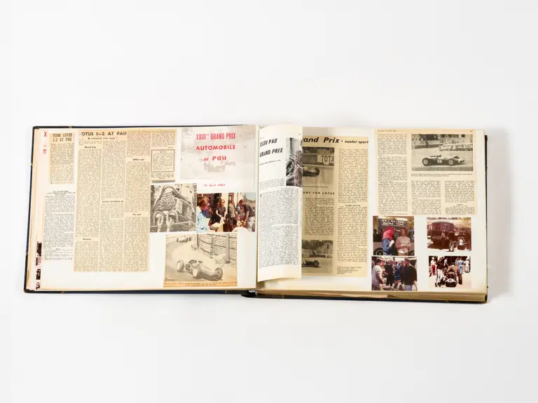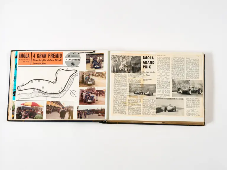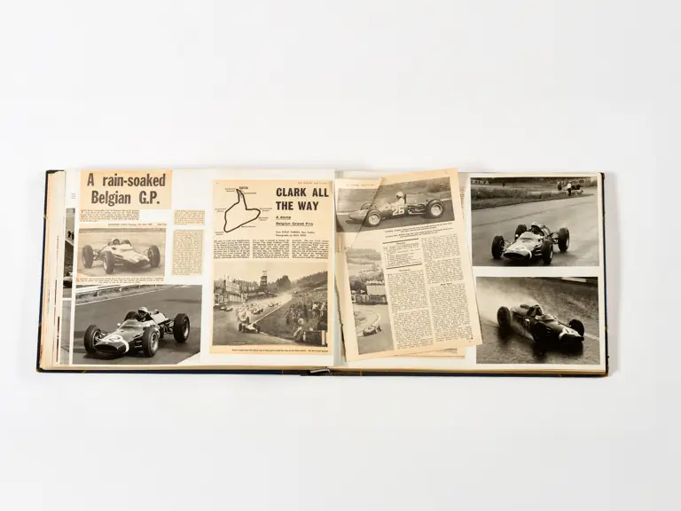 Rob Walker compiled hundreds of photographs, newspaper clippings, race programmes, ticket stubs and various other items during each racing season. Over the winter break, Rob and his wife Betty would spend hours making these beautiful scrapbooks to commemorate the races and events of the year. A simply wonderful compilation of period collectables and information.