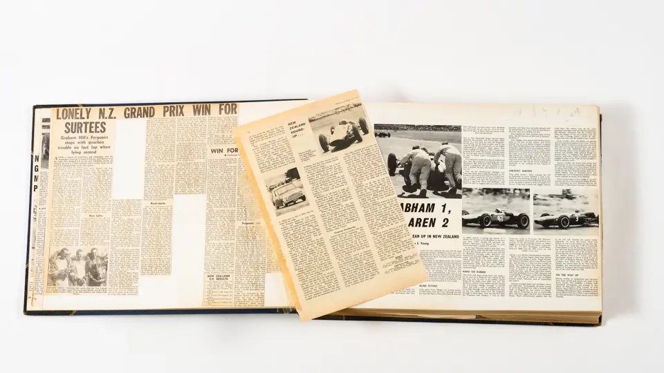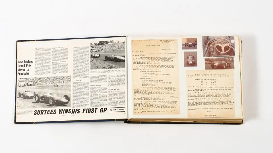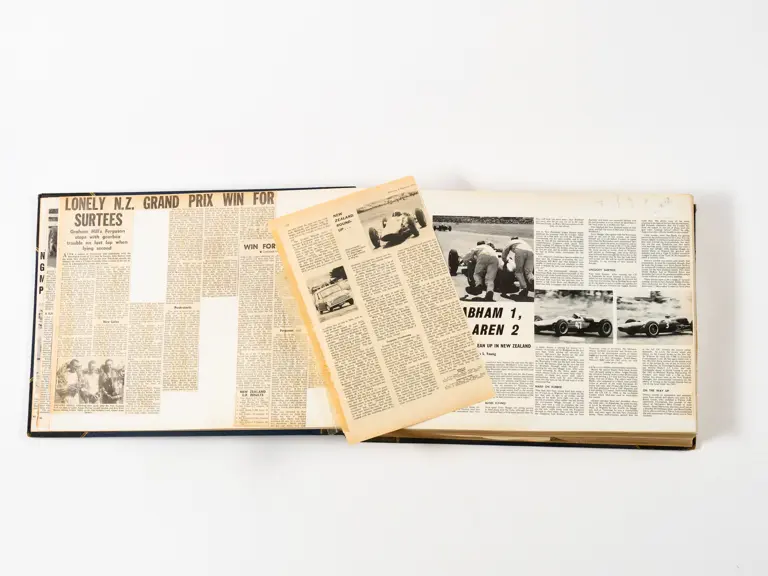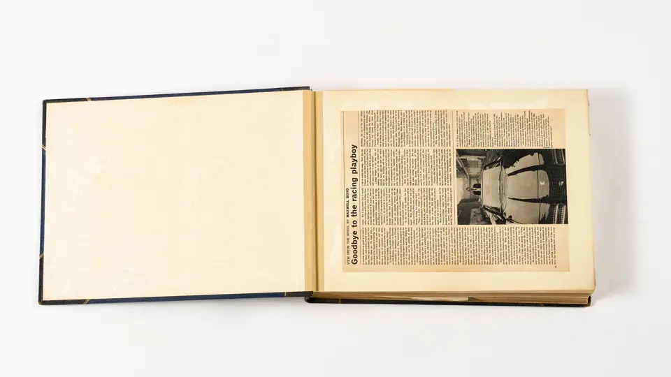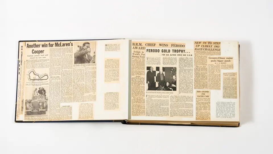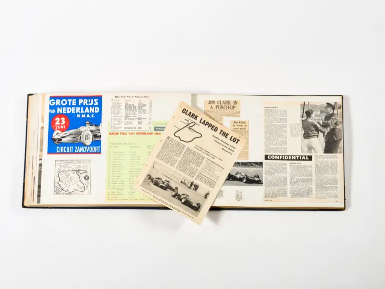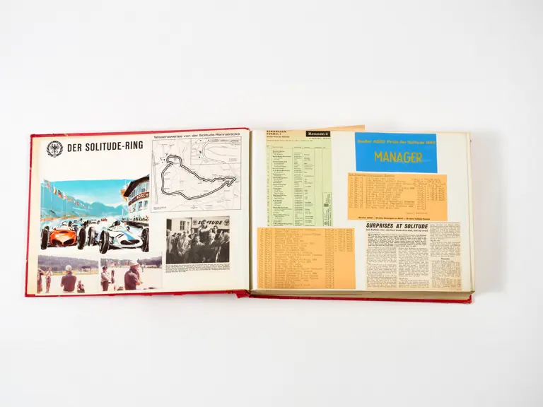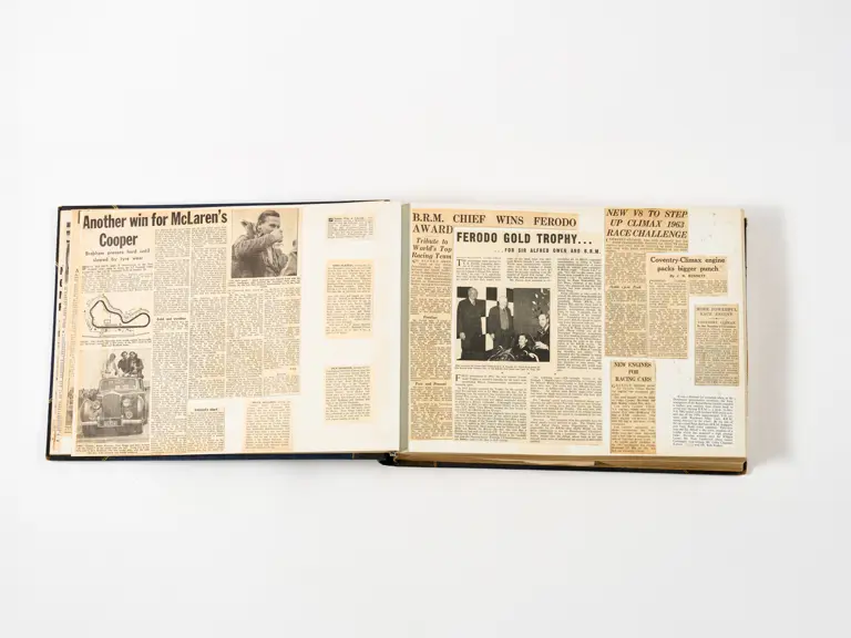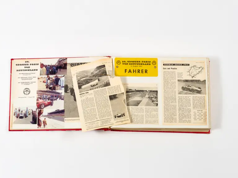 Rob Walker compiled hundreds of photographs, newspaper clippings, race programmes, ticket stubs and various other items during each racing season. Over the winter break, Rob and his wife Betty would spend hours making these beautiful scrapbooks to commemorate the races and events of the year. A simply wonderful compilation of period collectables and information.