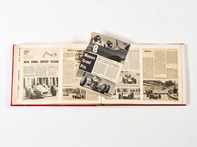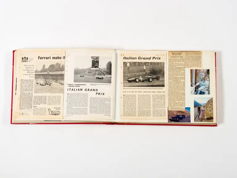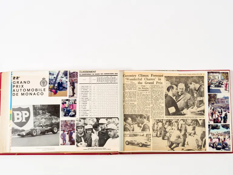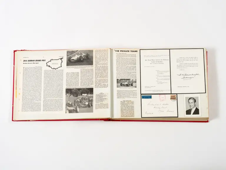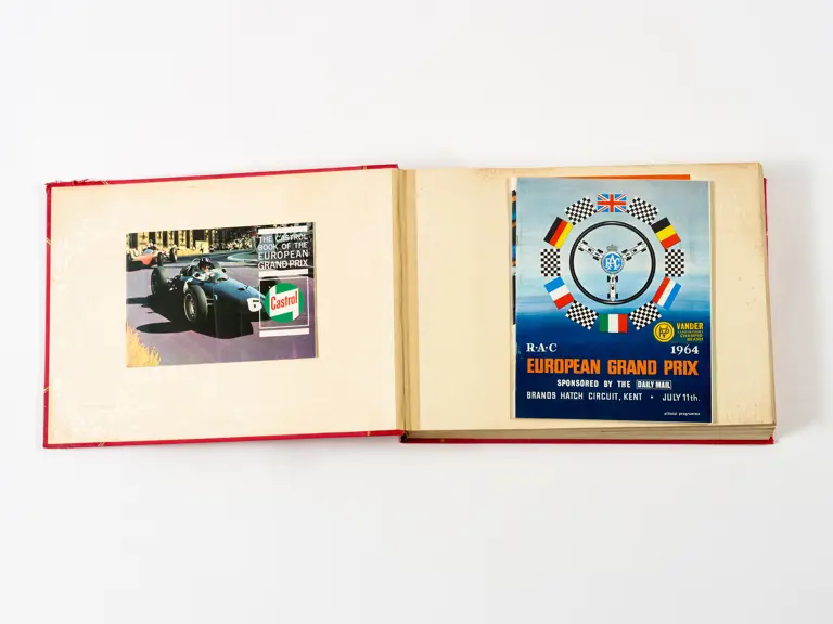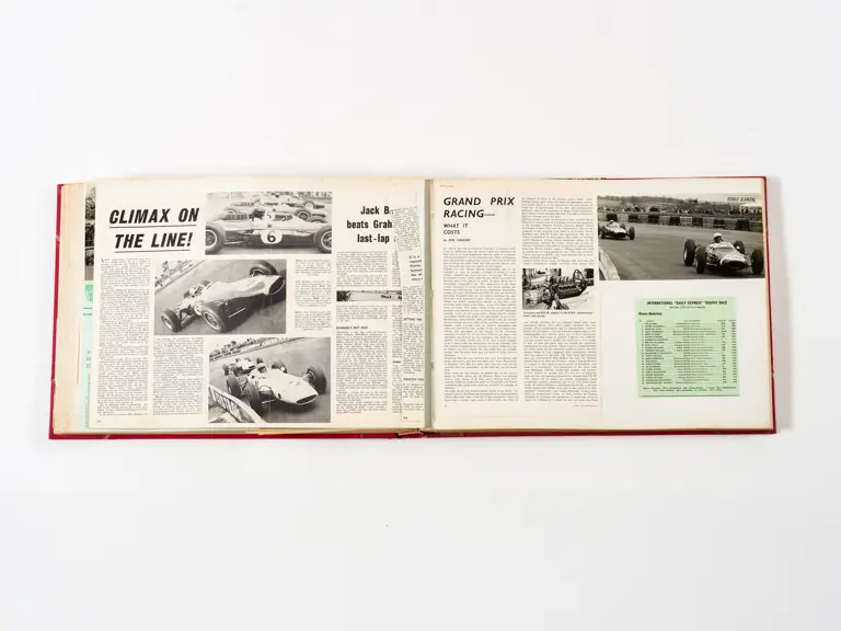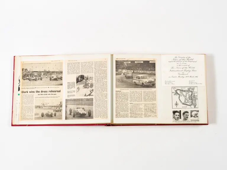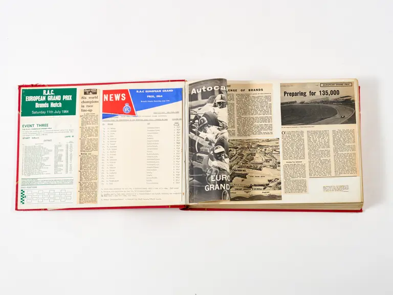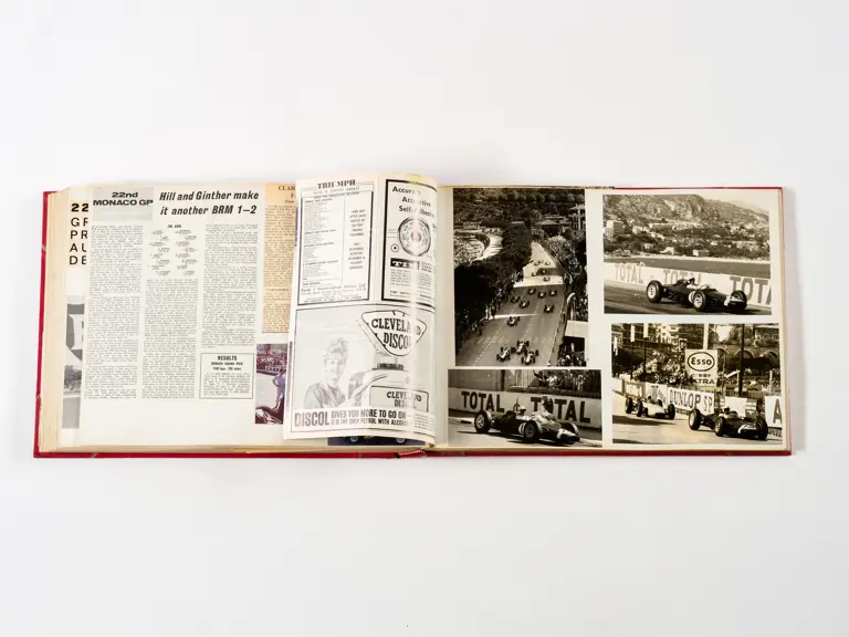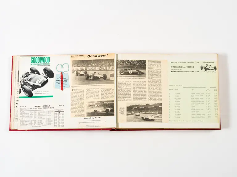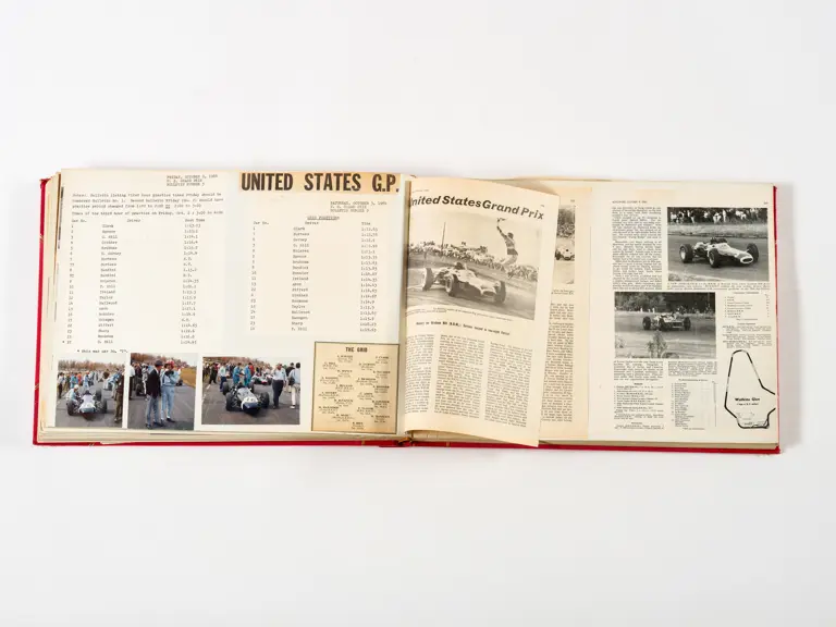 Rob Walker compiled hundreds of photographs, newspaper clippings, race programmes, ticket stubs and various other items during each racing season. Over the winter break, Rob and his wife Betty would spend hours making these beautiful scrapbooks to commemorate the races and events of the year. A simply wonderful compilation of period collectables and information.