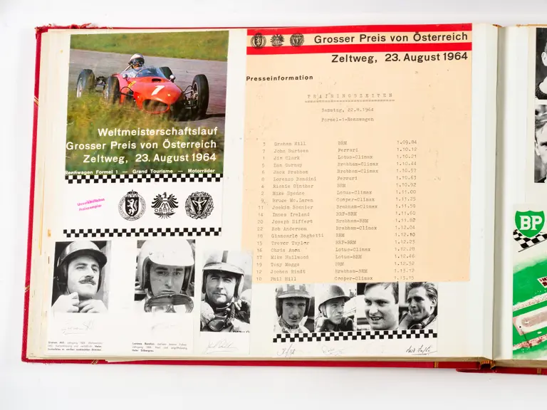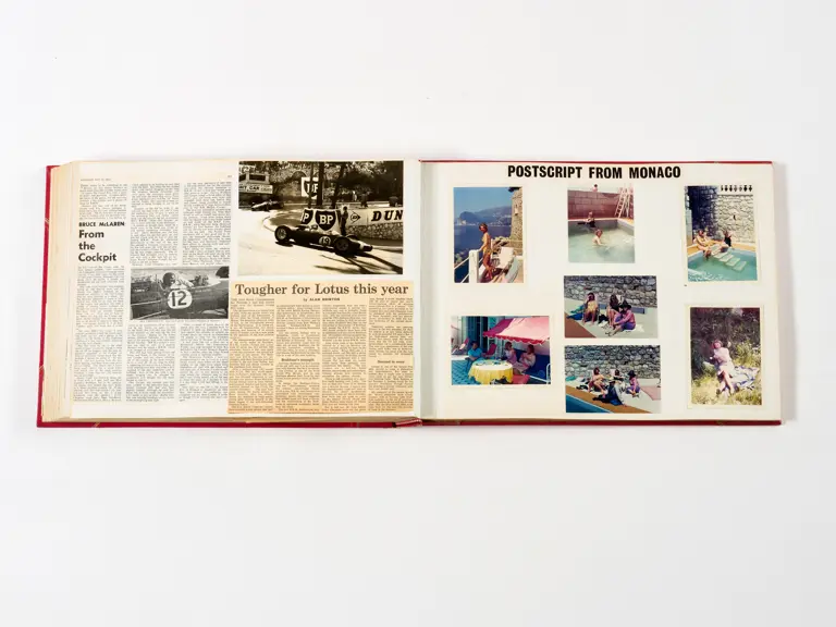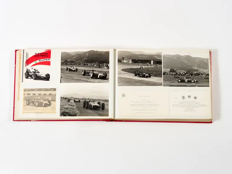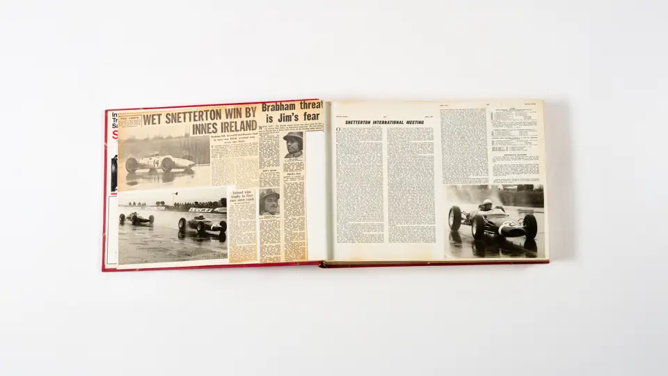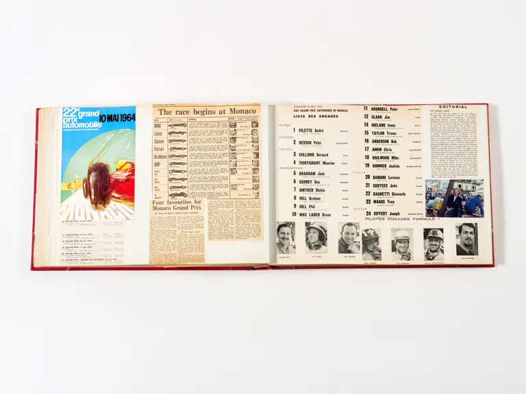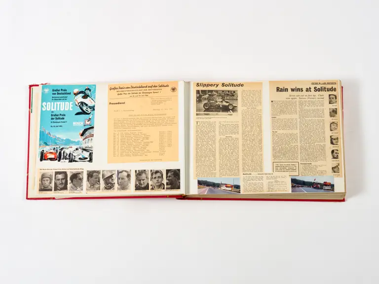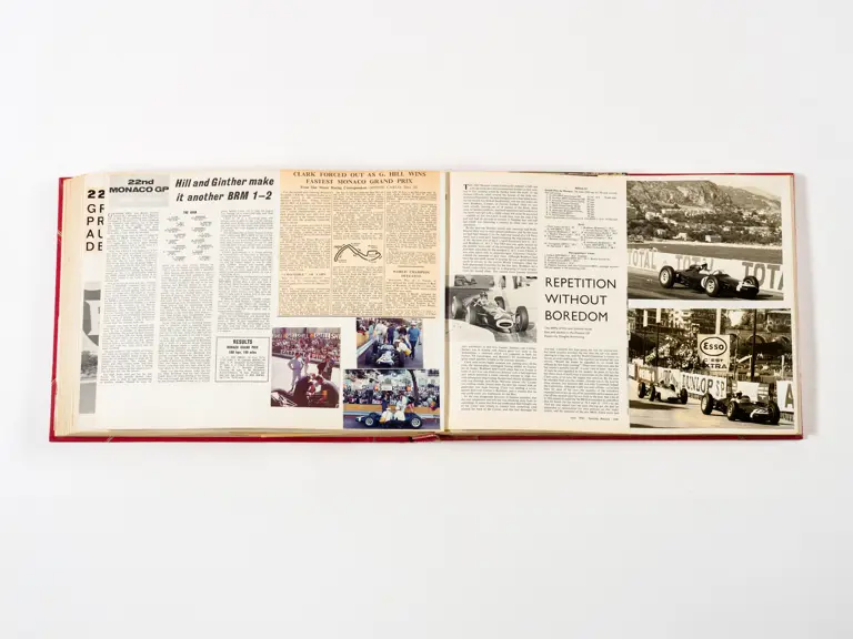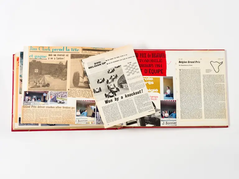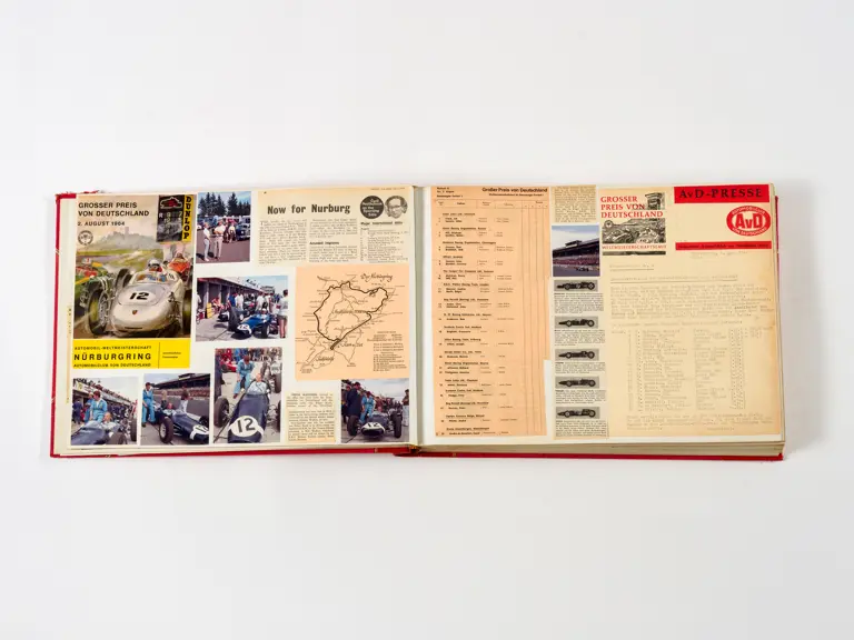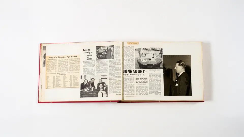 Rob Walker compiled hundreds of photographs, newspaper clippings, race programmes, ticket stubs and various other items during each racing season. Over the winter break, Rob and his wife Betty would spend hours making these beautiful scrapbooks to commemorate the races and events of the year. A simply wonderful compilation of period collectables and information.