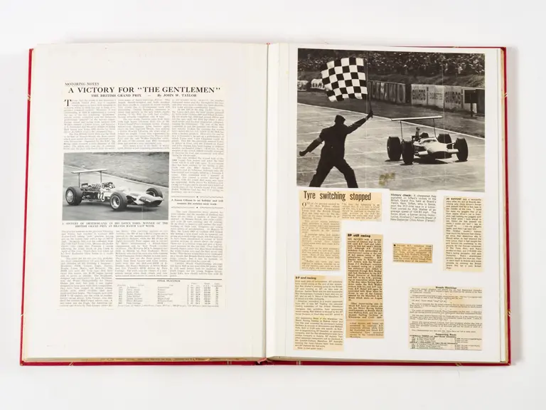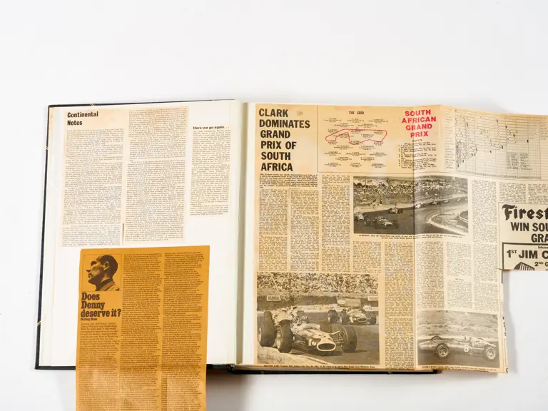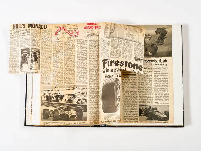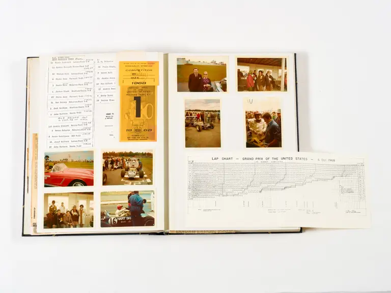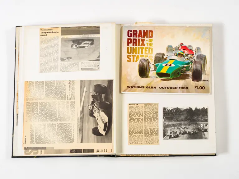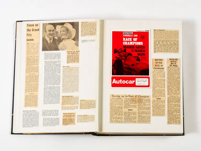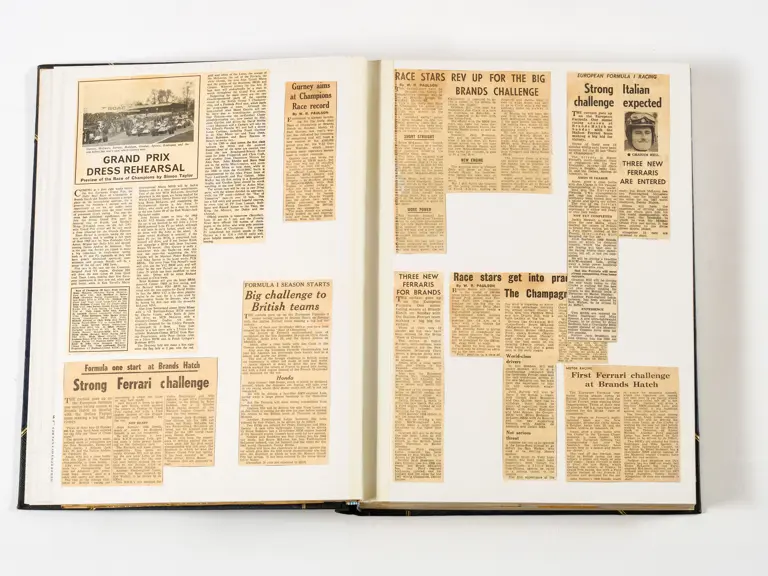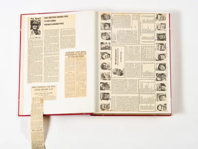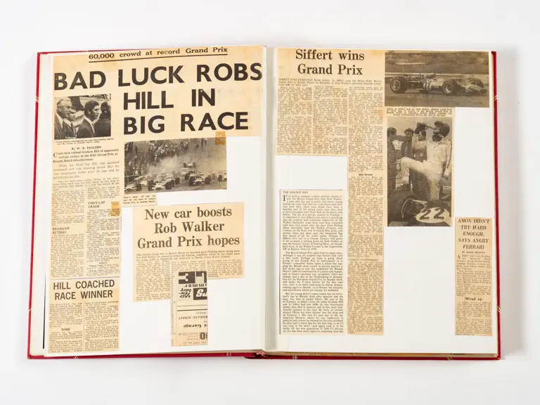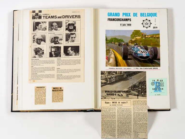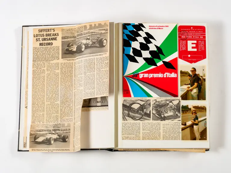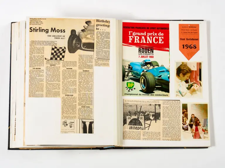 Rob Walker compiled hundreds of photographs, newspaper clippings, race programmes, ticket stubs and various other items during each racing season. Over the winter break, Rob and his wife Betty would spend hours making these beautiful scrapbooks to commemorate the races and events of the year. A simply wonderful compilation of period collectables and information.