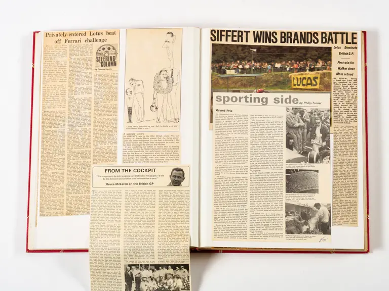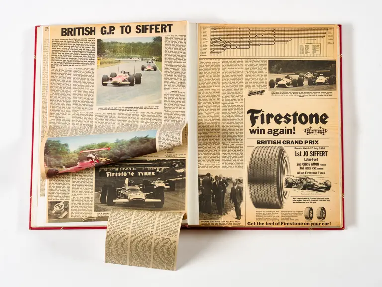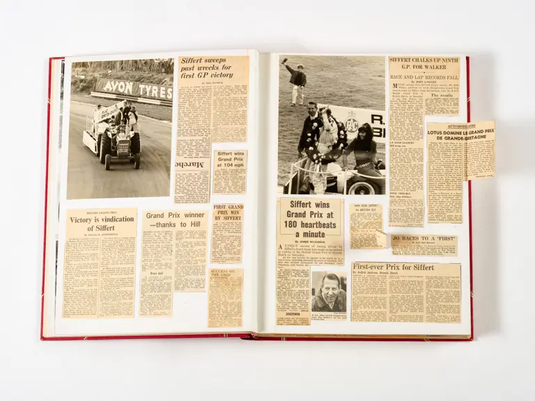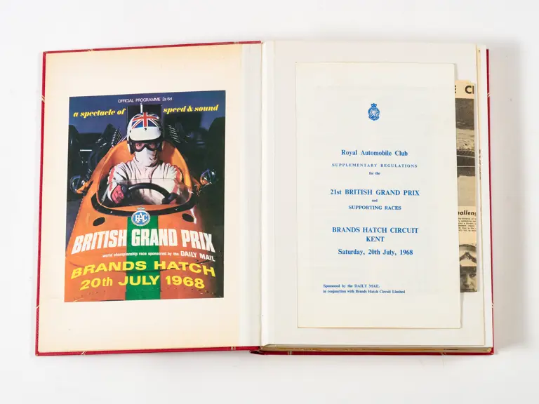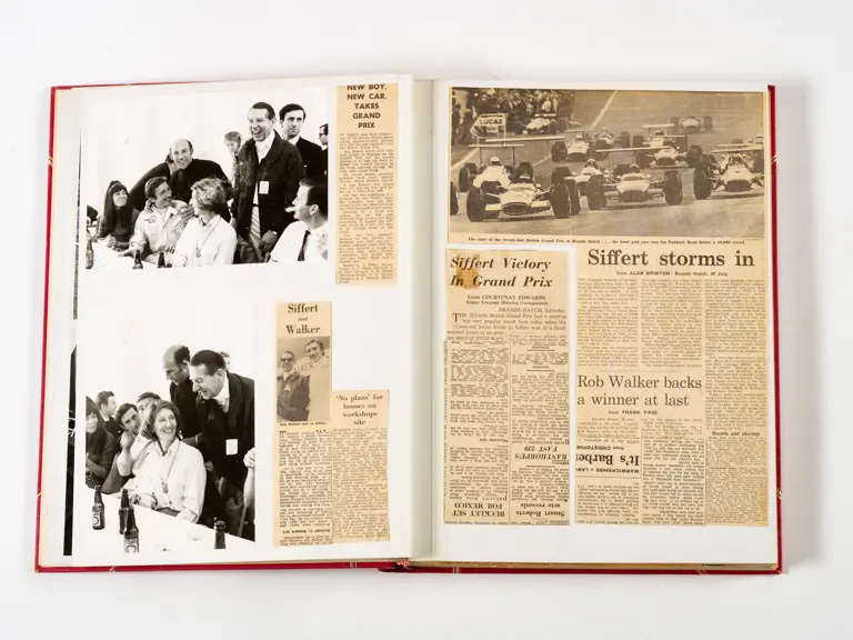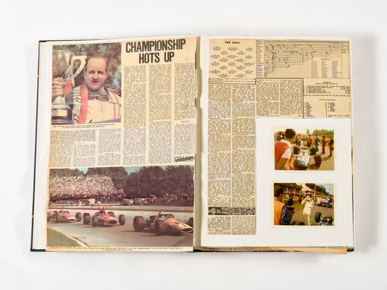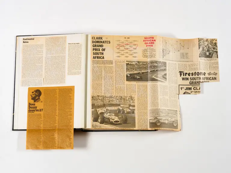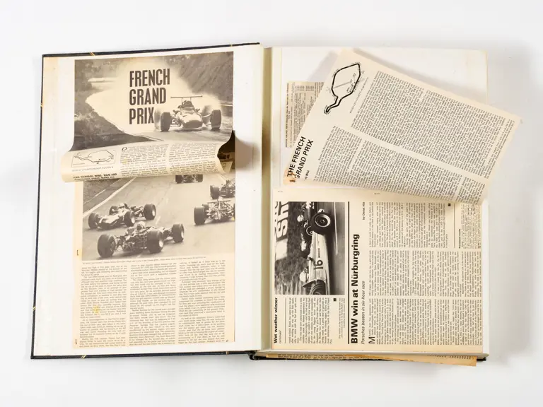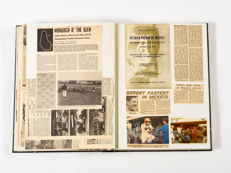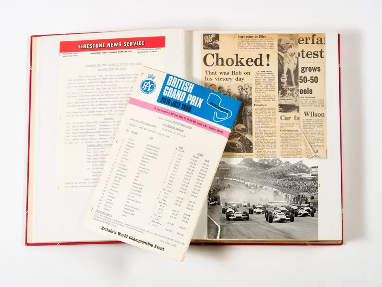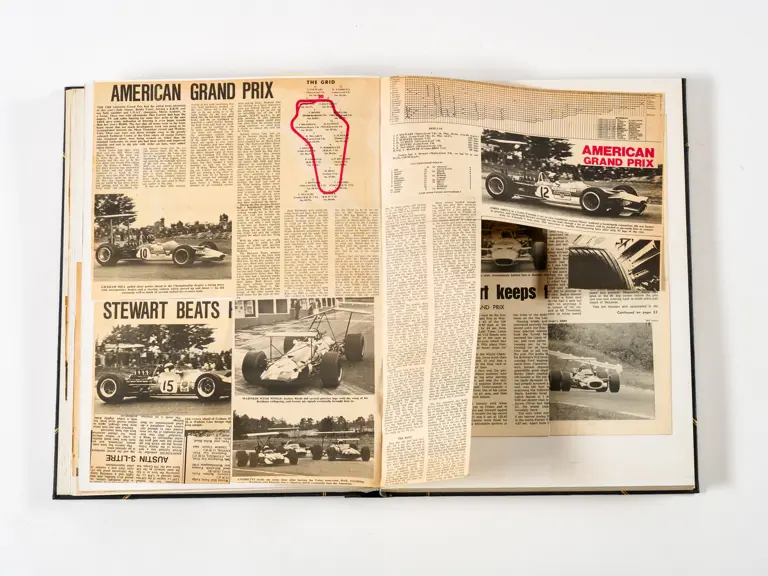 Rob Walker compiled hundreds of photographs, newspaper clippings, race programmes, ticket stubs and various other items during each racing season. Over the winter break, Rob and his wife Betty would spend hours making these beautiful scrapbooks to commemorate the races and events of the year. A simply wonderful compilation of period collectables and information.
