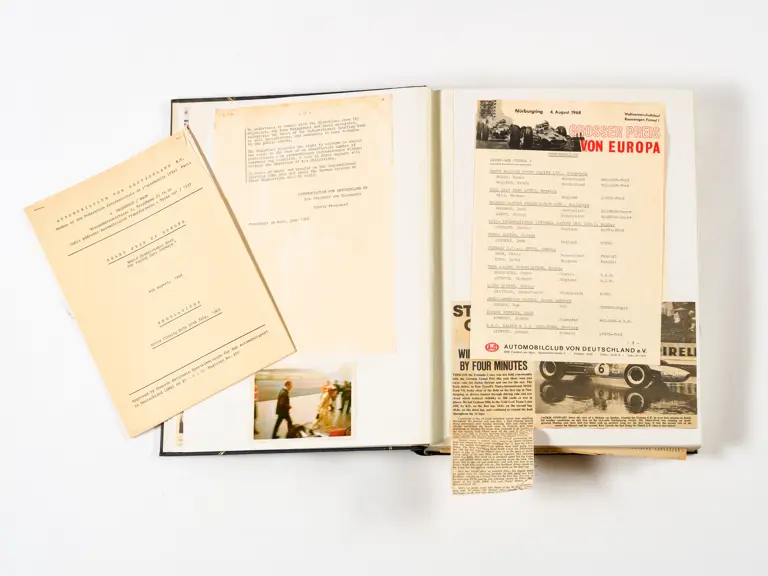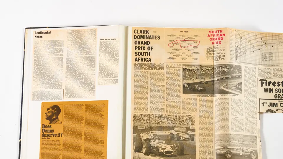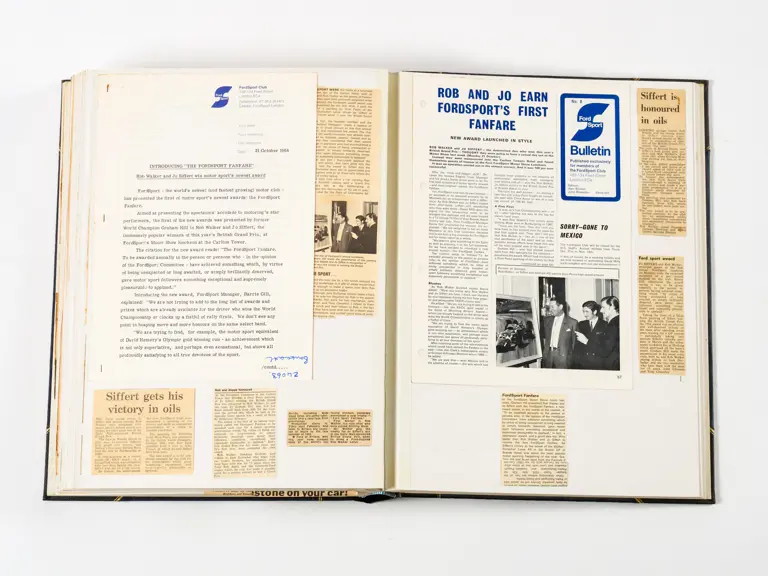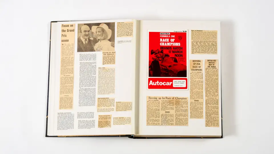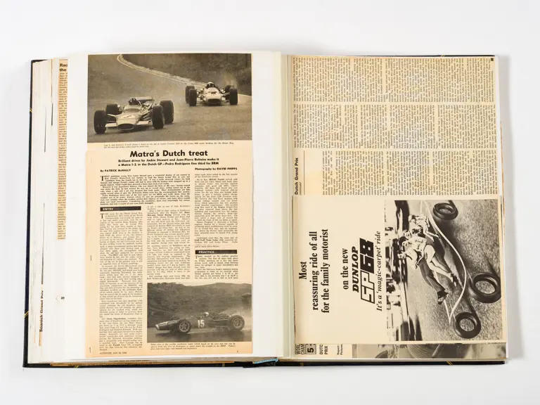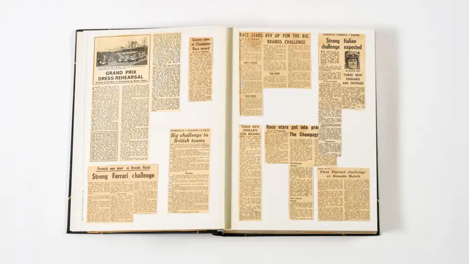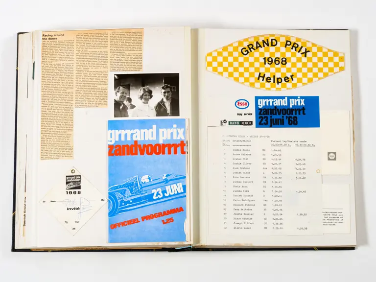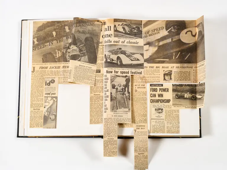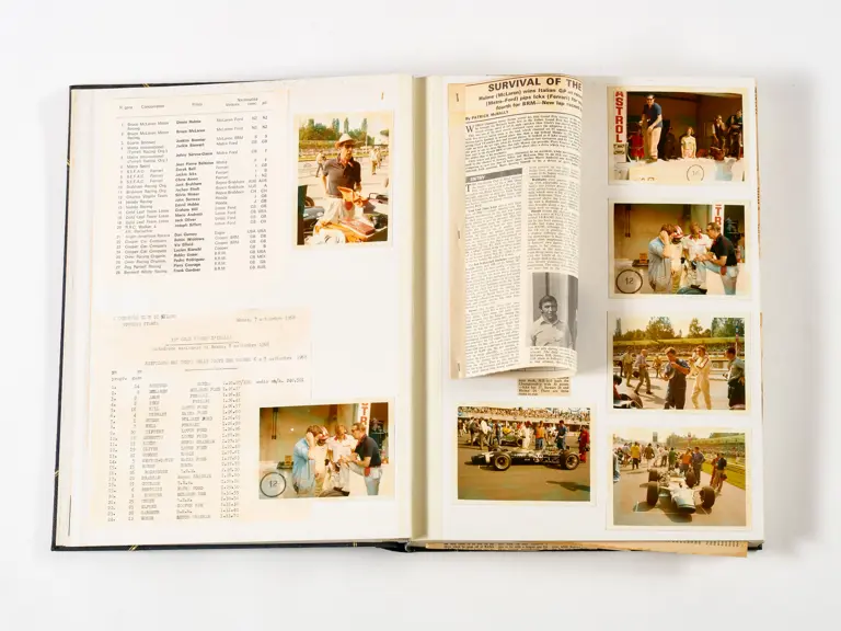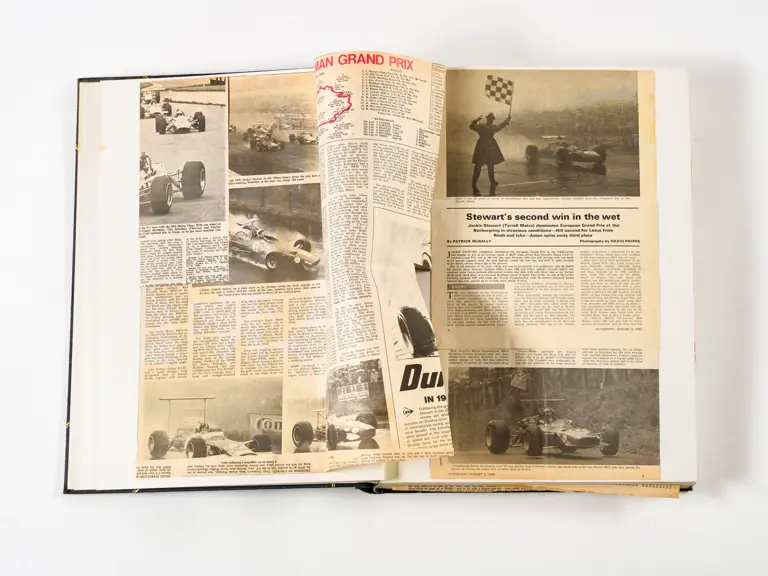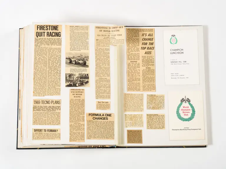 Rob Walker compiled hundreds of photographs, newspaper clippings, race programmes, ticket stubs and various other items during each racing season. Over the winter break, Rob and his wife Betty would spend hours making these beautiful scrapbooks to commemorate the races and events of the year. A simply wonderful compilation of period collectables and information.