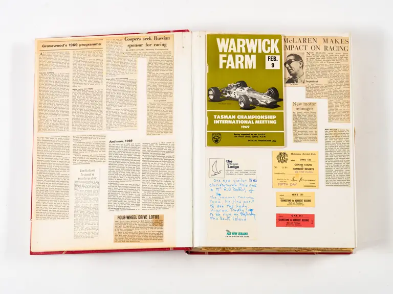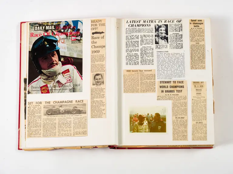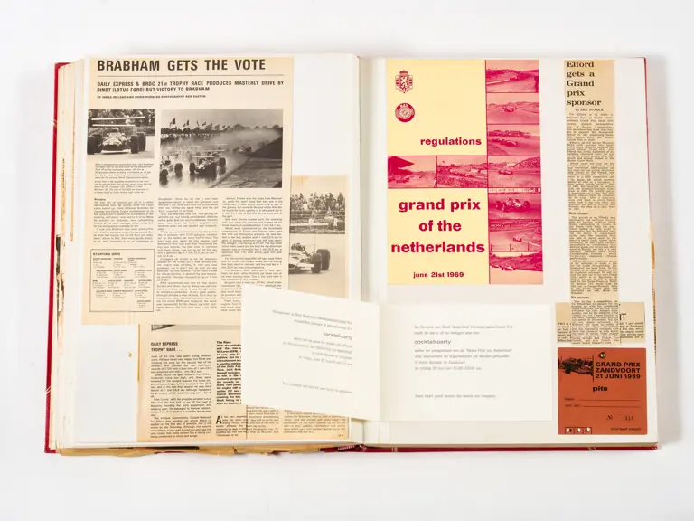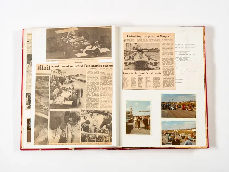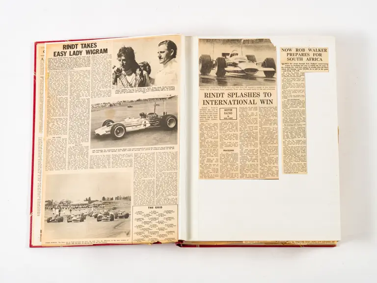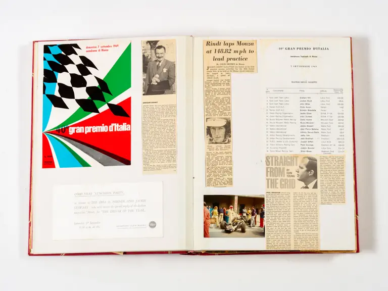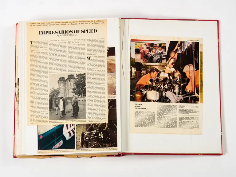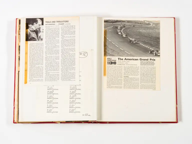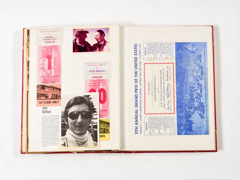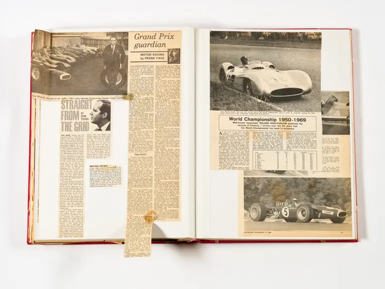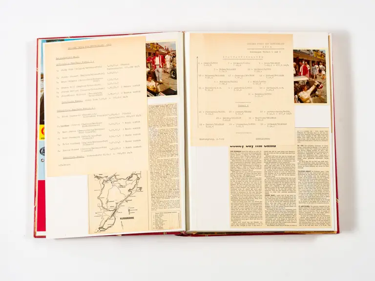 Rob Walker compiled hundreds of photographs, newspaper clippings, race programmes, ticket stubs and various other items during each racing season. Over the winter break, Rob and his wife Betty would spend hours making these beautiful scrapbooks to commemorate the races and events of the year. A simply wonderful compilation of period collectables and information.