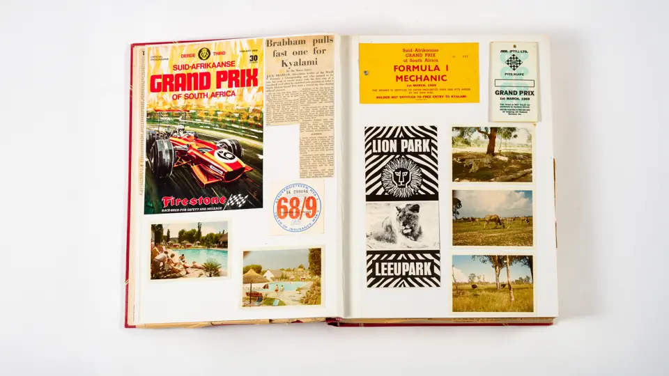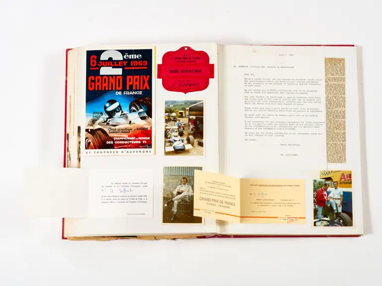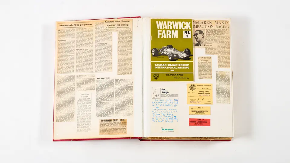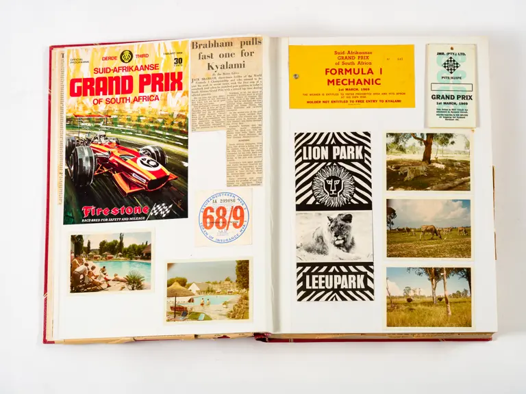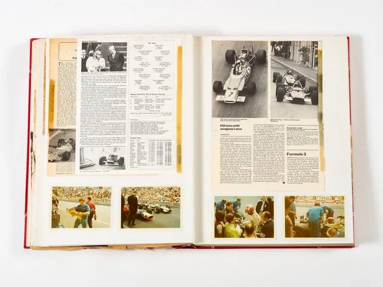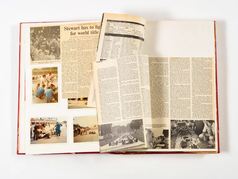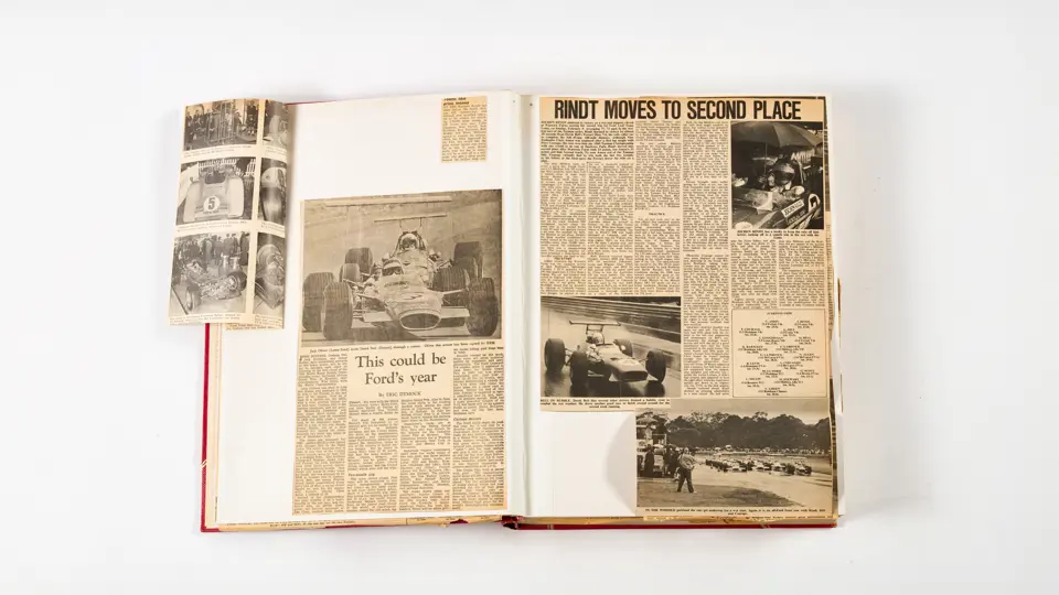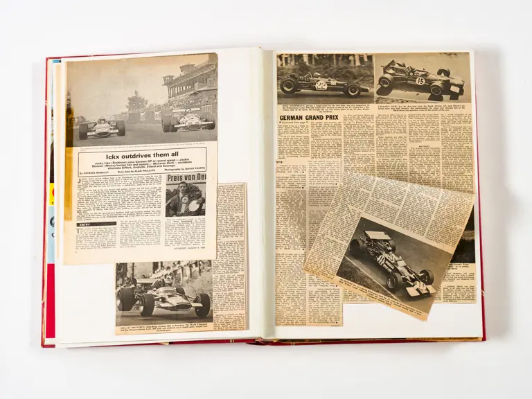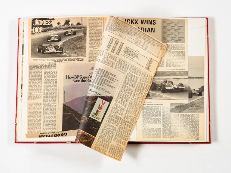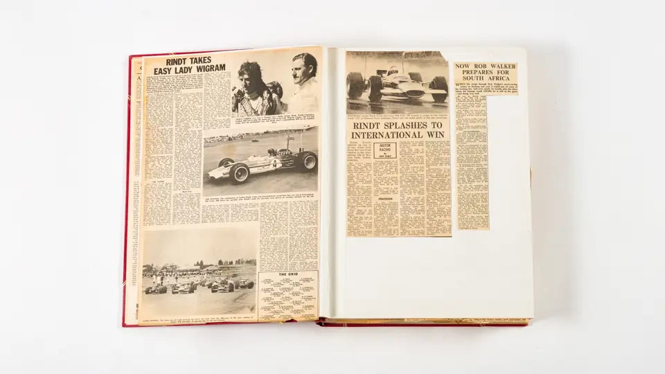 Rob Walker compiled hundreds of photographs, newspaper clippings, race programmes, ticket stubs and various other items during each racing season. Over the winter break, Rob and his wife Betty would spend hours making these beautiful scrapbooks to commemorate the races and events of the year. A simply wonderful compilation of period collectables and information.