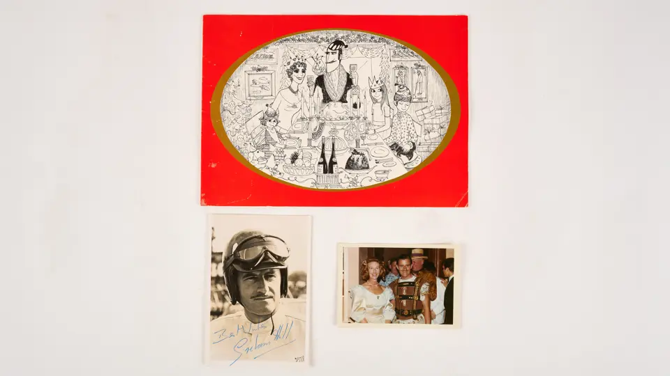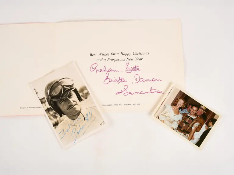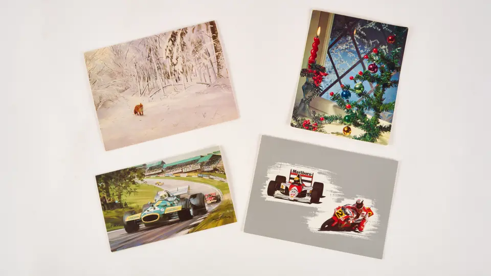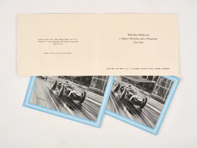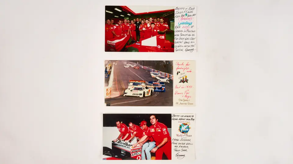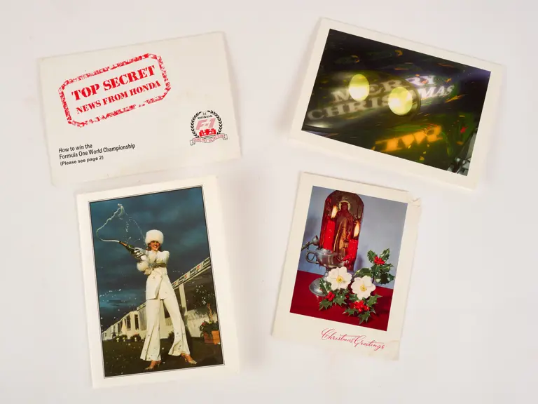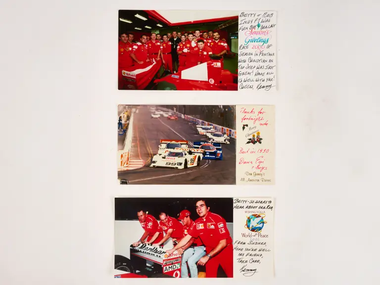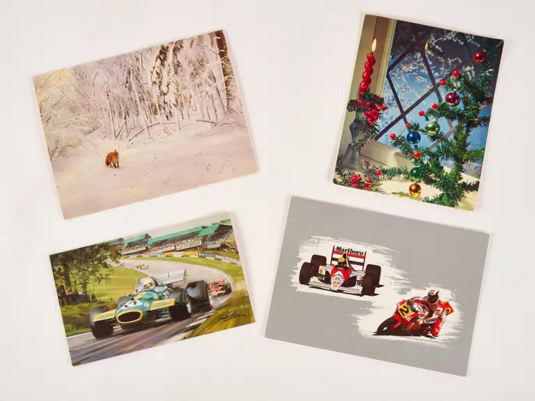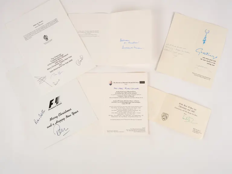This lot includes Christmas Cards from multiple years and are signed by the following: Stirling and Susie Moss, John Surtees, Gerhard Berger, Ron Dennis,Herbie Blash, Jo Ramirez, Teddy Mayer, Tyler Alexander, Gordon Coppuck, Tony Gaze, Dan Gurney, Gordon Murray, Bernie Ecclestone and many more.