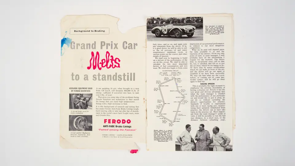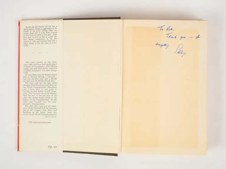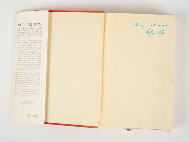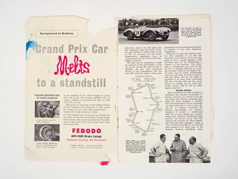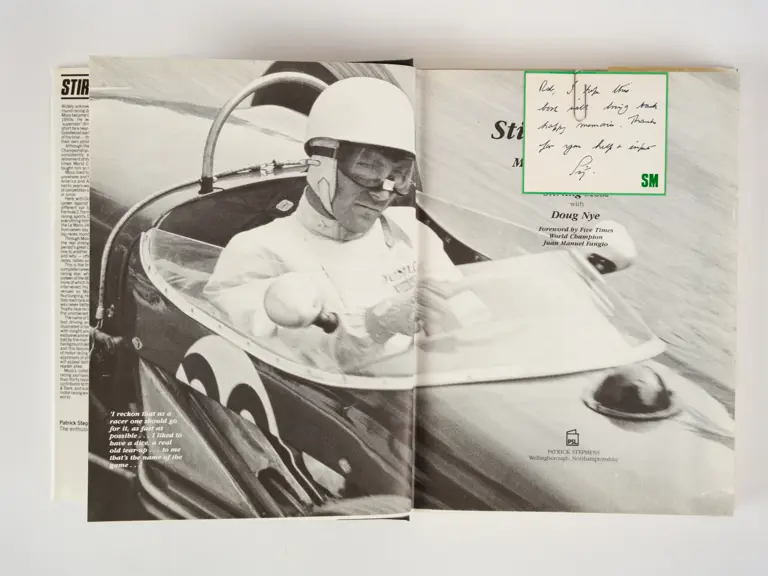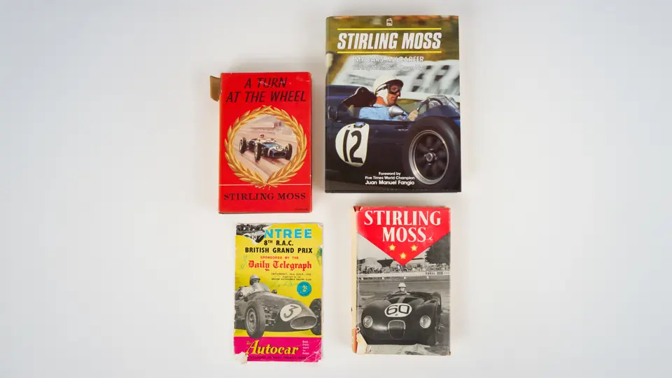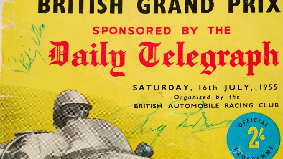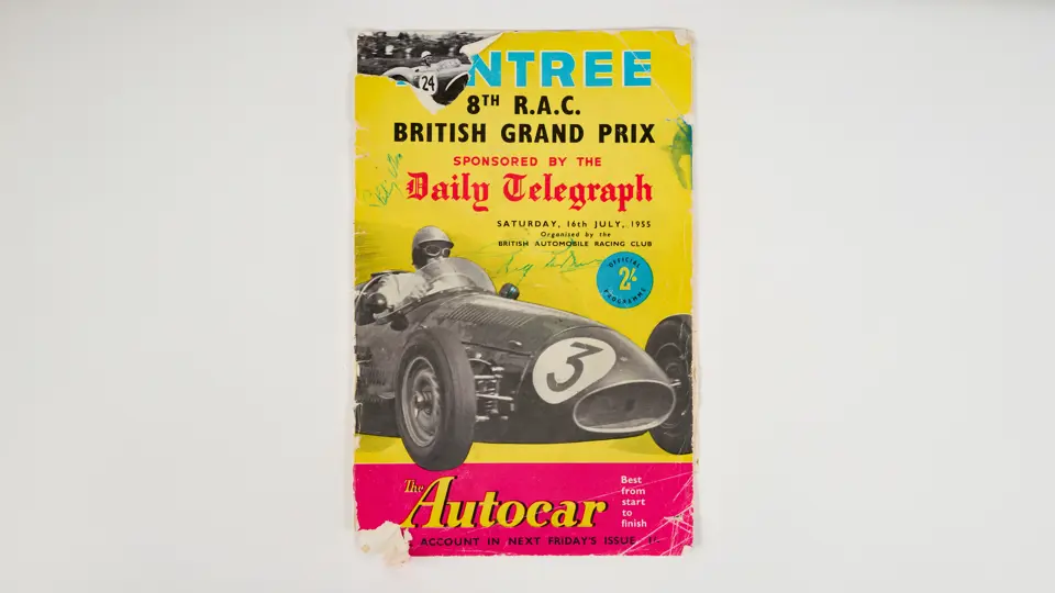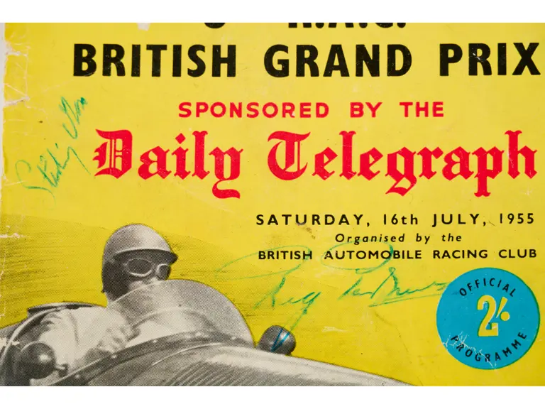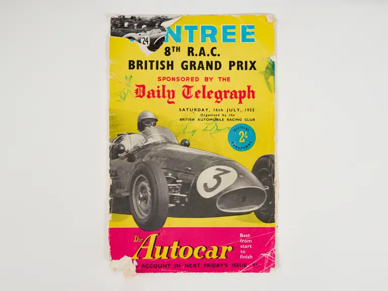 Includes a programme cover signed by Stirling Moss and Reg Parnell.