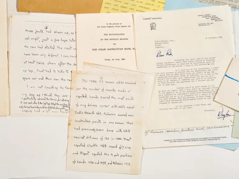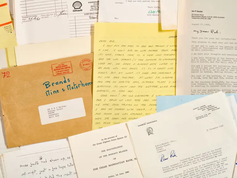 This lot includes letters, programmes, circuit information and correspondence.
