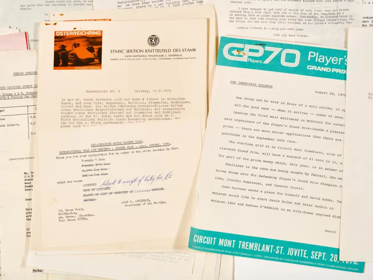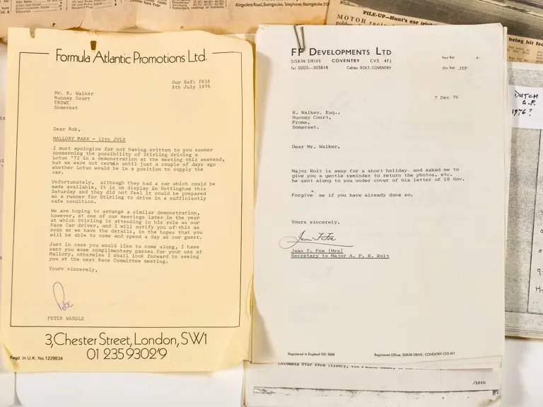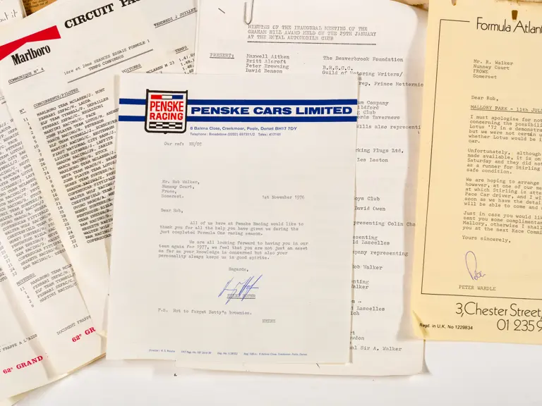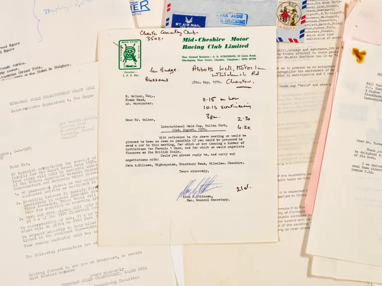 This lot includes letters, programmes, circuit information and correspondence.