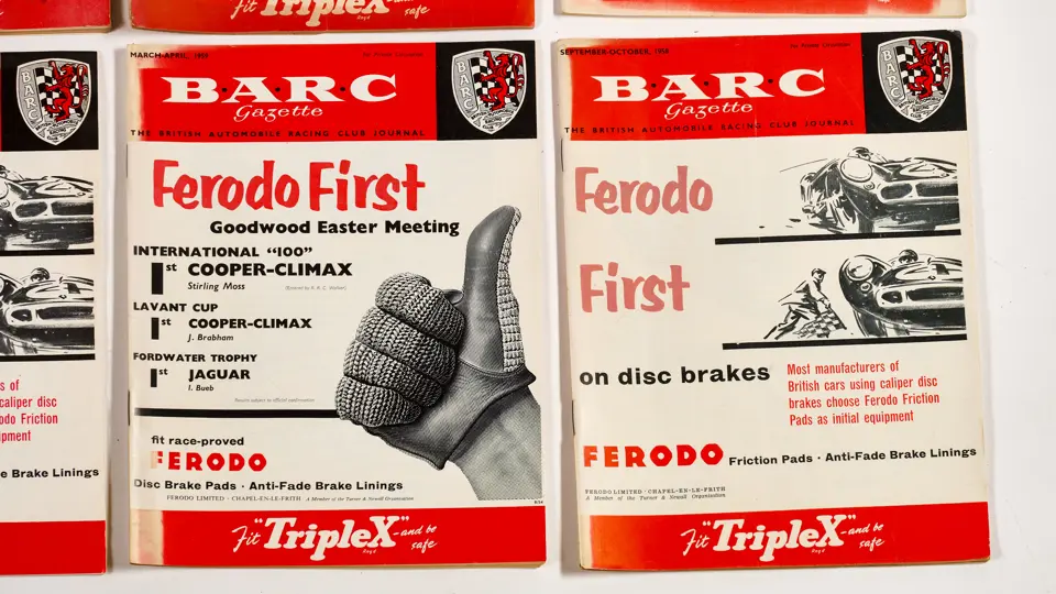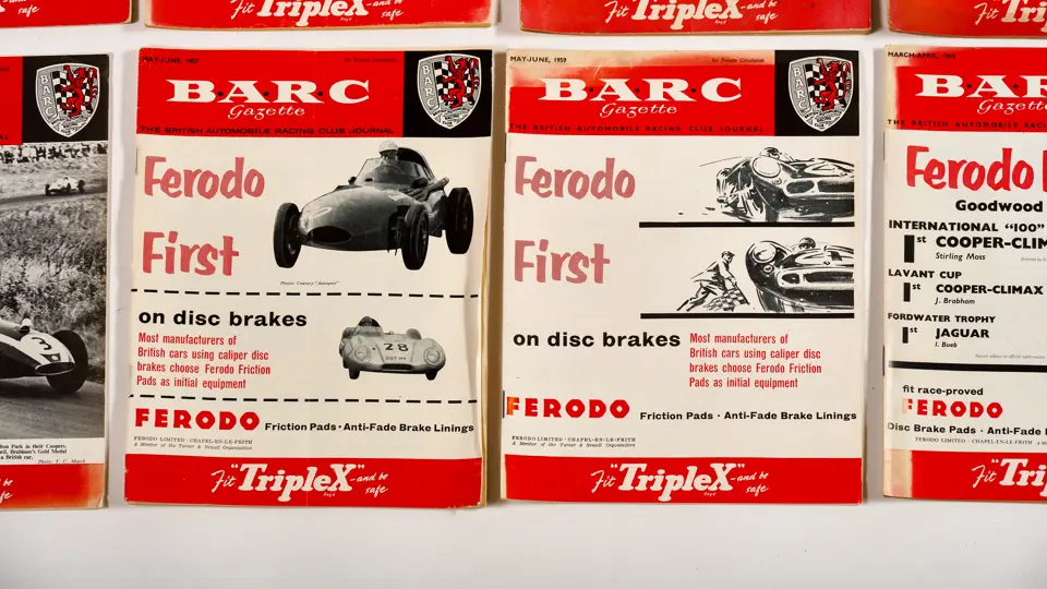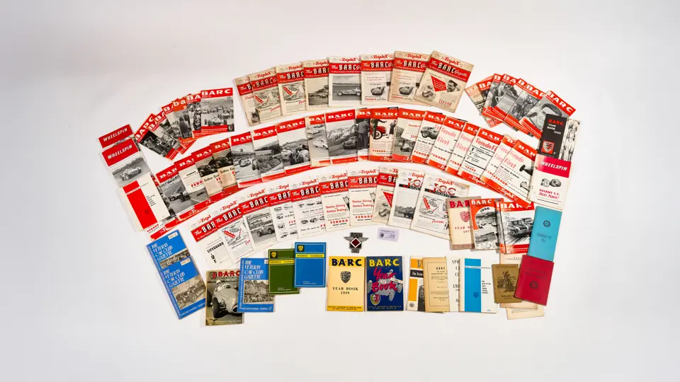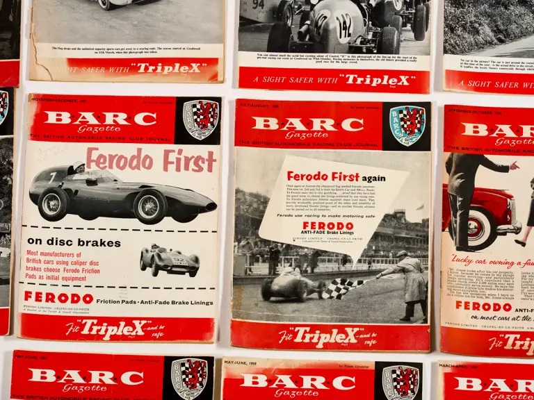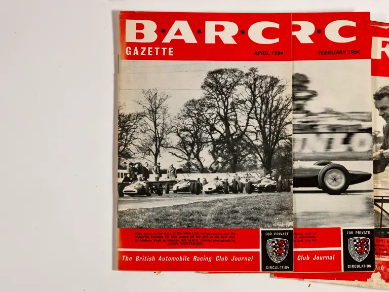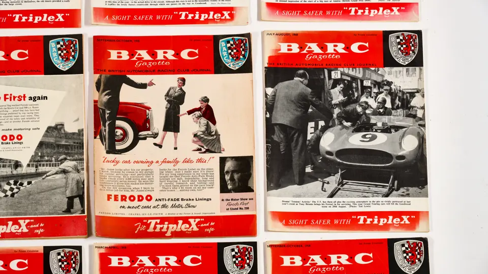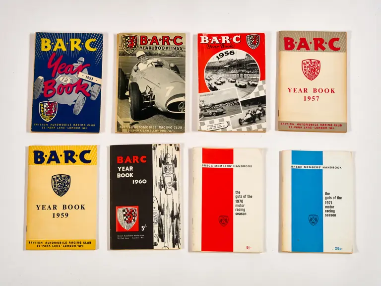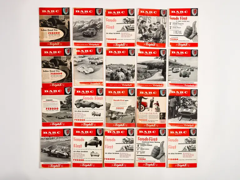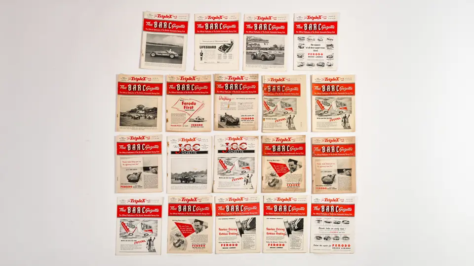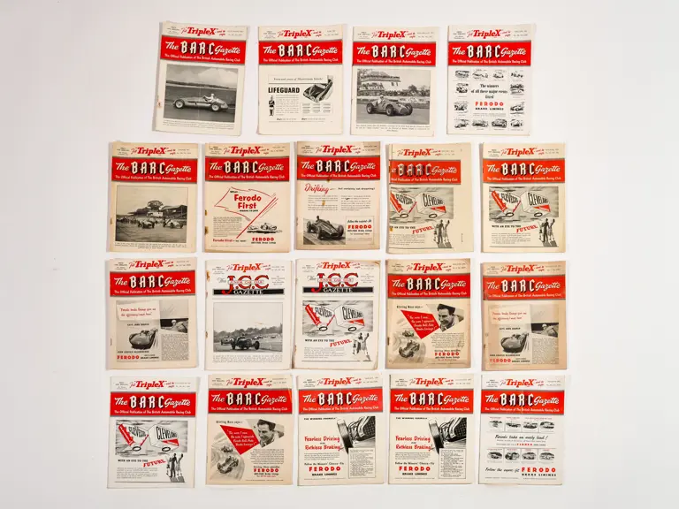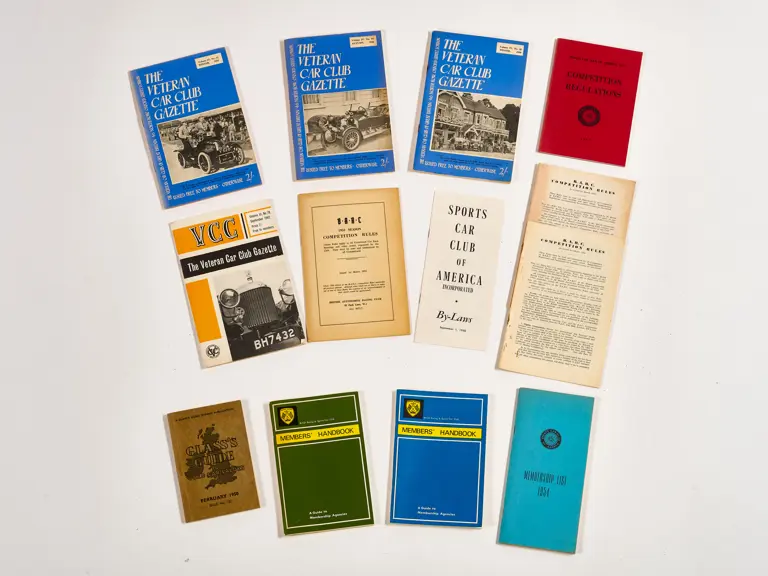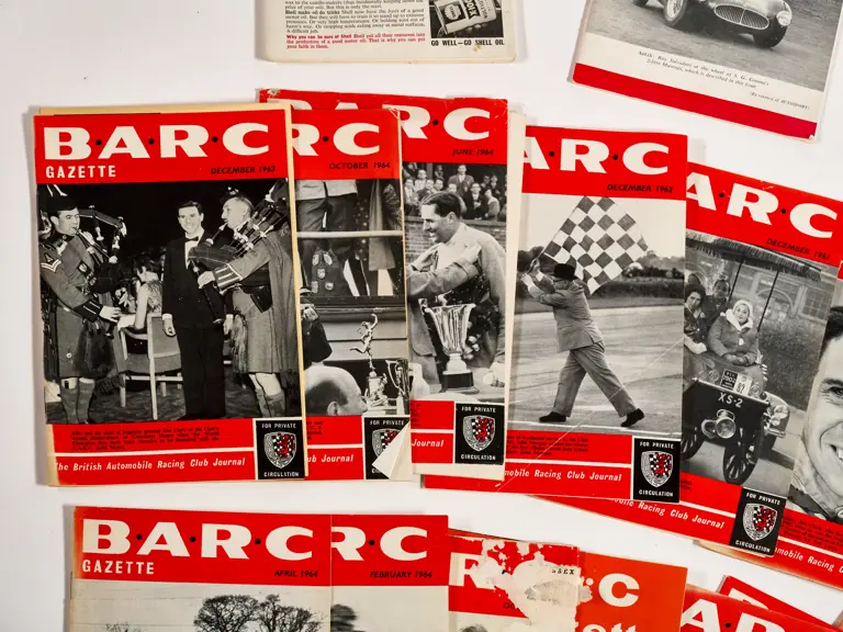 This lot includes BARC gazettes, 1954 SCCA Members' List, 1957 SCCA Competition Rules and miscellenious club magazines.