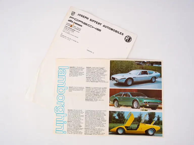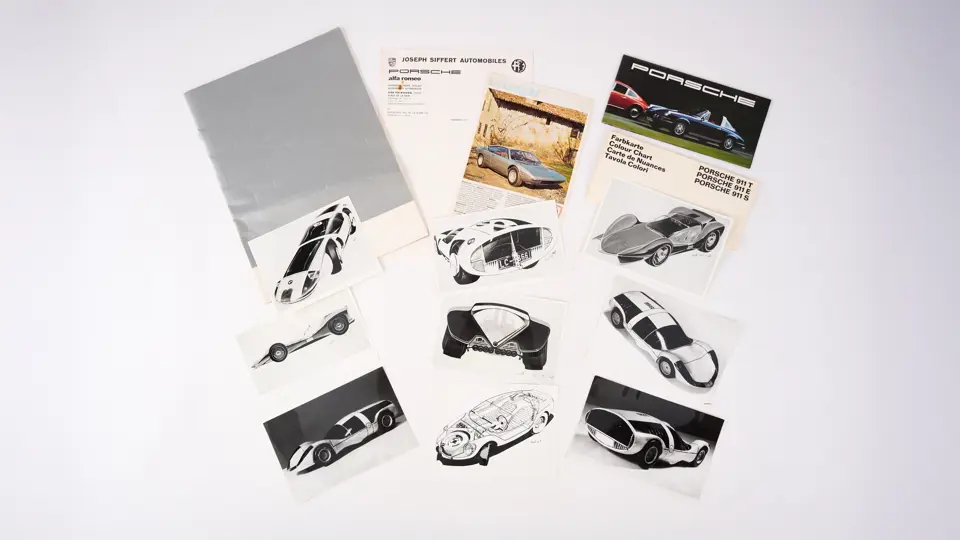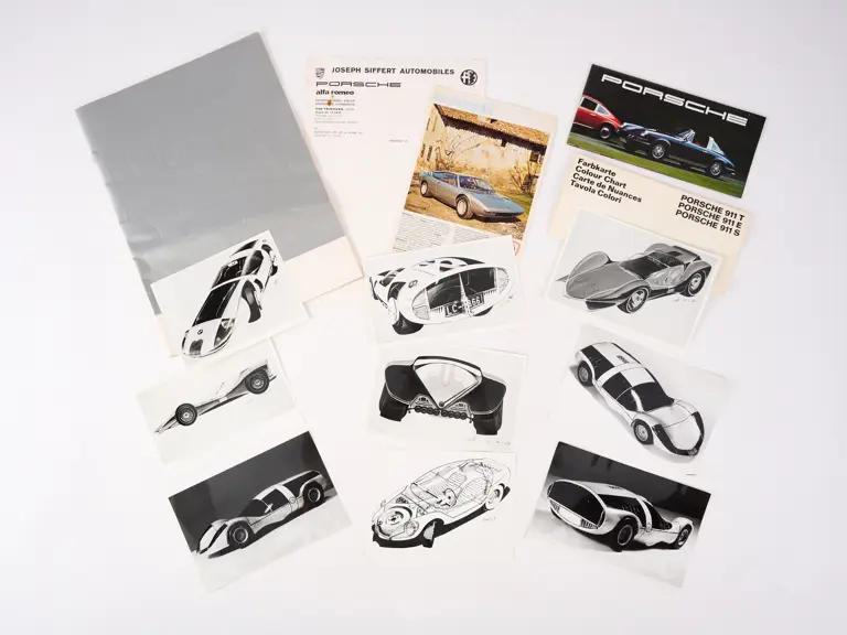 Includes period brochures, with the Porsche brochure originating from Jo Siffert's Swiss dealership. Also included is a lot of 1966 BMW concept car photographs.