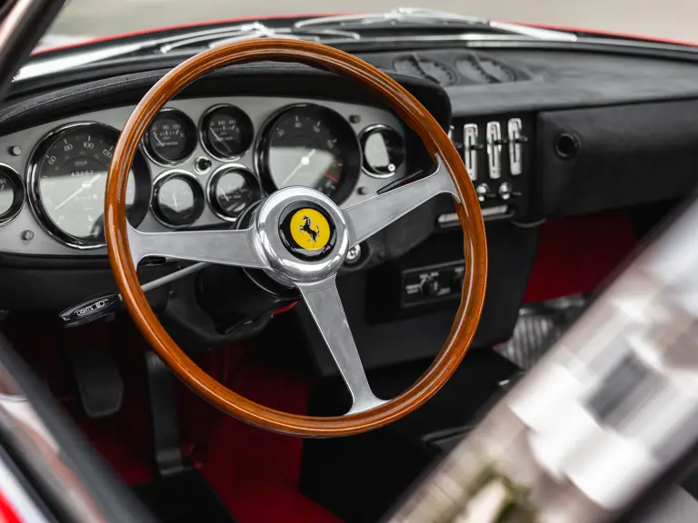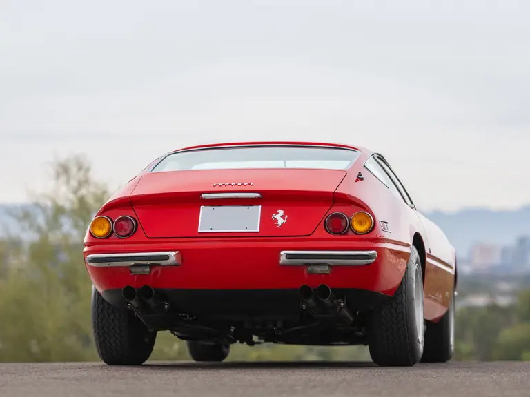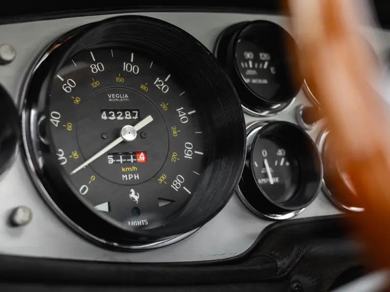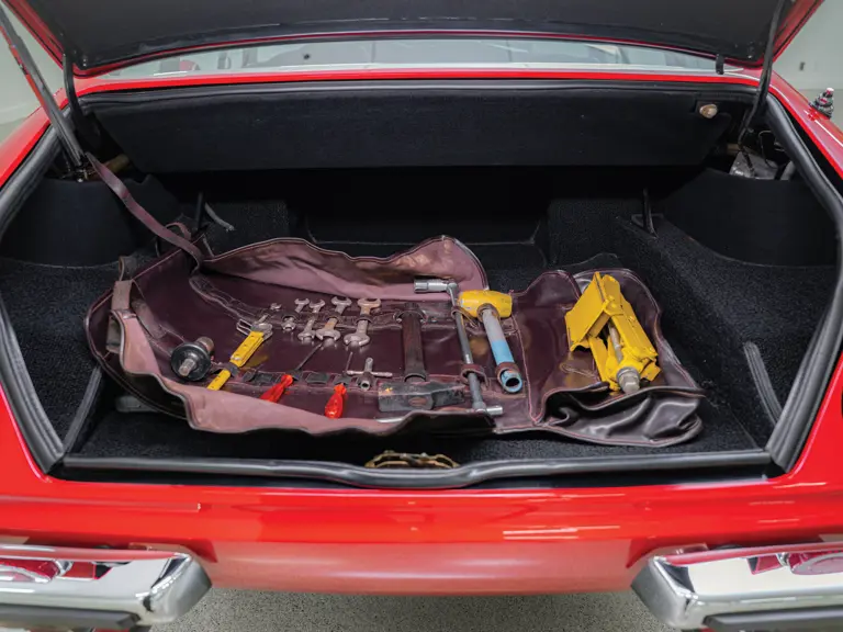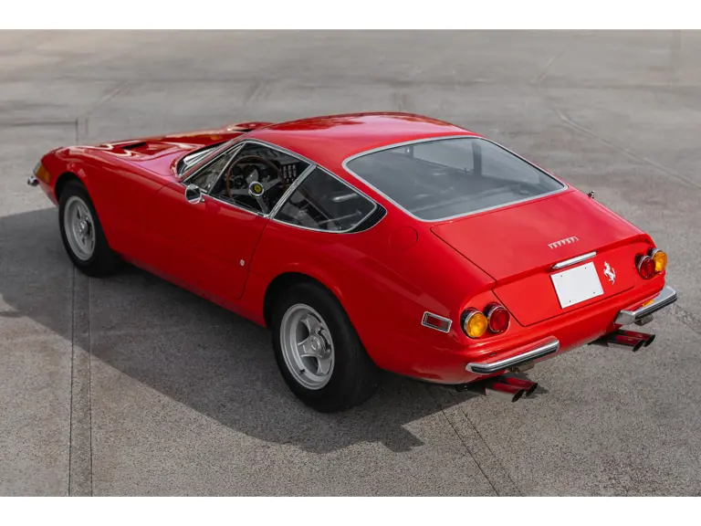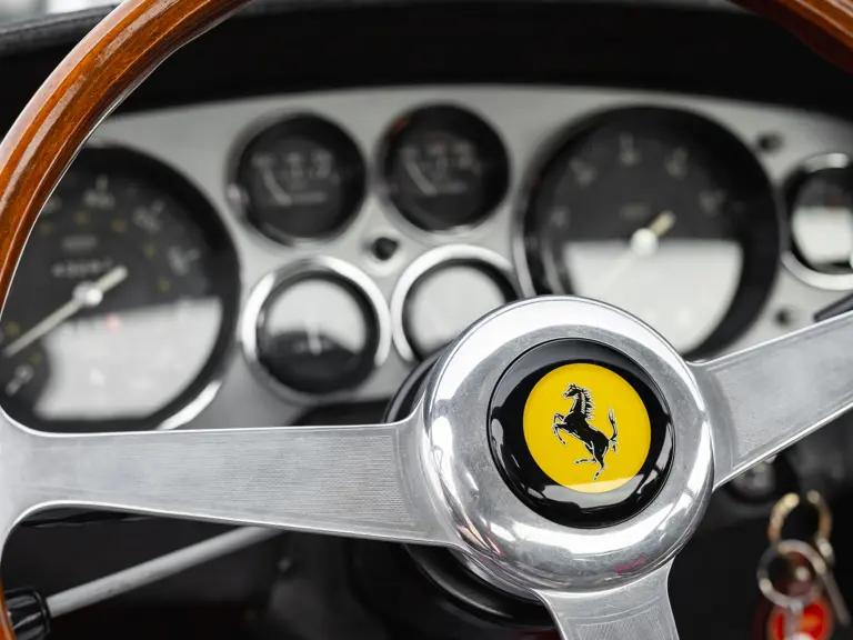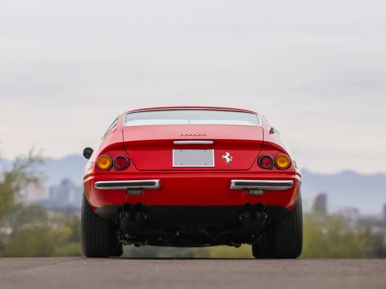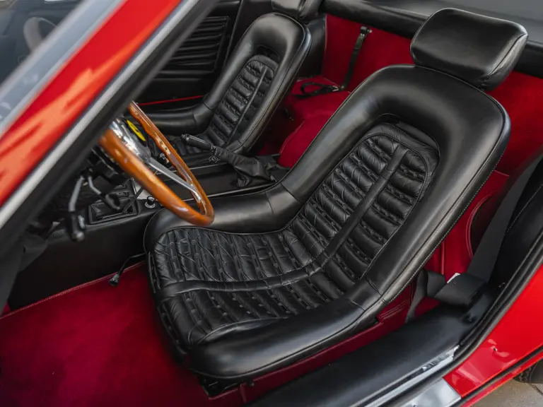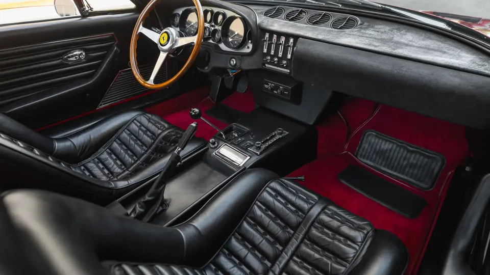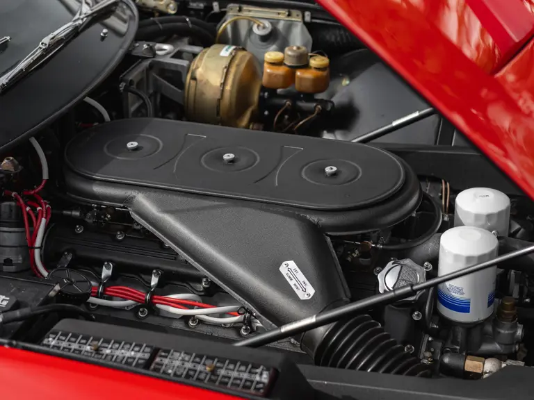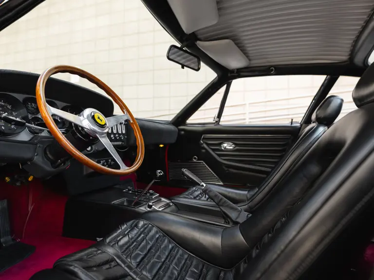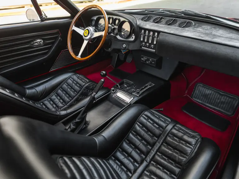 While not much is known about the Daytona’s further ownership history, it was acquired by the current owner last year, having been acquired from an enthusiast who owned the car since 2002. Presently finished in Rosso with a black leather interior, the car has recently been serviced by the consignor’s own in-house mechanics and received a fuel system refresh, new spark plugs, and an oil change. All parts for this work were purchased from an official Ferrari dealership.