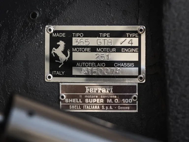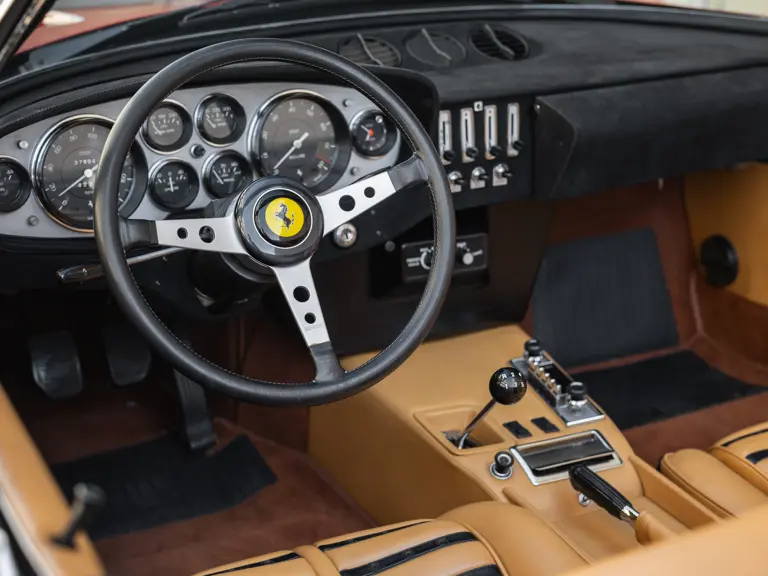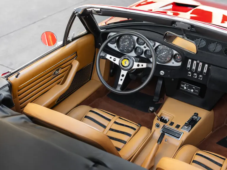 Toney was a longtime member of the Ferrari Club of America and a regular attendee of club events until his passing in 2002. Despite this, Toney only showed his Daytona Spider twice; first at the Ferrari Club of America Annual Meet at Monterey in 1994, and again at the Rodeo Drive Concours d’Elegance in 1997. Toney passed away in 2002 but the car would be kept by his family until 2017, at which point it was consigned to RM Sotheby’s Monterey auction. At that point, the car was sold to a well-known collector based in the United Kingdom. That same year, the car was granted Ferrari Classiche certification, confirming that the car retains its original chassis, engine, and bodywork, and is fitted with a replacement gearbox of the correct type. In 2018, the car received a full service at Joe Macari in London which also included adding a number of upgrades for overall drivability, including an upgraded aluminum radiator, suspension, sports exhaust, starter motor, and alternator, along with new Avon tires. This work totaled £48,019.68 and the invoices for this work can be found in the car’s history file. Later, the car would receive a professional repaint from Charles Pozzi, the official Ferrari distributor in Paris, France. Remaining in Europe until 2024, upon its purchase by the consignor, the car was repatriated to the United States shortly thereafter.