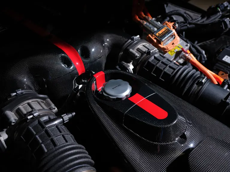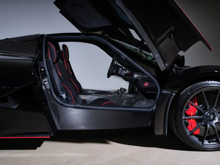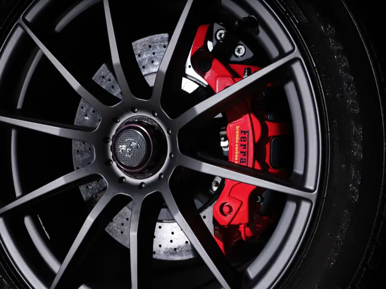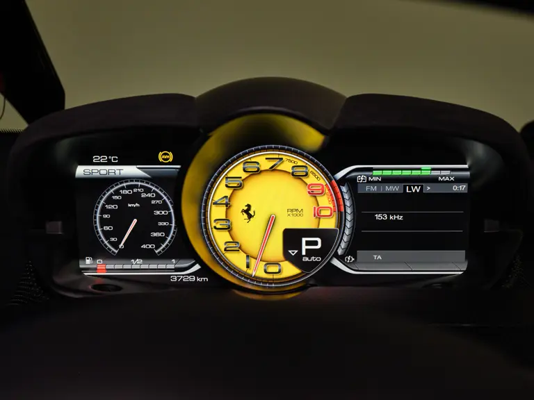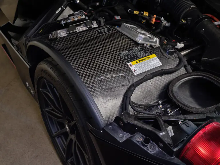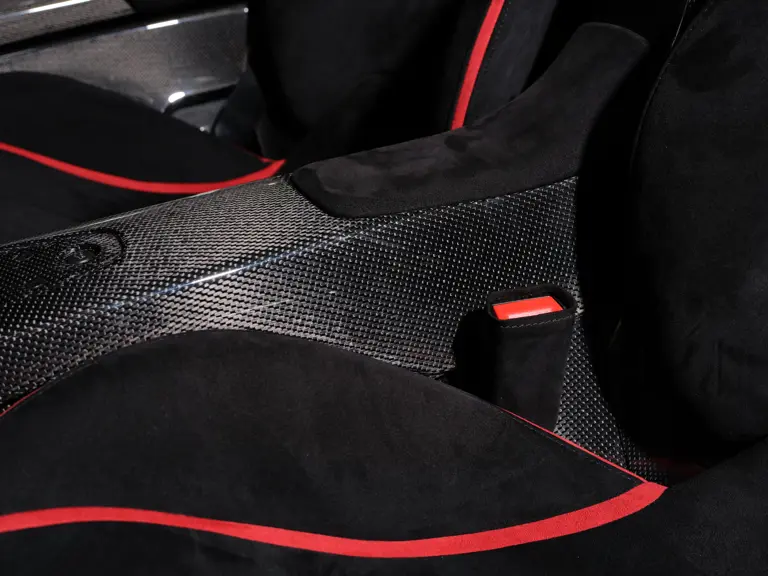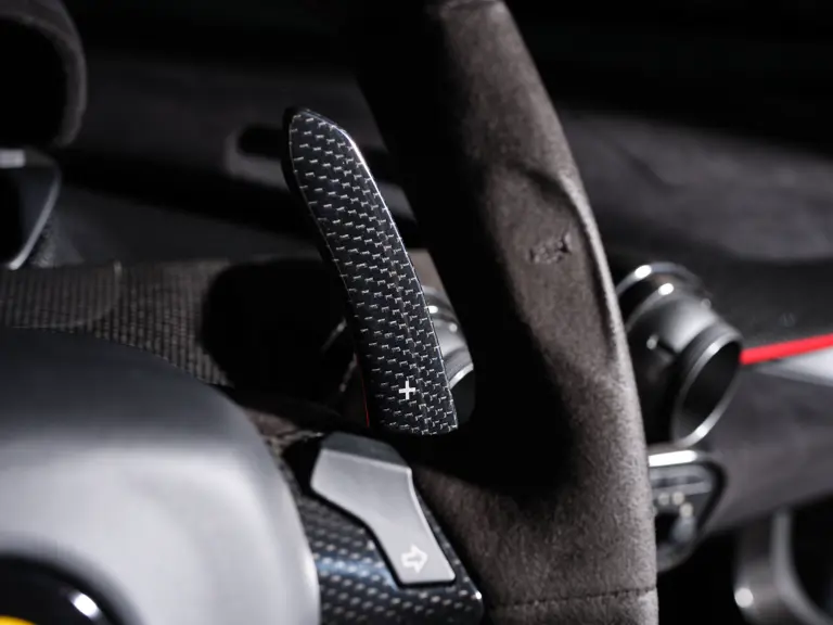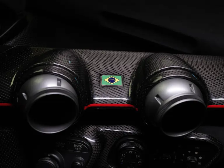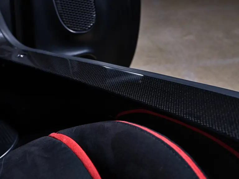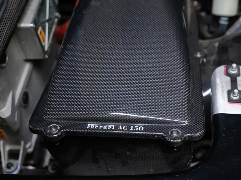 Inside, the black and red theme continues, with Rosso Corsa cavallinos stitched in the headrests of the medium-sized seats with Rosso Corsa piping, alongside a Rosso Corsa painted stripe on the carbon fibre dashboard. Further options included the suspension lifter and track camera kits. As a special touch, the car’s limited edition plaque between the seats was further embossed with the text “Grazie Felipe” and signed by then President and CEO of Ferrari, Luca di Montezemolo.