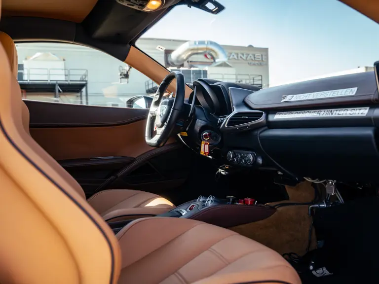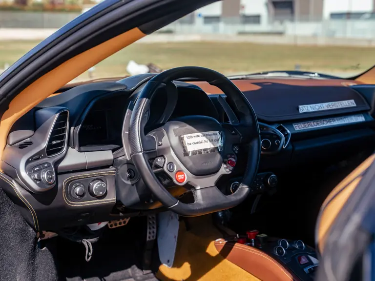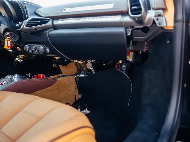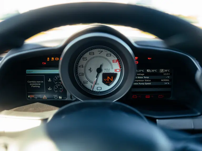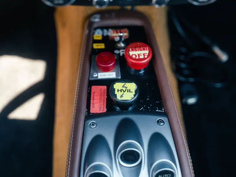 Offered for sale alongside a number of exterior panels that it wore during factory testing, it’s important to note that the car is accompanied by a factory-issued “Yellow Binder” Attestato per vetture Serie speciale. This yellow binder outlines the car’s usage by Ferrari. First built up by Ferrari between February and April of 2012, from May 2012 to March 2013 the car was used for developing the brake systems. This testing was undertaken entirely at Ferrari’s own Fiorano circuit from June to September of 2013. The binder further outlines that the car was used for development of the suspension, brakes, steering, and tires for the LaFerrari as well as being the LaFerrari prototype first fitted with the LaFerrari-specific Electronic Stability Program (ESP) system.