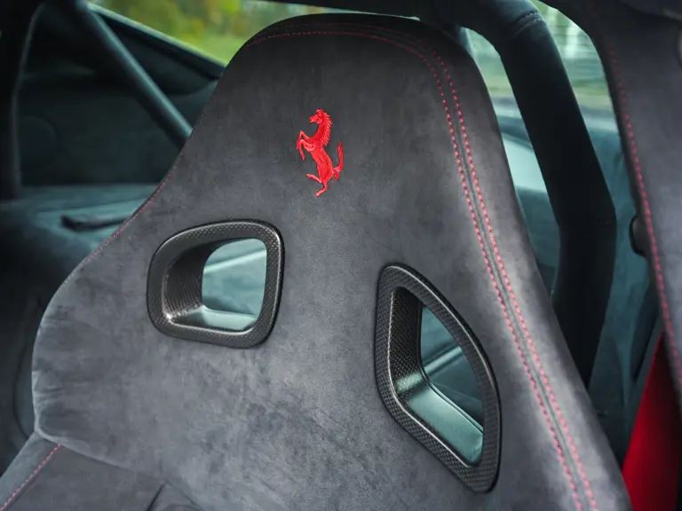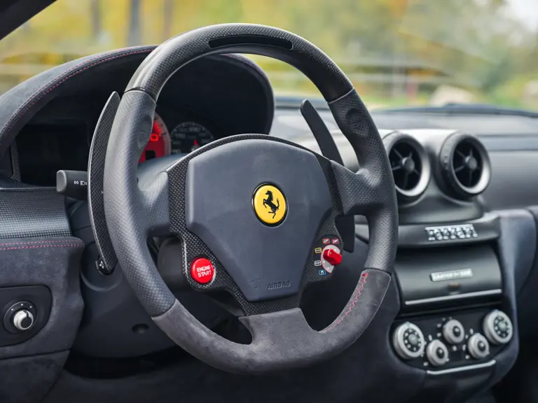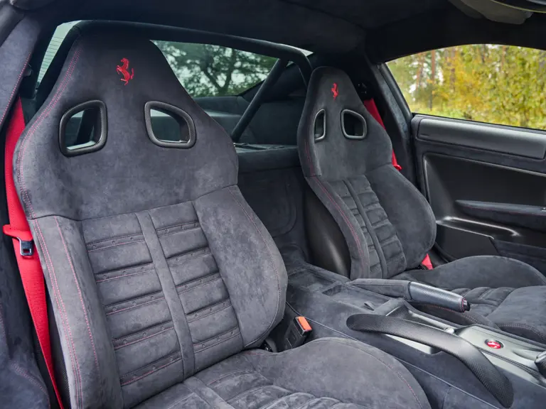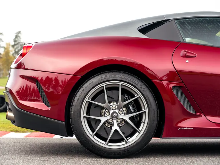 The 599 GTO was limited to 599 examples worldwide. It is therefore rarer than the F12tdf with 799 built and rarer than the 812 Competizione coupe at 999 constructed. Adding to this example’s allure, Ferrari’s current Tailor Made program was not available for the 599 GTO and the only route to a fully bespoke configuration was via the Atelier program. Very few GTOs were processed at this level. Among those few, surely examples with lower mileage than this example, 1,552 km at the time of cataloguing, are exceptionally scarce. In today’s market, with high levels of factory customization being of utmost importance, few 599 GTOs will be as compelling to collectors as this example, especially when taking its low mileage into consideration. It still rides on its original factory-supplied Michelin Pilot Super Sport tires, a detail that underlines the minimal use.