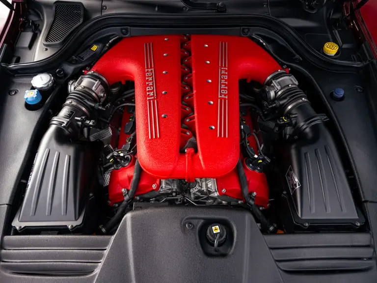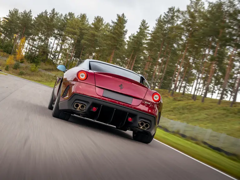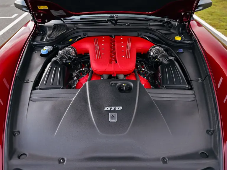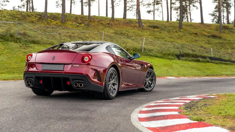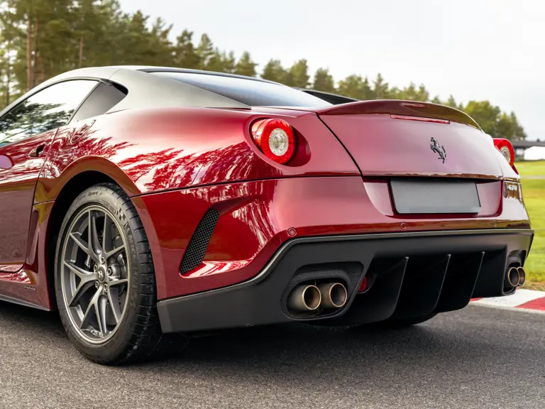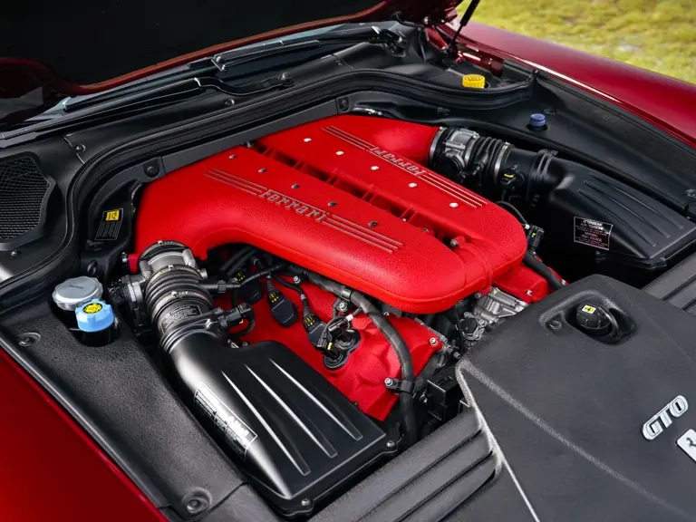 Mechanically, the 599 GTO stands apart from the 599 GTB. The V-12 engine shares its F140 architecture with the Enzo yet benefits from the lessons of the XX program. Breathing was reworked, internal losses reduced, calibration refined, and maximum output quoted at 670 horsepower. The exhaust side is central to the car’s character. The 599 GTO uses 6 into 1 manifolds derived from the 599XX, flowing into a freer system that gives an unmistakable noise. Many consider it amongst the best-sounding modern Ferraris. The gearbox was tuned for shifts measured in around sixty milliseconds, a response that makes the car feel alive in the driver’s hands. The balance of aerodynamic revision and weight reduction completes the transformation so that the 599 GTO feels razor sharp while retaining a grand touring breadth.