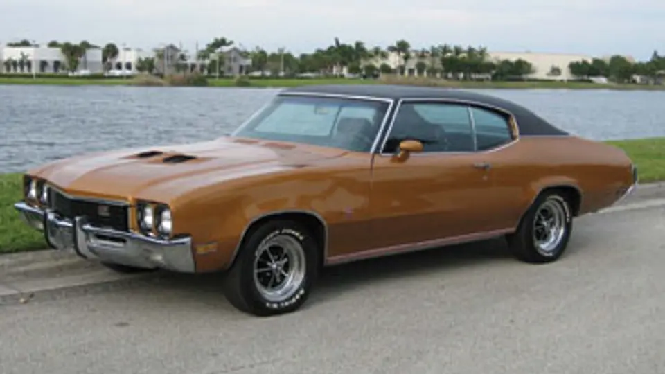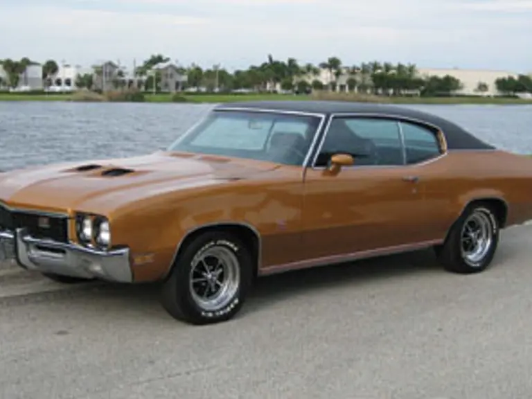 A genuine Gran Sport 350 with a four-barrel carburetor making 190-hp; this GS has optional factory air conditioning, bucket seats, console-mounted automatic transmission and all of its original sheetmetal. Inside, a sport steering wheel; power steering, brakes and windows greet the driver, and its exterior features a vinyl roof, dual sport mirrors with driver remote and bumper guards at the front and rear. The twin hood scoops are fully-functional, and Buickās chromed, styled-steel wheels complete this GS, finished in Flame Orange with a black interior.