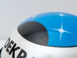 A replica of the Arai helmet Michael Schumacher worn in the 1991 Formula 1 World Championship when he drove for Team 7UP Jordan F1. This helmet is accompanied by a scale minature. The "Arai" lettering was covered up due to conflicting contracts between helmet suppliers that year.