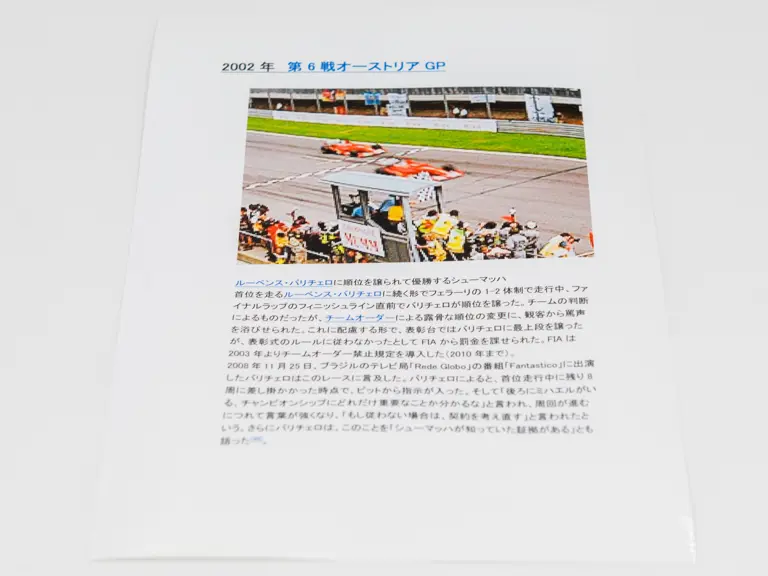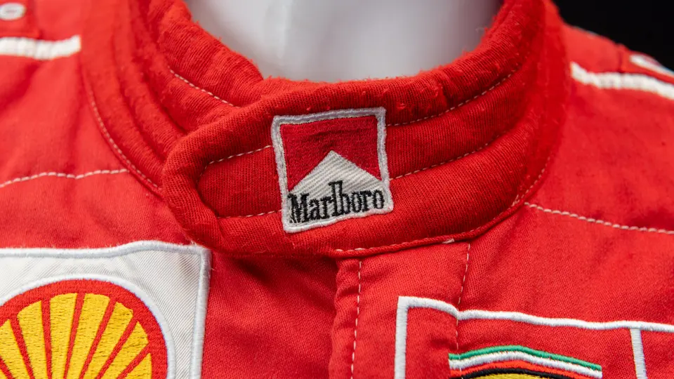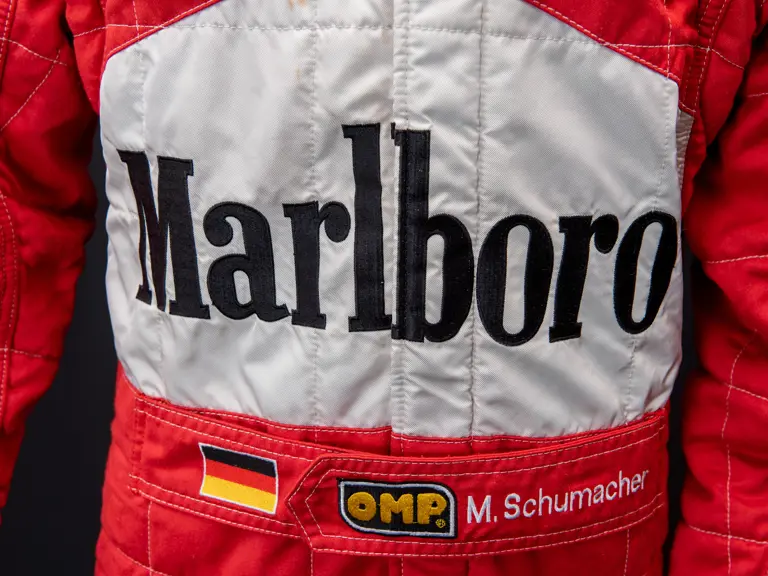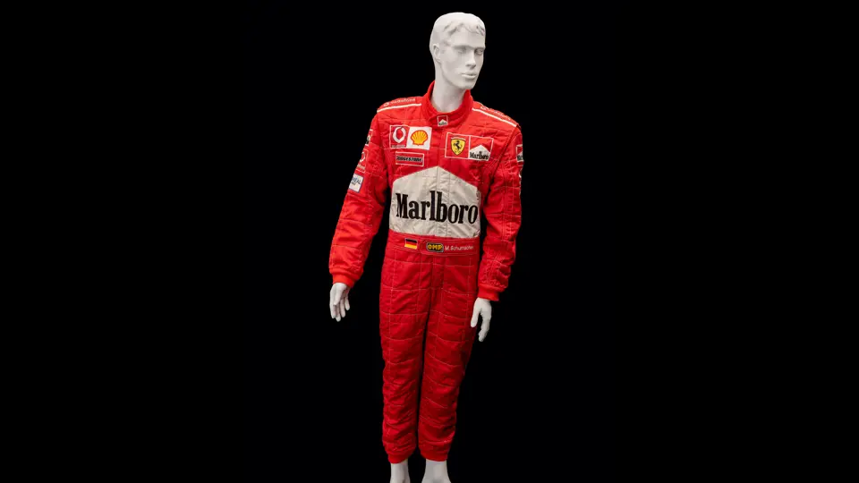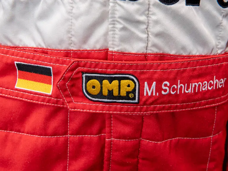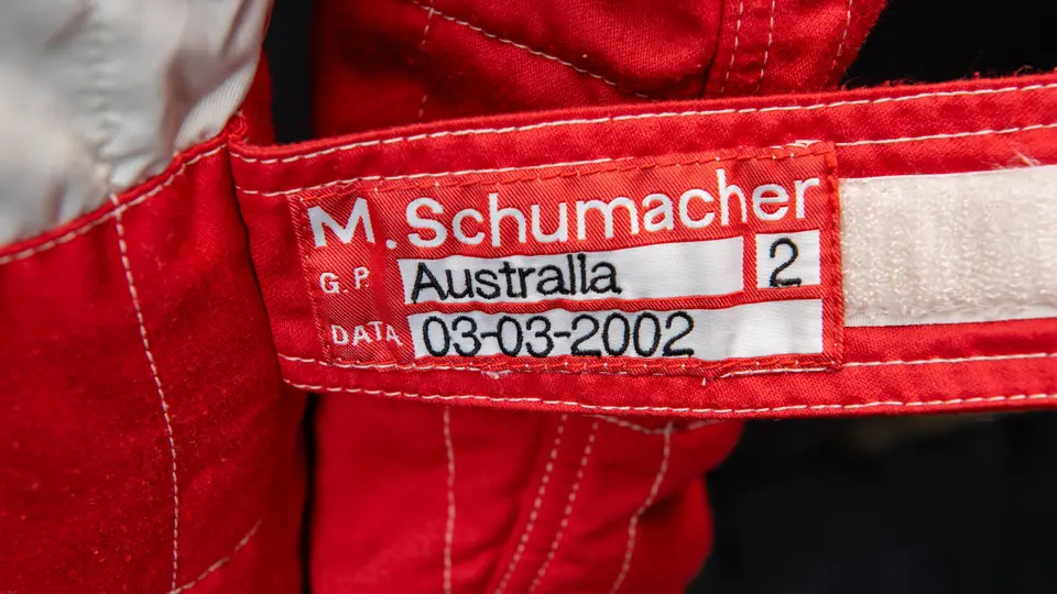 Worn by Michael Schumacher on the 3 March 2002, this Scuderia Ferrari OMP race suit was used during the Australian Grand Prix. He qualified 2nd and finished 1st overall. Schumacher was Formula 1 Champion in 2002.