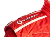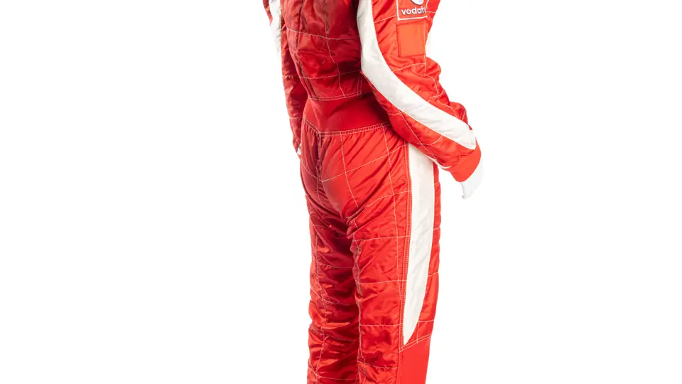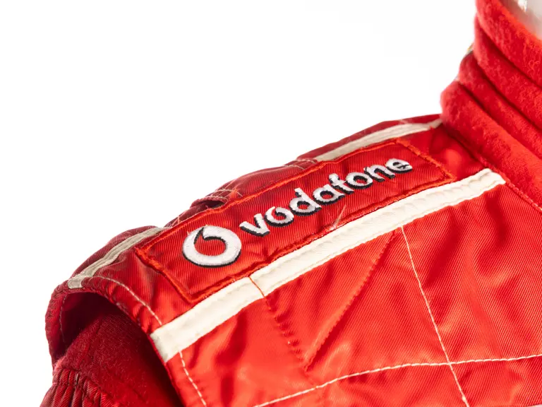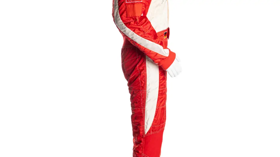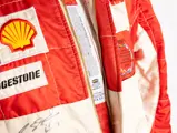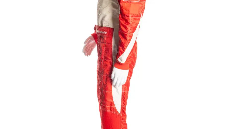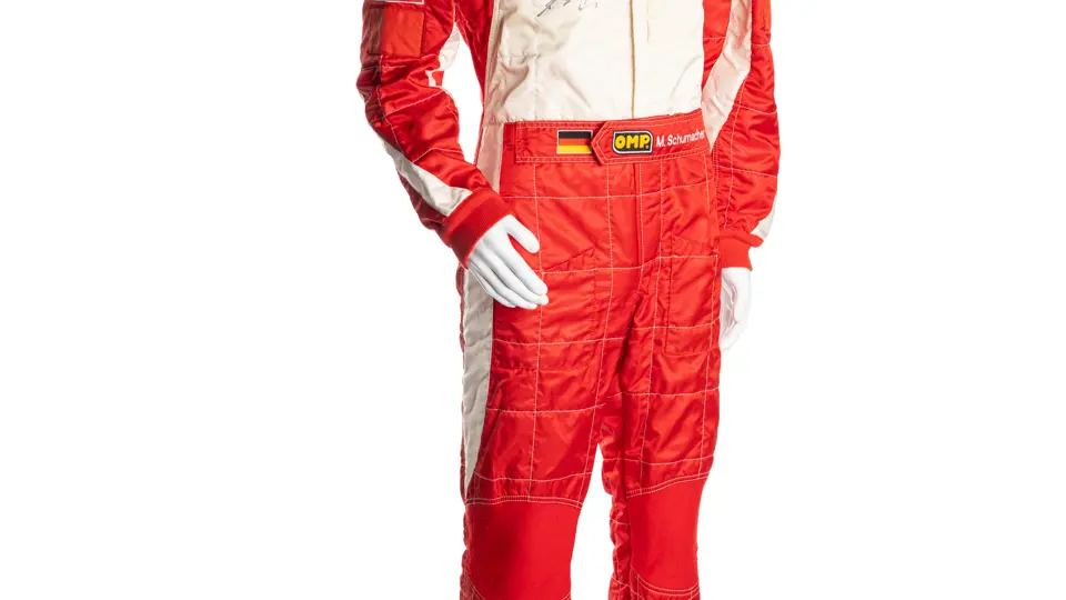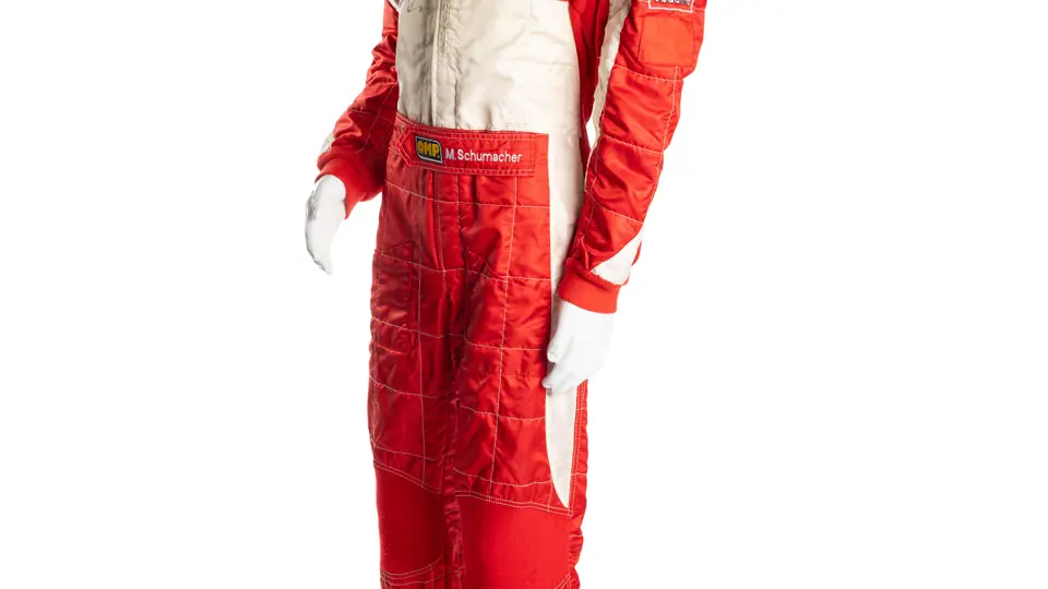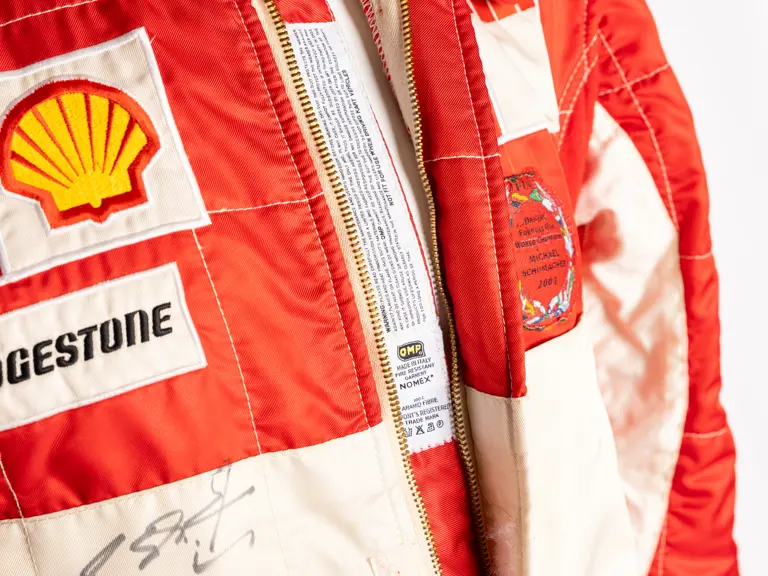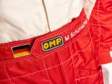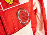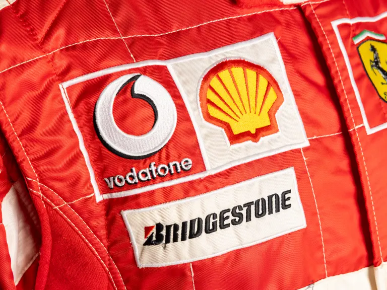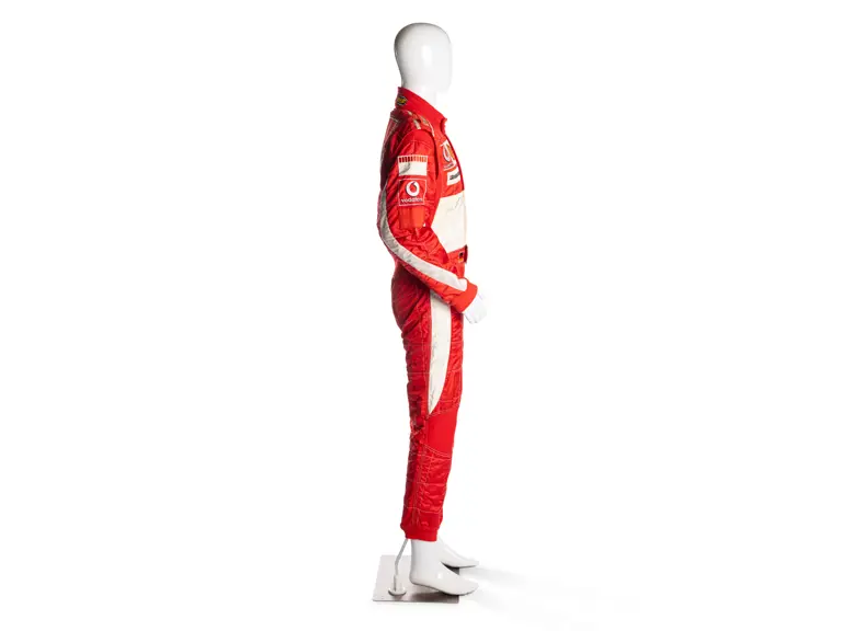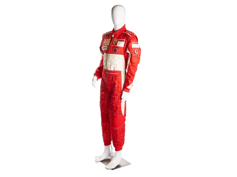 This Scuderia Ferrari OMP race suit was used during the infamous 2005 United States Grand Prix. Schumacher qualified 5th and finished 1st overall, setting the fastest lap in the race. This was Schumacher's only winning race in 2005, where he came 3rd in the Driver's Championship.