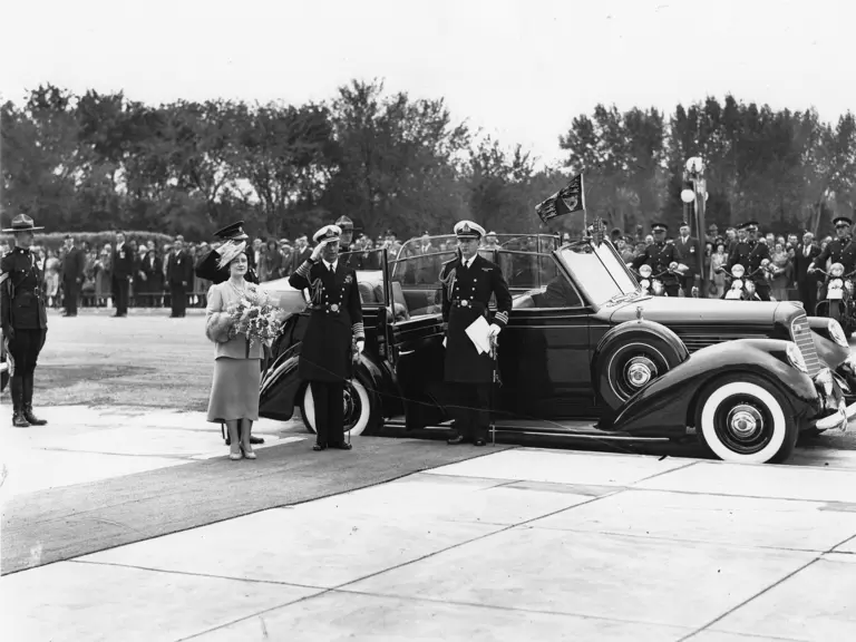 For their coast-to-coast itinerary, a royal motorcade was called for, and thus four cars were constructed especially for the event. There were two special McLaughlin Buicks built by General Motors, Canada, as well as a Chrysler from Chrysler Corporation of Canada. Ford Motor Company provided a custom-built Lincoln Model K convertible sedan, ordered through Ford of Canada and built in Dearborn. All four cars were built to exacting specifications. They were to be painted Royal Maroon, matching the fleet at the Royal Mews in Britain. All had shatterproof glass, puncture-proof tires, a raised seating area for the monarchs, the Royal Standard above the windshield, a blue light for night-time illumination, a Royal Crest to be placed over the light in daytime and folding seats facing backwards, since it is forbidden to sit with one’s back to the sovereign.