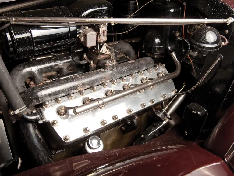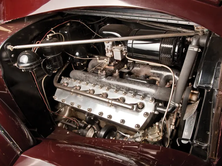 150 bhp, 414 cu. in. L-head V-12 engine, three-speed manual transmission, solid front axle and live rear axle with semi-elliptic leaf springs, four-wheel power-assisted mechanical drum brakes. Wheelbase: 145"