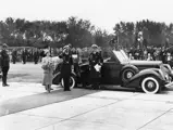 The King and Queen arrived in Quebec City on May 17th, proceeding to Montreal and Ottawa, the capital, where the Queen laid the cornerstone of the Supreme Court building. The royal couple also visited Parliament. They inaugurated the Queen Elizabeth Way, Canada’s first superhighway, which links Buffalo and Toronto, and dedicated the nearly completed Rainbow Bridge to the USA. They went on to the West Coast, both passengers and cars traveling by rail between cities, and made a quick visit to the United States, including Washington, D.C., New York City and Poughkeepsie, before boarding the RMS Empress of Britain at Halifax for their return voyage. The royal party, no matter what city or car, was always driven by the Governor General’s personal chauffeur, T.S. Southgate.
