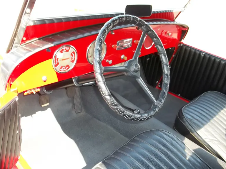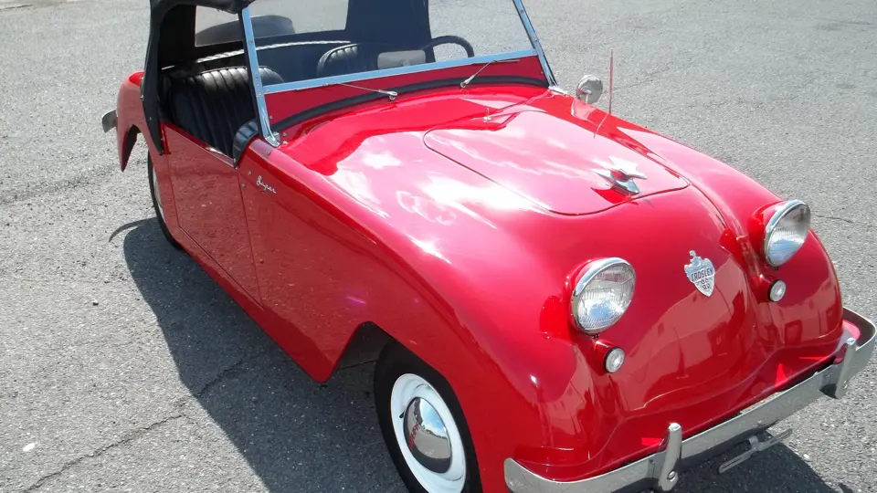 In 1949, the Hot Shot roadster debuted. America’s first postwar sports car, it sold for $900, less than half the cost of Chevrolet’s base model. It was highly successful in competition, winning the Index of Performance and taking overall victory at the first Sebring 6-hour race in 1950. Other stellar results included victory in the 1951 Swiss Grand Prix and second in the 1951 Tokyo Grand Prix.