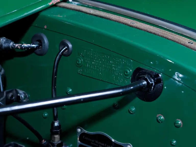 Nefarious connection aside, this is among the earliest surviving bulletproof vehicles, fitted with glass almost an inch thick and lined with nearly 3,000 pounds of armor plating. Heavy spring lifts permitted the side windows to operate, while the rear window was rigged to drop quickly, allowing occupants to fire upon would-be pursuers. The modified windows were also equipped such that the glass could be raised an extra inch or so, revealing a circular cutout large enough to accommodate the muzzle of a machine gun. Mr. Capstran stated that when the Cadillac arrived at his father’s shop in the summer of 1928, the doors and windows had been bulletproofed elsewhere and that they only worked on the rear of the body. Photographs taken in 1933 show the car equipped with a triangular tow bar affixed above the rear bumper, which Capstran stated was not yet installed when the car was in his father’s shop.