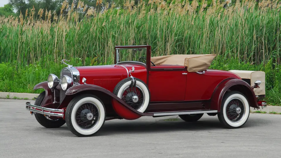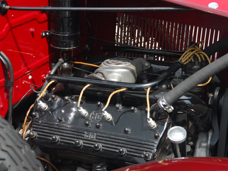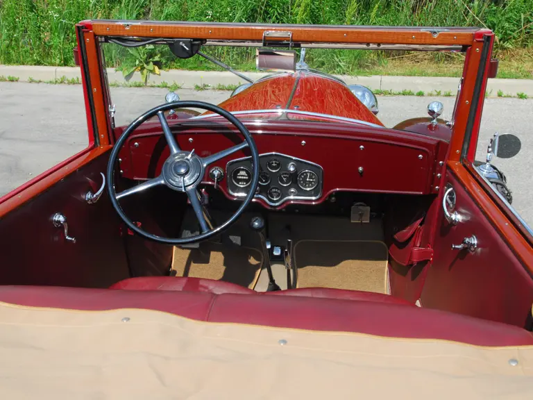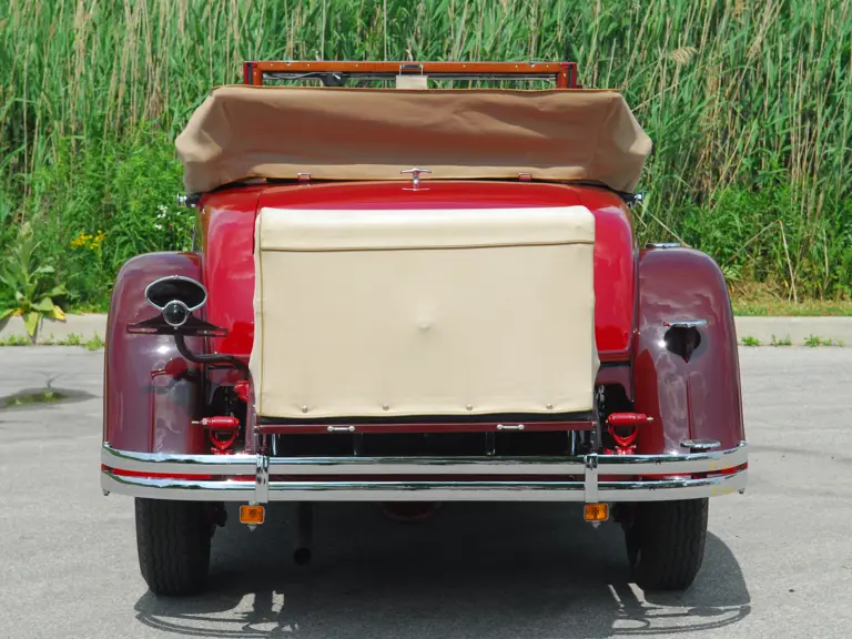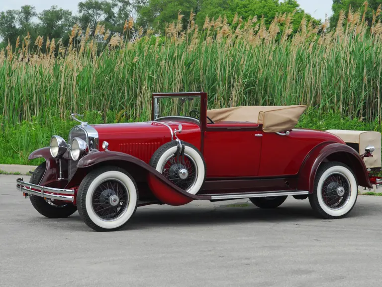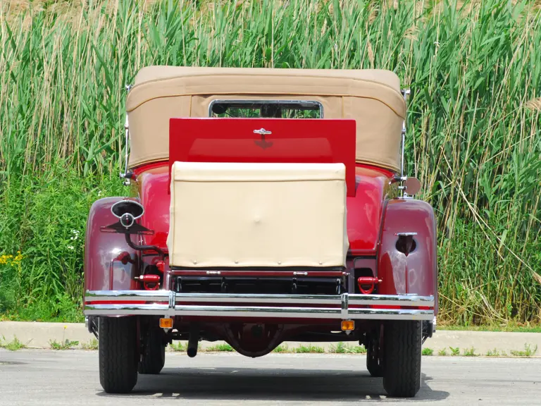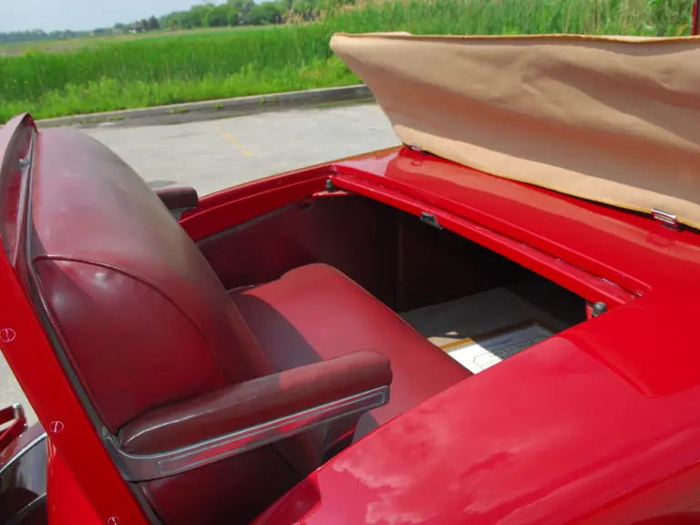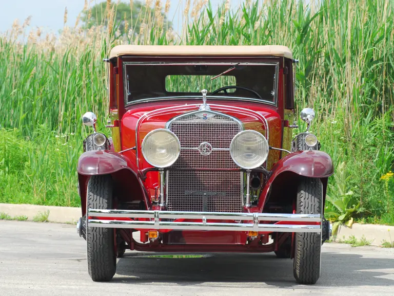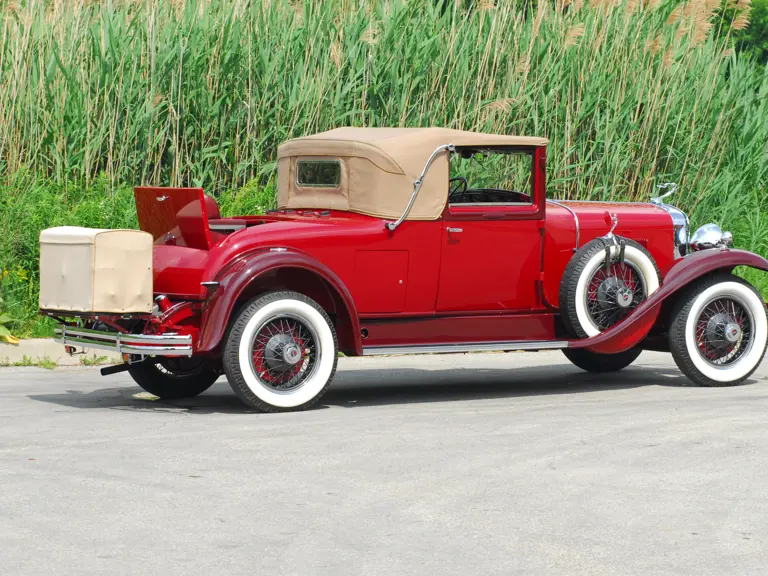 As the first project for a major manufacturer by design legend Harley Earl, the LaSalle is considered the first American car to have been styled from concept to production. This example is Fisher Style 8580, which denotes it as a 2/4 Passenger Convertible Coupe with rumble seat. Finished in two tones of striking red lacquer with red leather upholstery and a tan top, this handsome LaSalle carries a known history from new. Its first owner was reportedly Percy Cowan, of Bowmanville, Ontario, a “rum runner” who delivered liquor to New York during the Prohibition era and chose the LaSalle for its speed.