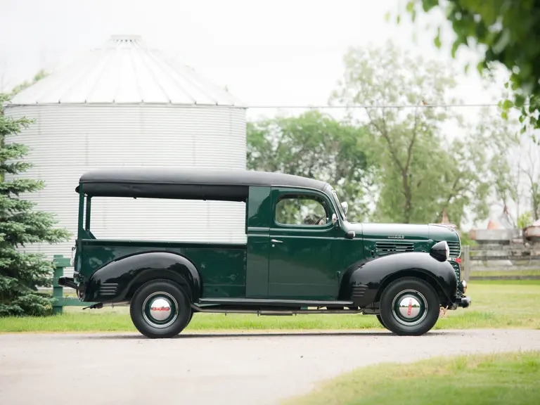 Horace and John Dodge had supplied engines to Henry Ford. In 1914, they produced their first automobile: a tough, no-nonsense four-cylinder car with few amenities. Dodge cars proved their mettle in World War I and in General Pershing’s Mexican excursion in 1916, putting the U.S. Army firmly into motorized warfare. These experiences led naturally to trucks, starting in 1918. A closed panel van was called the Business Car, but more popular was the Commercial Car, a screen-sided model with a full roof and the first incarnation of the canopy express style. The Commercial Car found instant favor with farmers, merchants, and postal carriers. It continued in production until 1941, having been joined by an open-side canopy model in 1927. The last in the style of this truck was built in 1947.