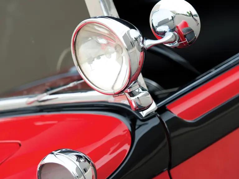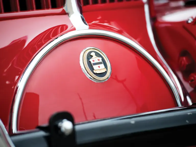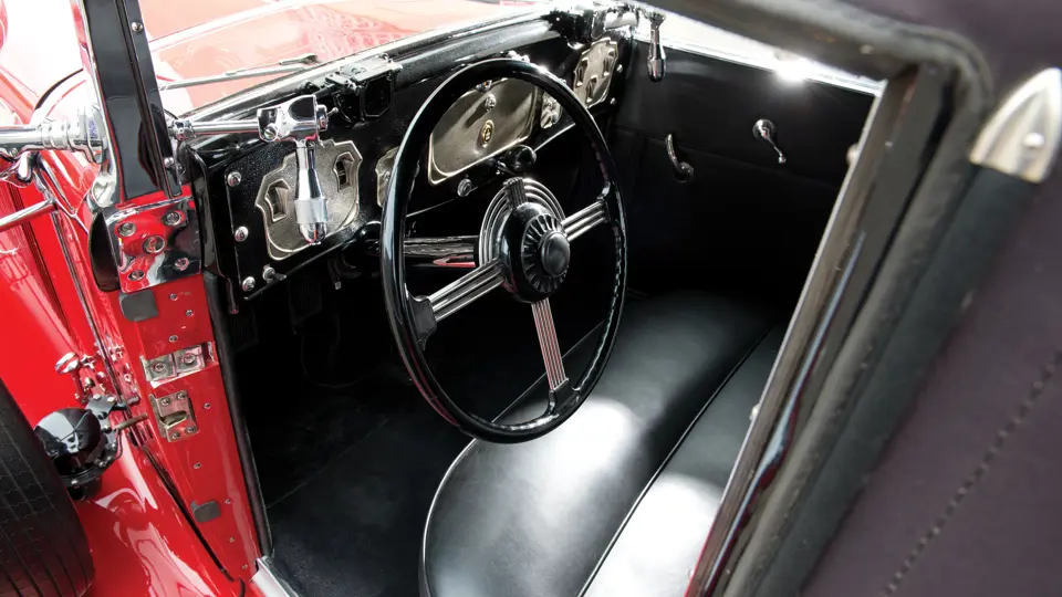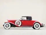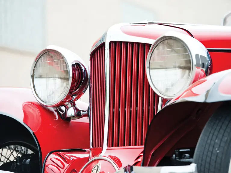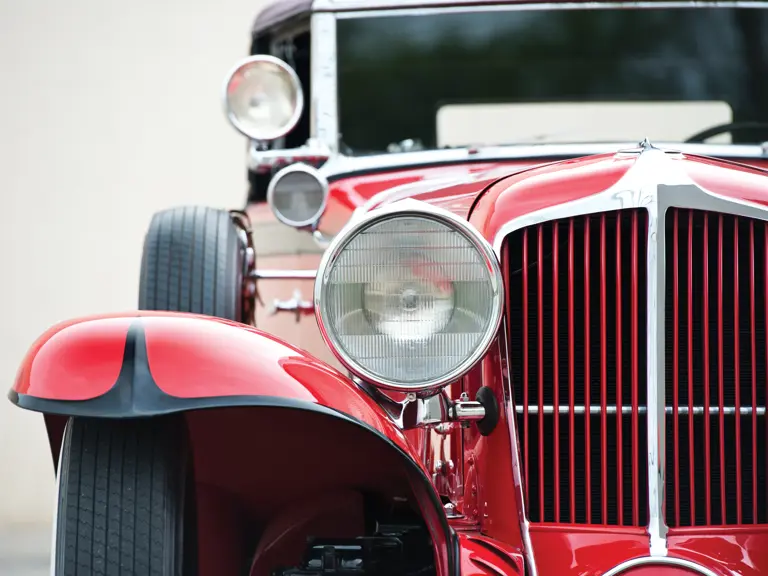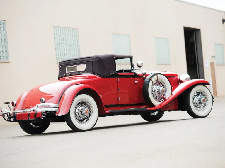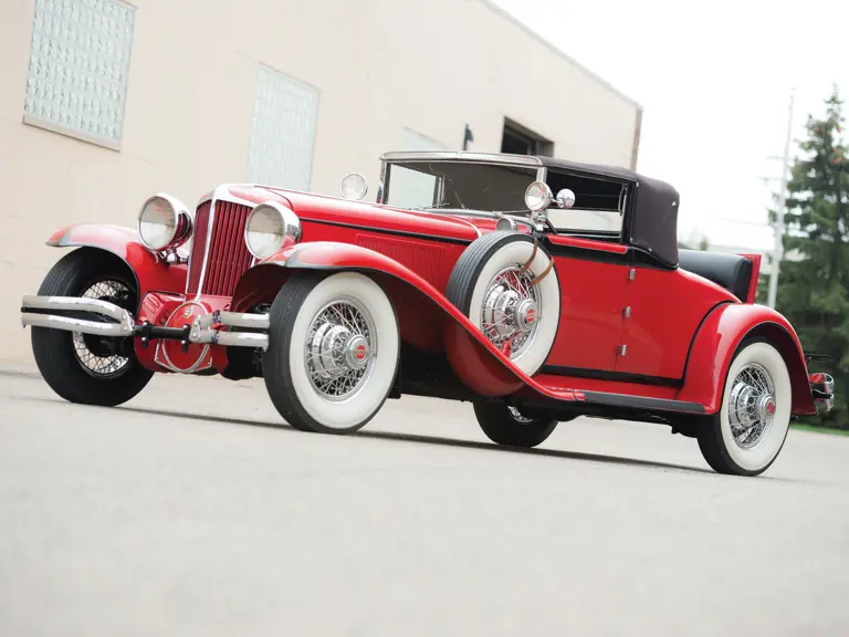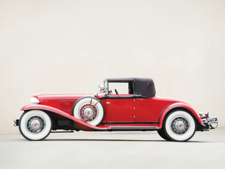 The Cabriolet offered here was built in July 1930, and it was a late 1930 model that remained unsold as the industry entered 1931; accordingly, the chassis was renumbered by the factory from 2928480 to the present 2929040, explaining the presence of both numbers on the chassis. The car’s history since includes long-term ownership by Louisiana enthusiasts Tom Landers and Bobbie Crump, prior to joining the present owner’s collection, which includes some of the finest Auburn Automobile Company products in existence. The Cord was restored in the late 1990s, and it was issued Auburn Cord Duesenberg Club certification number CL-077, certifying it as a Category One car—an important blessing of originality and authenticity of all major components, as bestowed by those who know these cars best. Showing well in its red and black, with a black leather interior and black canvas top, it is equipped with dual side-mounted spares, chrome wire wheels, driving lights, and dual cowl lights, and it would continue to present well for show with minor freshening; recent work has included the installation of correct cowl light and headlamp lenses and correct interior door handles. In addition, this would be an outstanding touring car suitable for ACD Club events and CCCA CARavans, in which many L-29s have covered thousands of enjoyable miles.