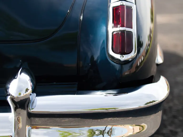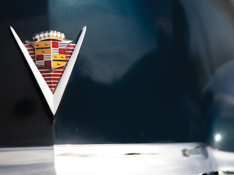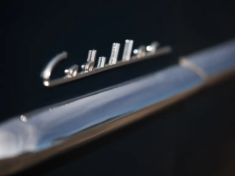 As a well-maintained and properly cared for older restoration, the car remains in extremely good condition, with its Antoinette Blue paint still deep and shining and the interior without wear, aside from gentle creasing of the upholstery. In general, only minor wear is found throughout. It is well-equipped with full “sombrero” wheel covers, windshield-mounted Cadillac spotlights, a back-up lamp, an AM radio, power windows, a power top, and rear fender skirts.