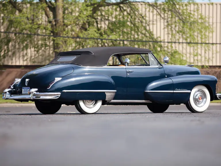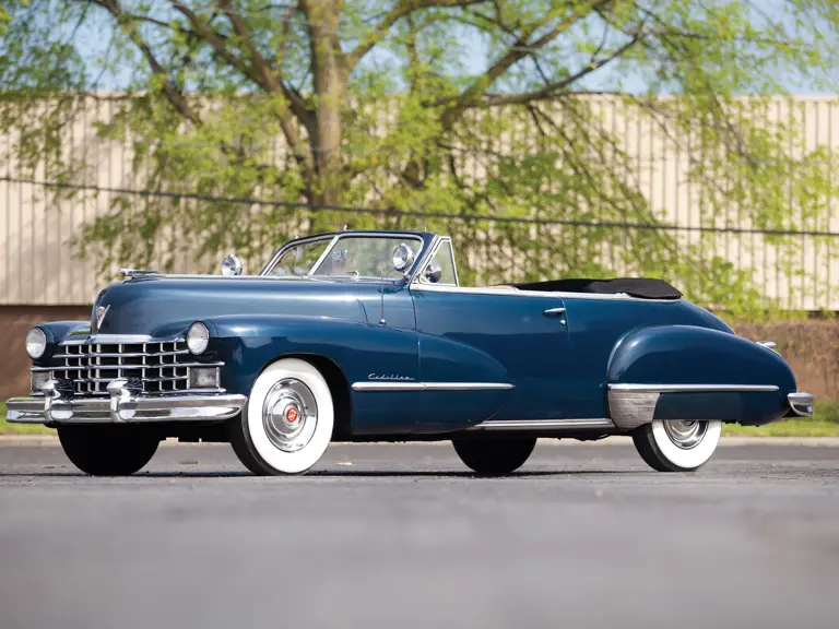 The first post-war Cadillacs appeared in late 1945 and were virtually identical to those manufactured before the onset of war. Demand for all automobiles was so high that buyers were given very little choice as to what they wanted, and companies like Cadillac produced only single versions of a model, knowing that they could sell whatever they produced. As a result, nearly 90 percent of 1947 Cadillacs had the smart Hydra-Matic automatic transmission. While these new cars were priced about $200 higher than the 1946 model, they adopted subtle styling cues, such as the “sombrero” wheel covers and additional badges and scripts.