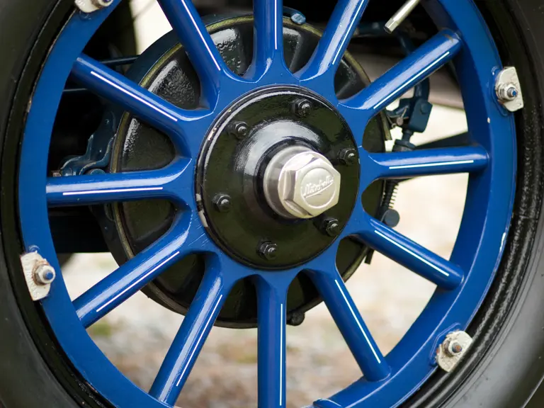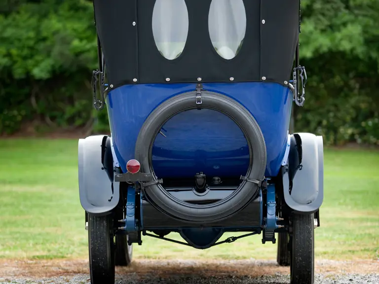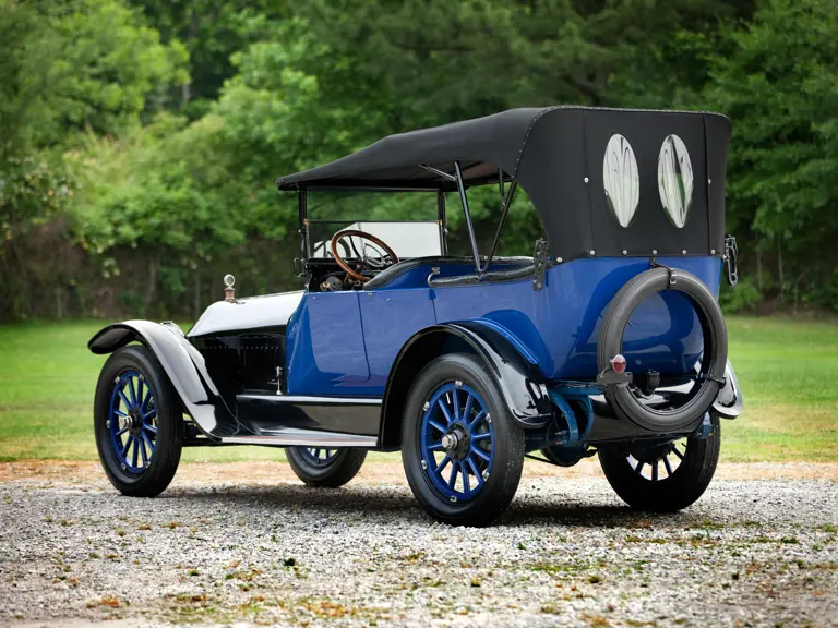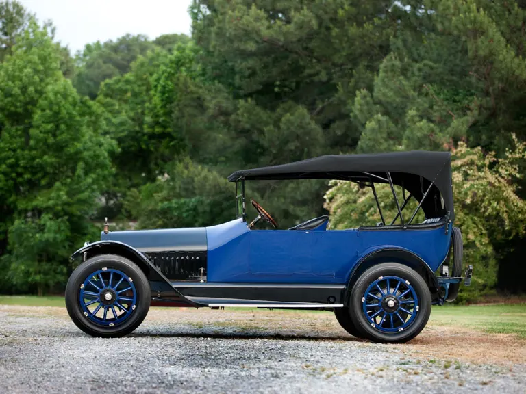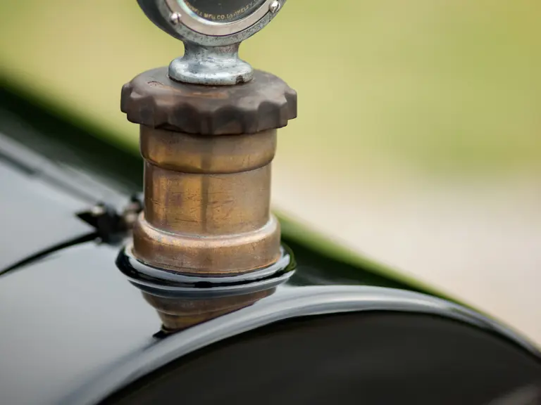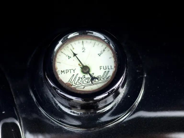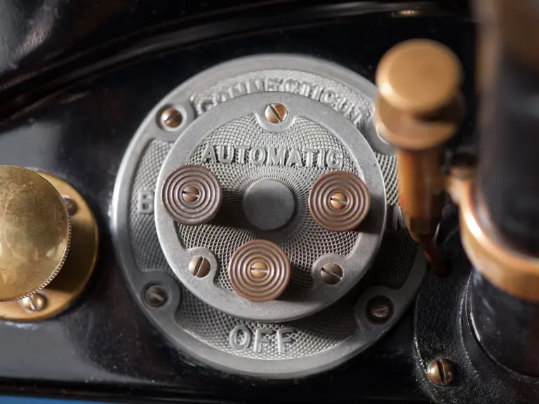 The 1915 Light Six offered here is one of two six-passenger touring models known to survive today. Typical of Mitchell quality, it features an engine of the company’s own design and construction: an F-head unit with a four-inch bore and a 5.5-inch stroke, utilizing a cooling system that combines a circulating water pump and a thermo siphoning system. An on-off sliding switch on the dashboard indicates when the engine is running and when the generator is charging. Built to handle the Midwestern roads typical in the Racine area, the car boasts a 4.49:1 rear axle ratio, allowing it to pull through difficult road conditions. Particularly thoughtful are the headlights, which flip around to illuminate the engine when performing emergency roadside repairs at night.