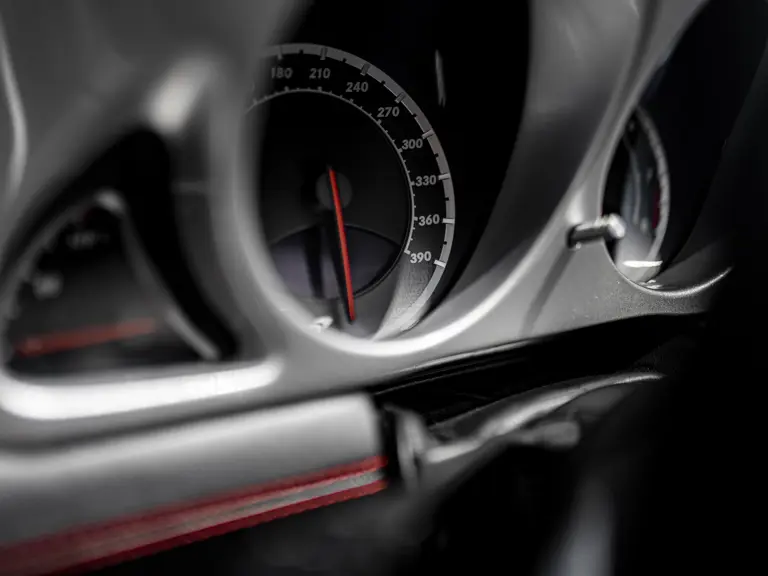 In the spirit of the 300 SLR, nearly all the creature comforts of the SLR Stirling Moss were sacrificed in the pursuit of performance, aesthetics, and extreme driver (and passenger) enjoyment. This even included the windscreen and roof, which not only adds to the visual drama, but also ramps up the intensity of the driving experience tenfold. Indeed, when Car magazine road-tested the car in 2009, they likened the experience of full-throttle acceleration to ‘standing on the wingtip of a 747’ and cited the 0–100 km/h time of 3.5 seconds and top speed of 354 km/h achievable only by those ‘whose neck muscles can bear it’. This level of performance is accomplished by utilising the same 641 bhp, 5.5-litre supercharged AMG V-8 that powers the SLR 722 Edition and pairing it with 200 kg of weight savings, achieved by adoption of the speedster style as well as the extensive use of carbon fibre for the bodywork and underside and new aerodynamic package.