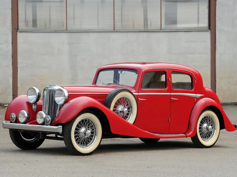 The mighty Jaguar had its start as a simple swallow – such are the ironic annals of motoring history. William Lyons and William Walmsley began manufacturing motorcycle sidecars in Blackpool in 1922. By 1927, their Swallow Coachbuilding Company was turning out attractive little bodies on Austin, Morris, Fiat and Standard chassis. After a move to Coventry, they came out with the first of several generations of “SS” cars (for Swallow Sidecar), the SS1 of 1931. Based on the 16-hp Standard, it had an underslung chassis, a long bonnet and streamlined coachwork. A companion model, the SS2, was based on the Standard 9. Saloons, dropheads and tourers were offered by 1934, and a particularly attractive “Airline” fastback coupé developed a devoted following.