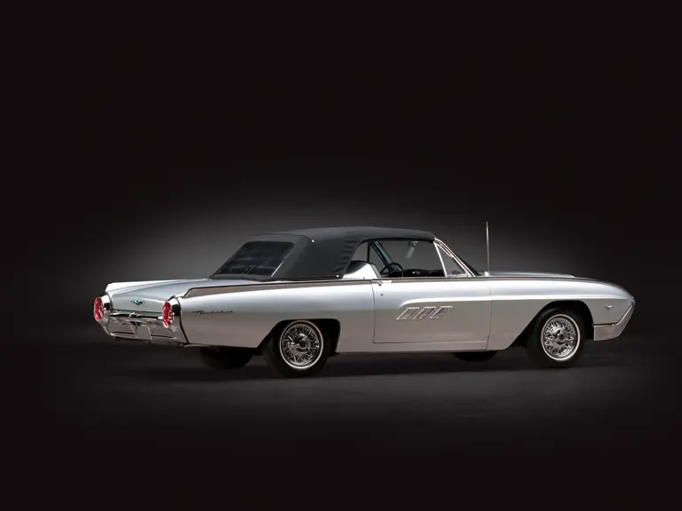 Ford’s sports roadster tonneau package was originally a dealer-installed option, but in 1962, it found its way onto new Thunderbird order forms and could be equipped as such from the factory, with the inclusion of a passenger-side grab bar, Kelsey-Hayes chrome wire wheels with knock-off center caps, and a rear fender skirt delete, to make for a sleek and sporty look. Despite their more aggressive looks, Thunderbird Sports Roadster production numbered 1,427 units in 1962, but just 455 in 1963, making them rare birds indeed.