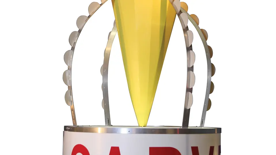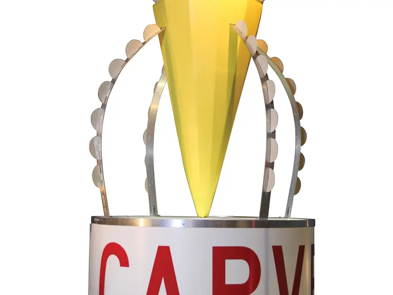 A very large and unique Carvel Ice Cream display piece in excellent, overall condition. It is quite large, measuring approximately 8 feet tall and 5 feet at its widest, and it features a very large base, which was added to the original cone section. This type of large cone display could usually be found mounted on the roofs of the "shack" style ice cream shops.