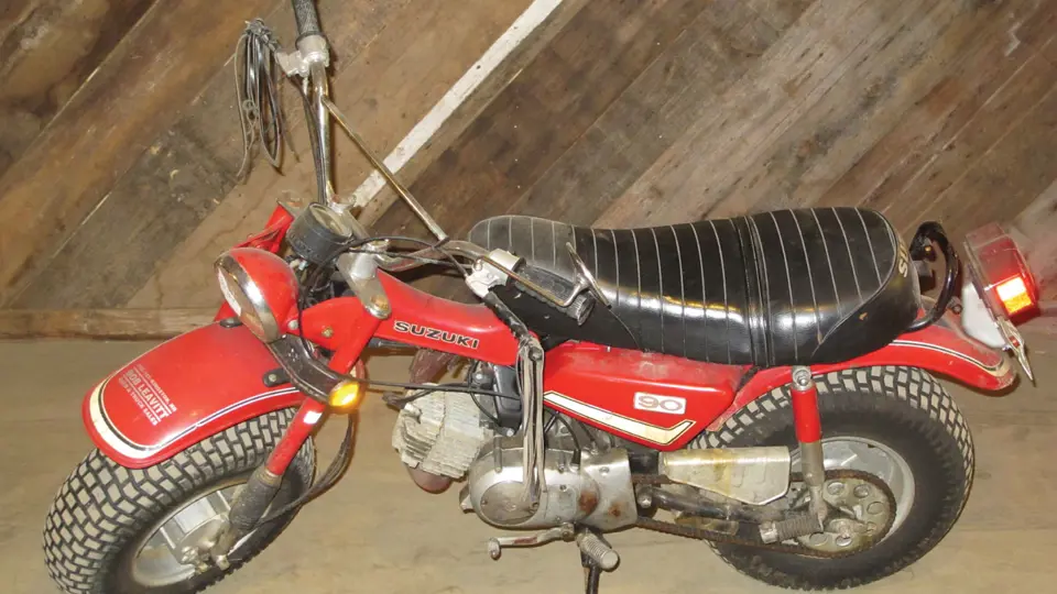 This bike, from the 1970s, is stated to be a “fat tire, two-wheel ATV” of 90-cc. It is said to have run well at the undisclosed time that it was put into storage.