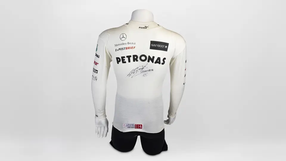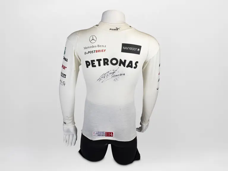 Signed 'Monaco 27.05.2012'. Schumacher qualified in pole position, but retired on the 63rd lap due to fuel pressure problems.