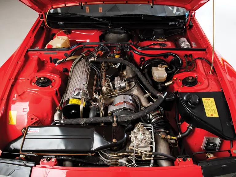 The 924 Carrera GTS is easily recognized by its flush, plastic-covered rectangular headlamps and additional venting in the nose. The rear body panel bore a very subtle molded plastic GTS badge. The GTS produced a healthy 245 bhp at 6,250 rpm with 1.0 Bar of boost on a compression ratio of 8.0:1. A skilled driver rowing through the Getrag G31/03 five-speed could reach 60 mph in just 6.5 seconds.